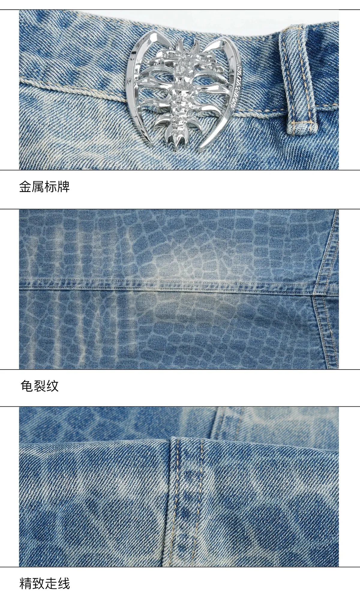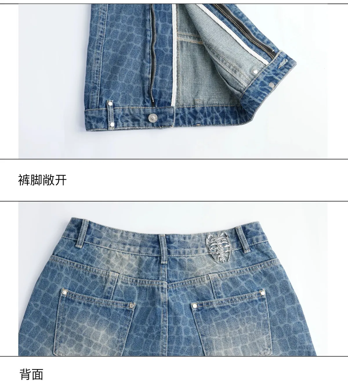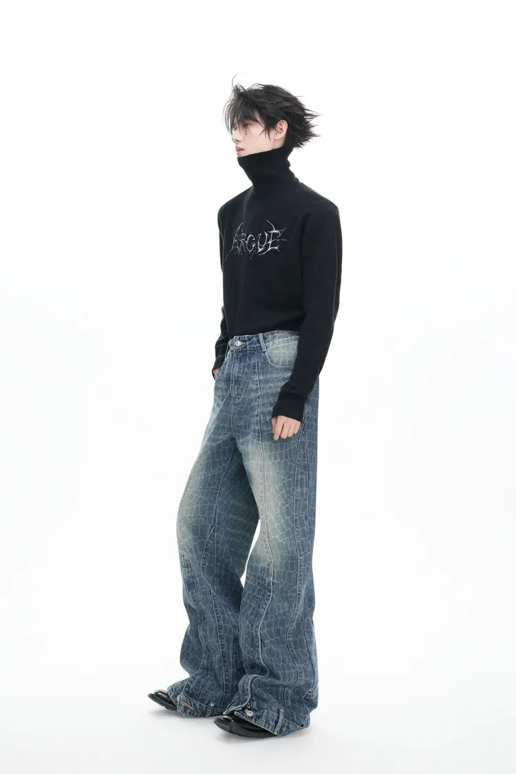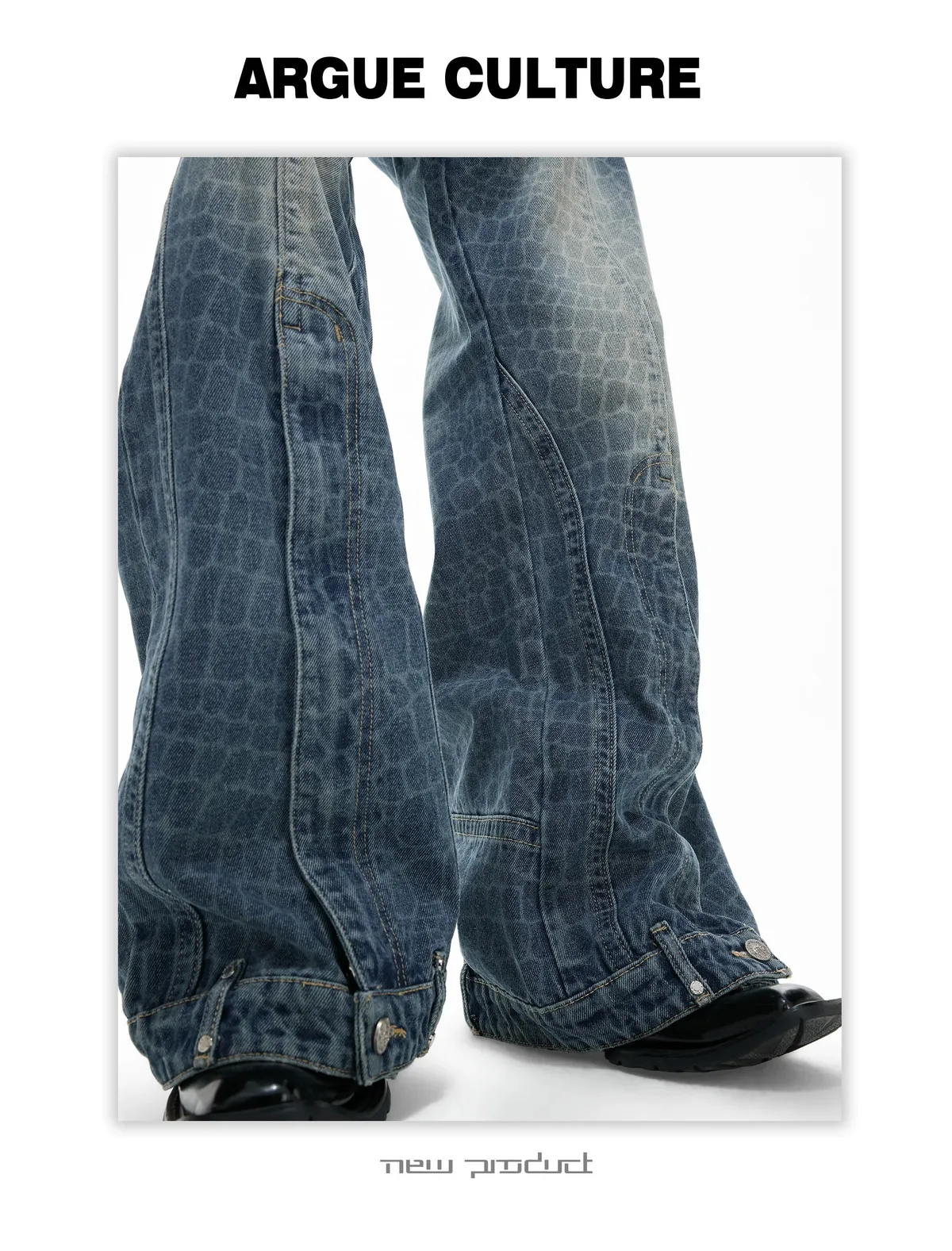 ARGUE 爆裂紋 前開衩 可調拉鏈 牛仔褲(藍色)