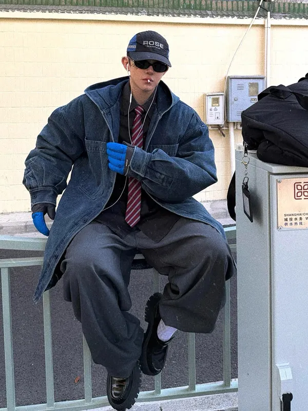 AUROCEAN 簡約復古 重磅廓形 牛仔大衣(牛仔)