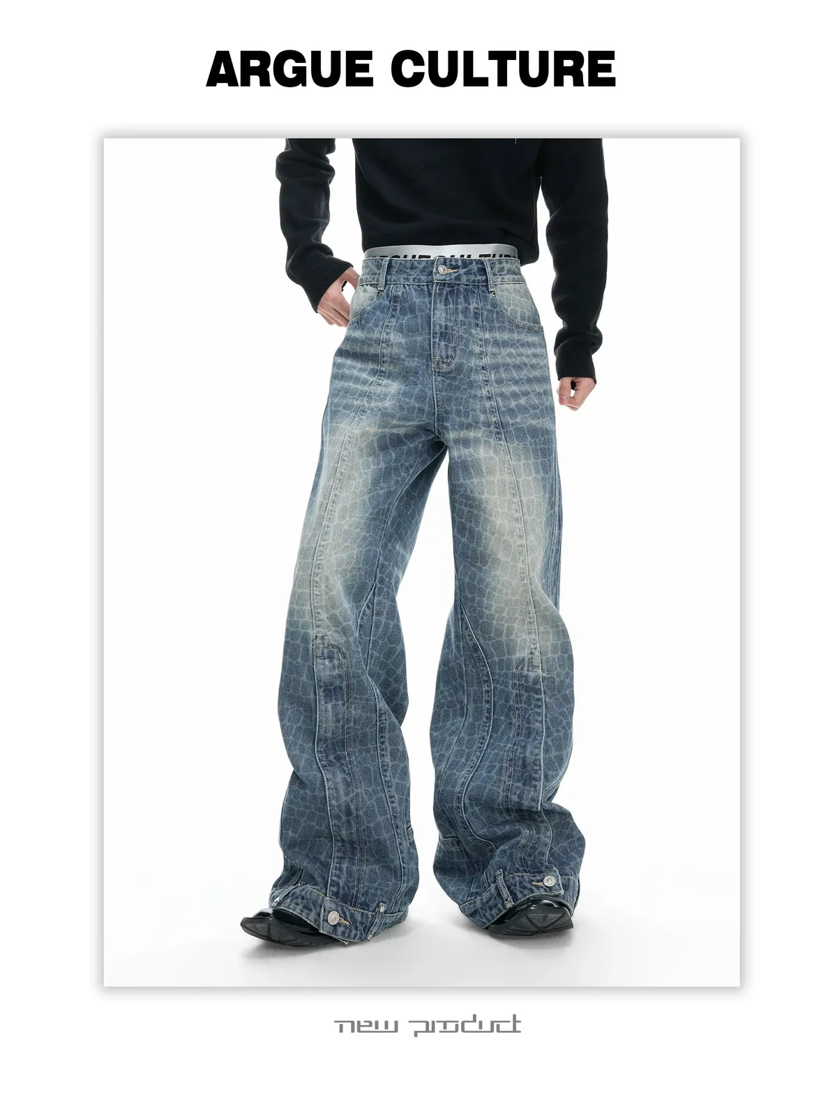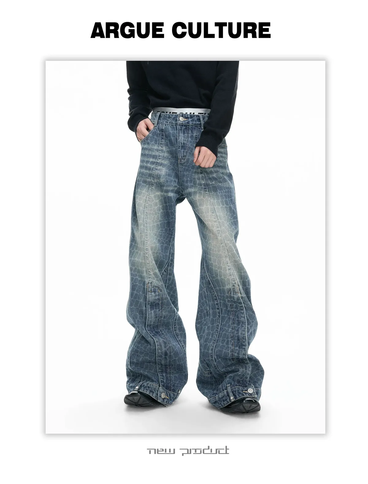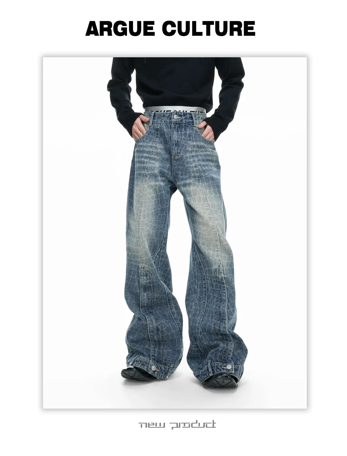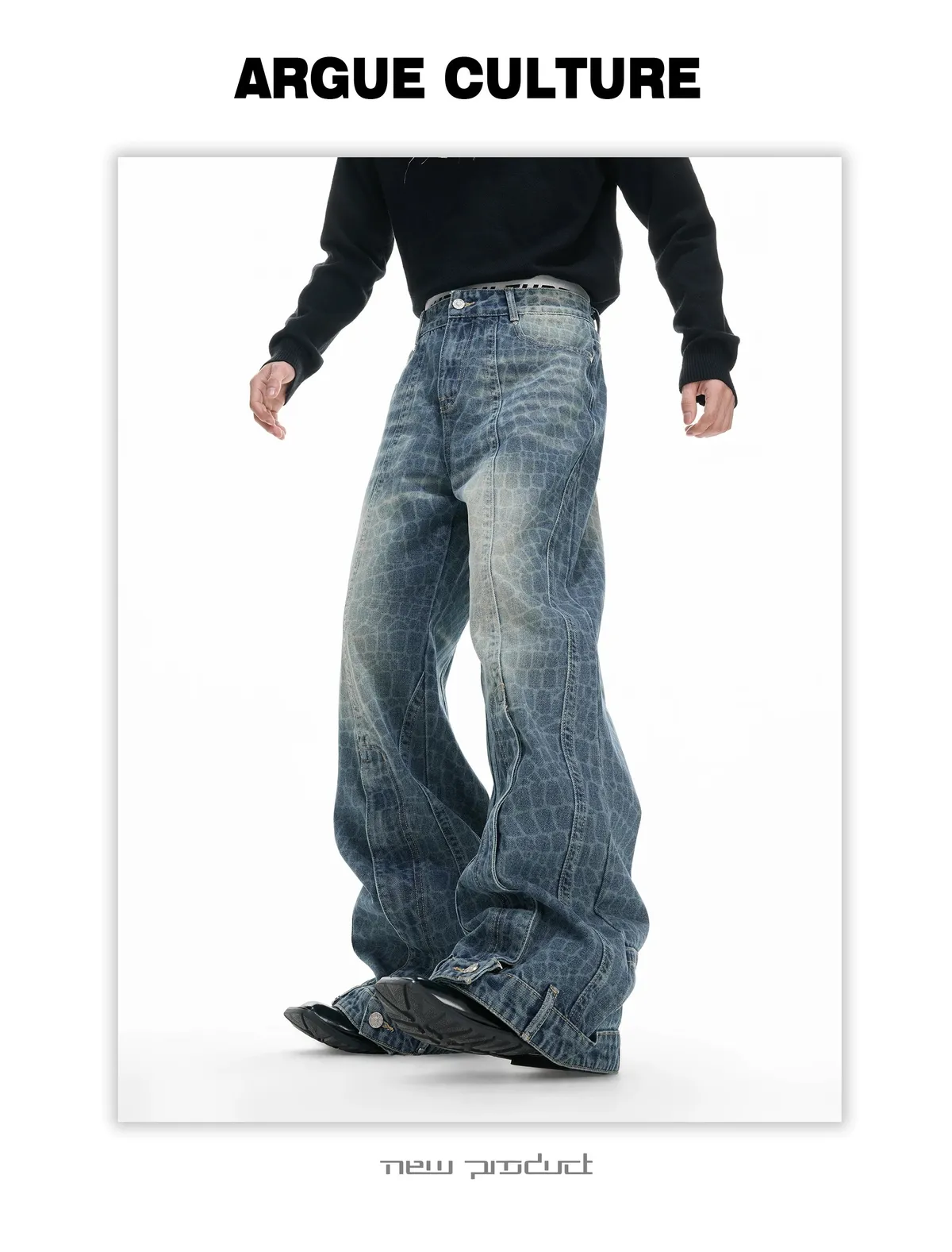 ARGUE 解構水洗 堆積感 牛仔褲(黑色)
