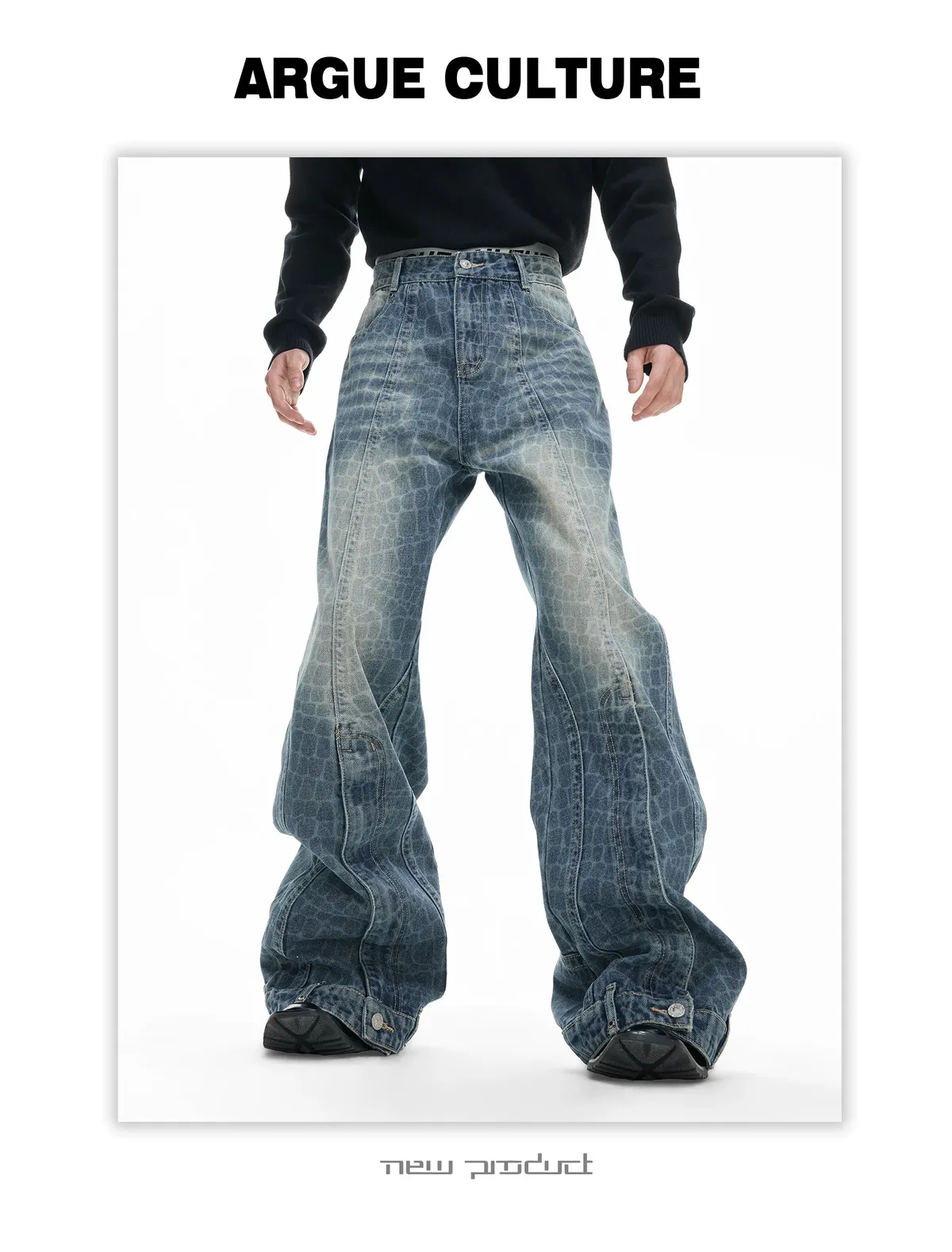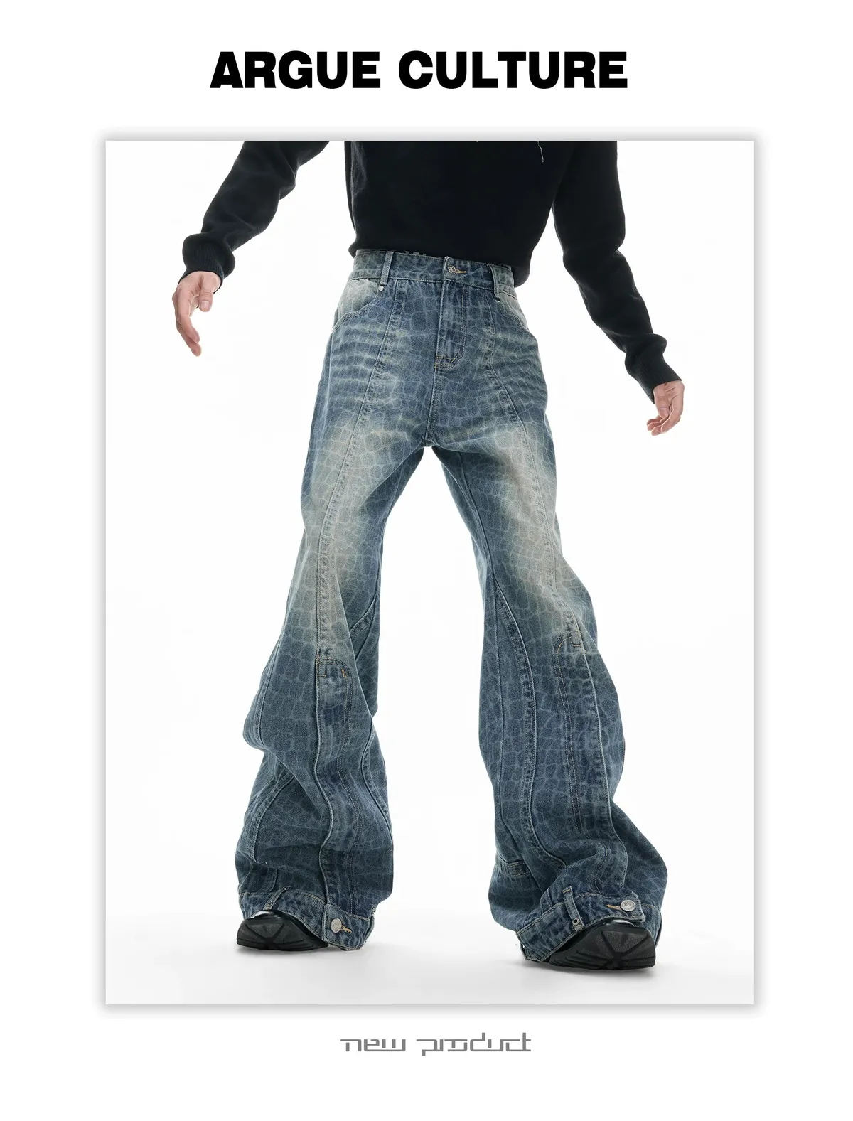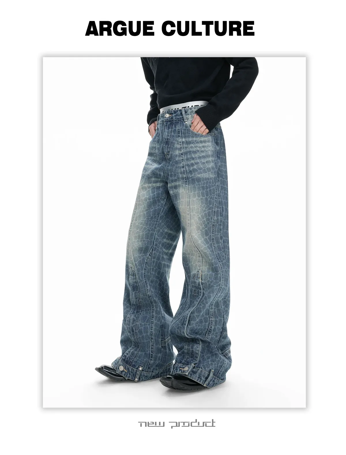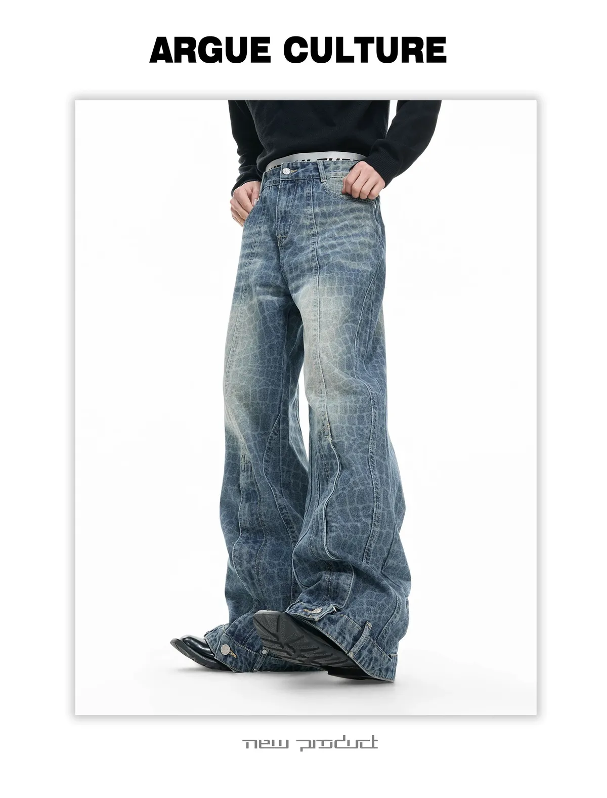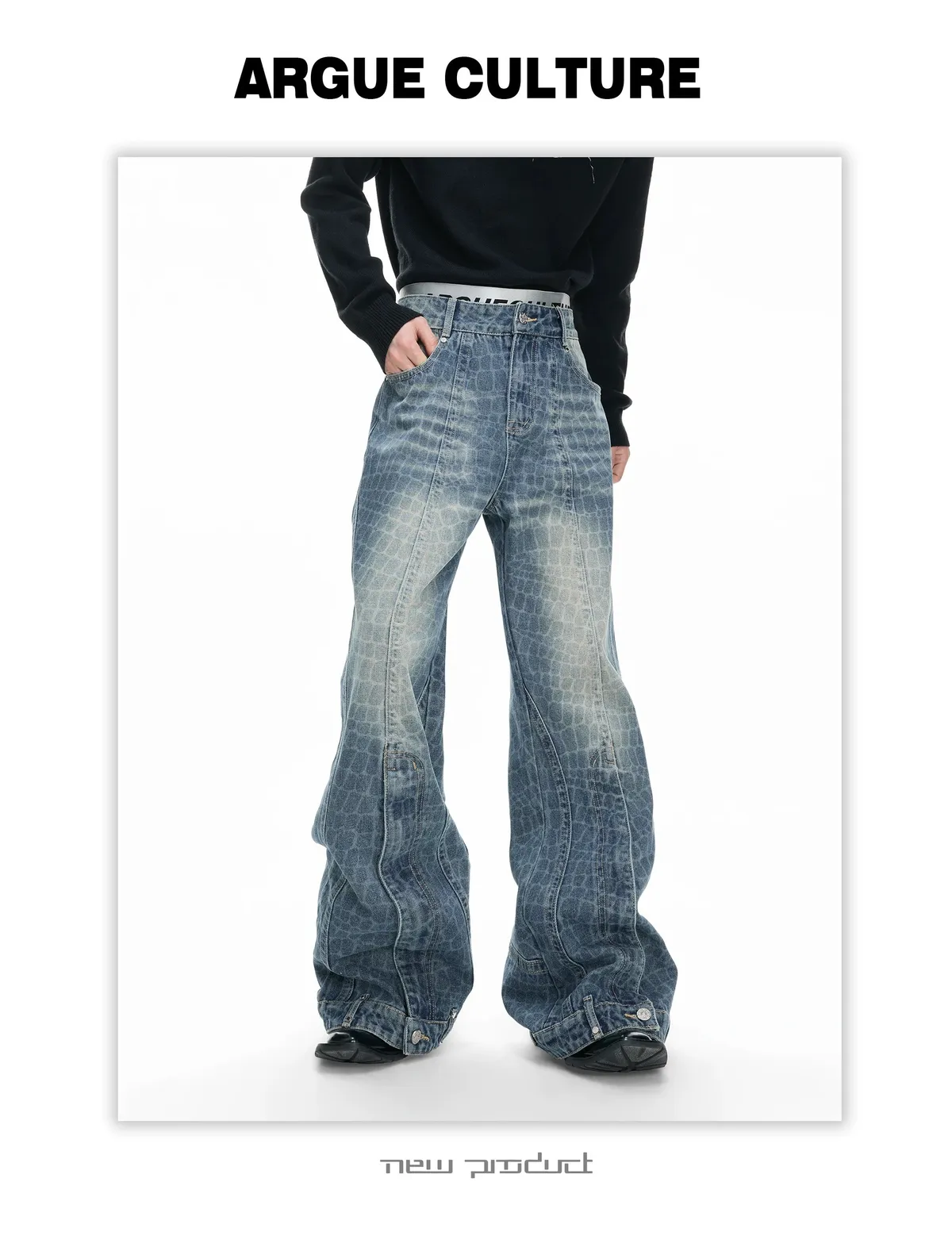 ARGUE 解構水洗 堆積感 牛仔褲(黑色)