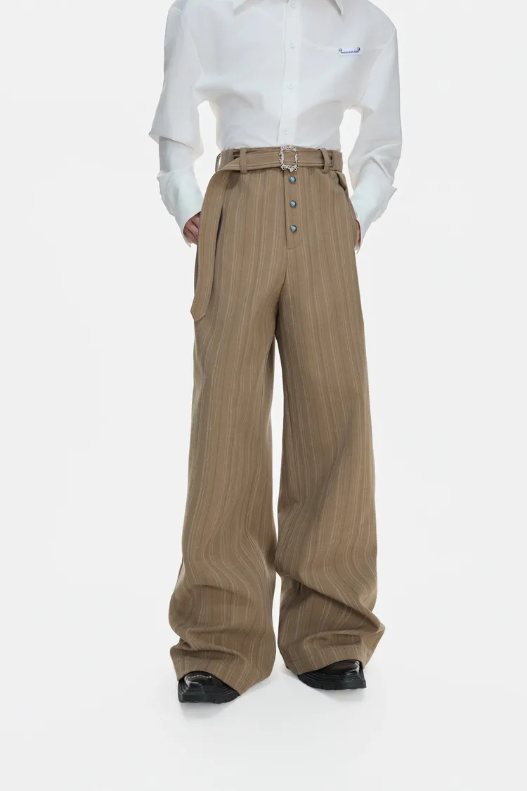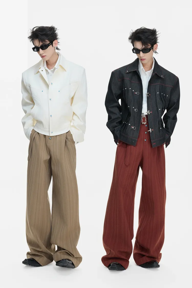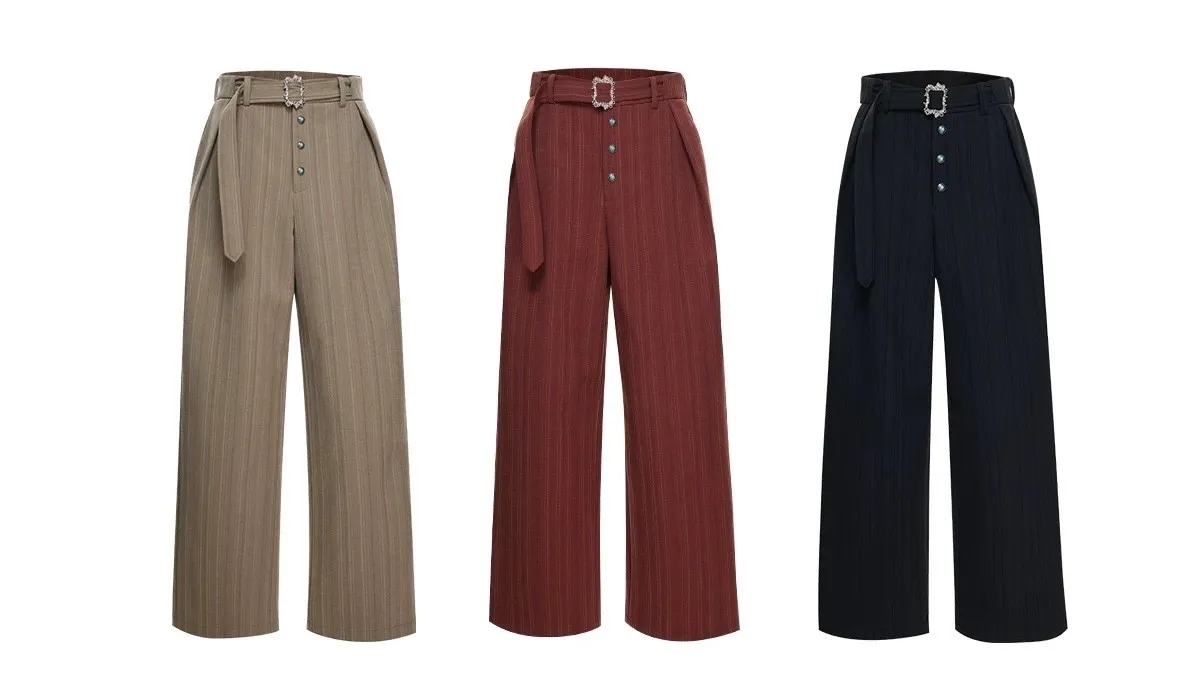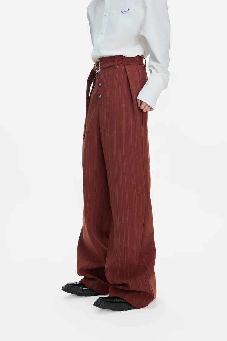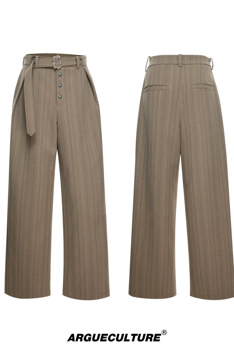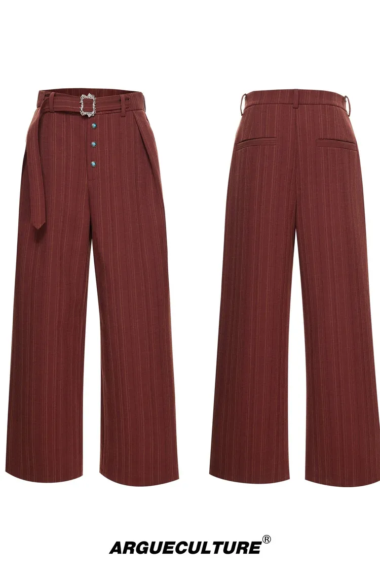 ARGUE 宮廷條紋 綠松石 打褶 西裝褲(黑/卡其/紅)