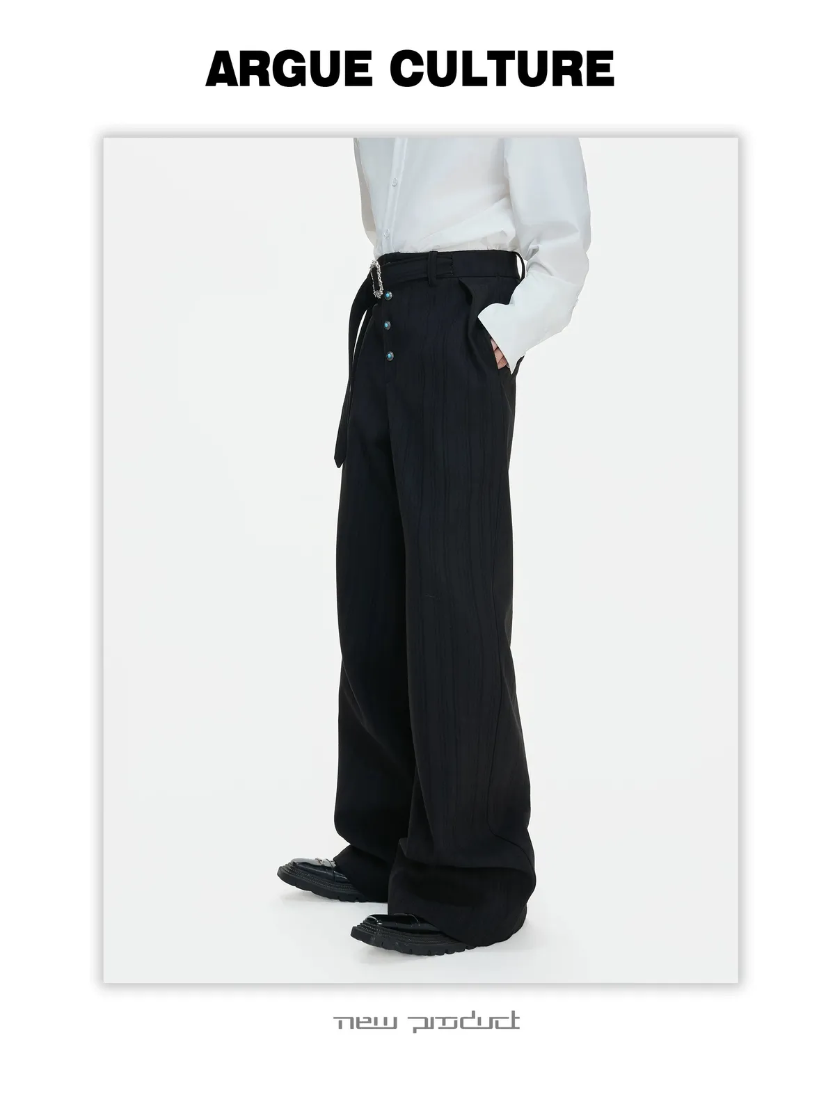 ARGUE 上蠟 消防釦 分割垂墜 皮褲(黑色)
