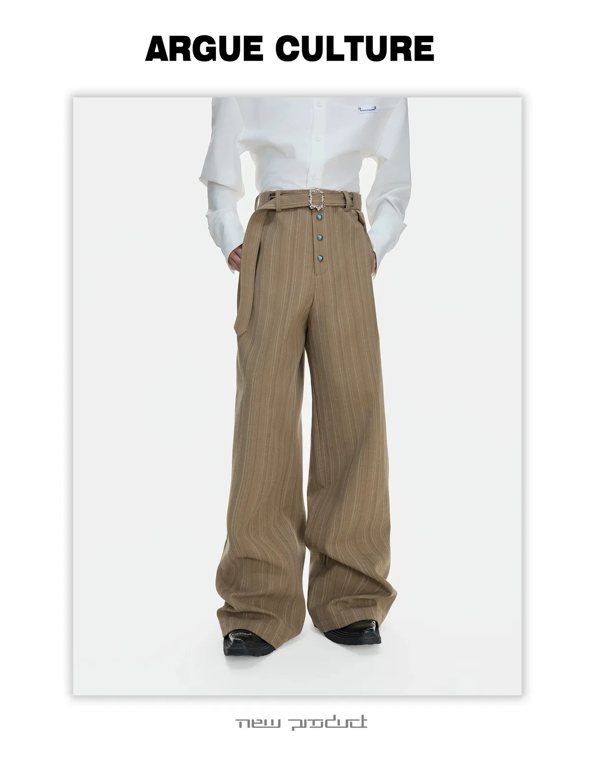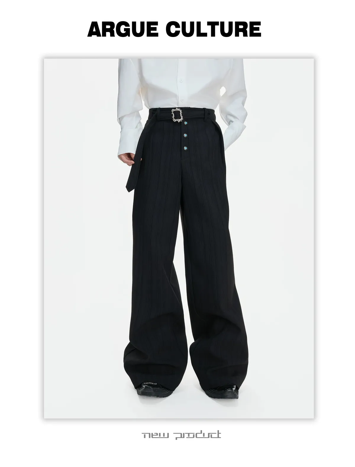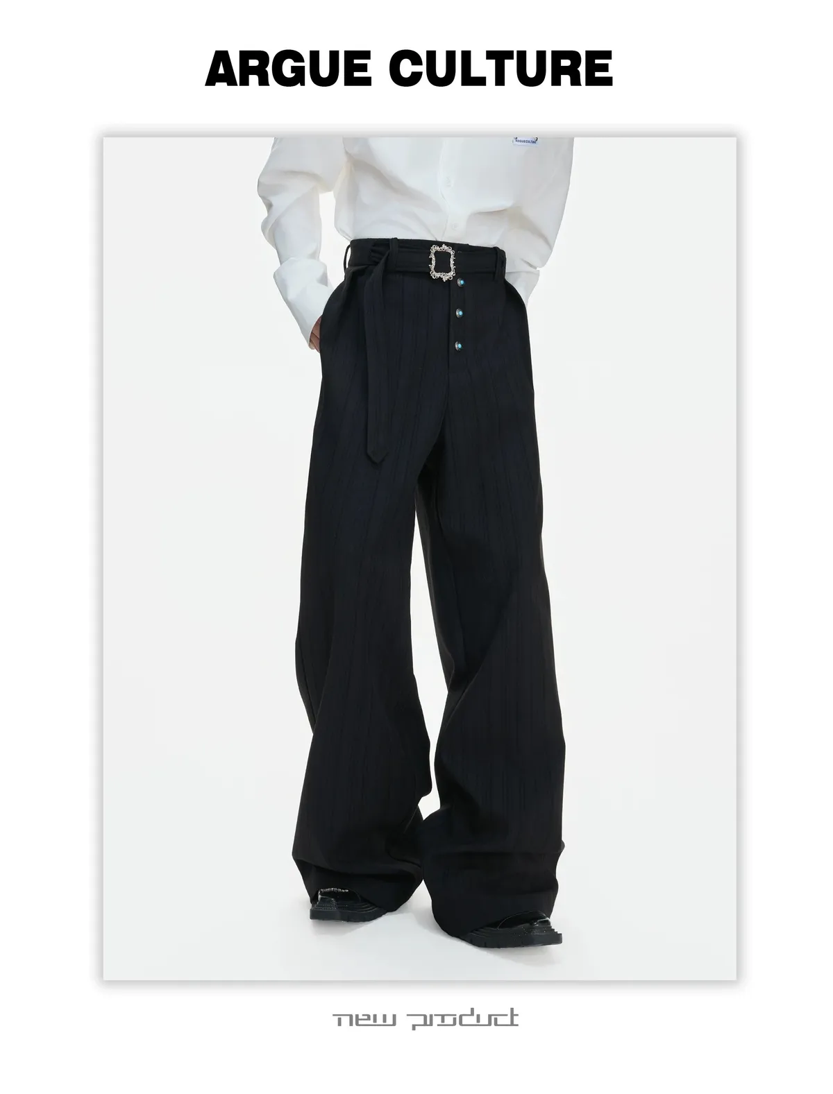 ARGUE 微喇叭 金屬釦 立體裁片 西裝褲(黑/白)