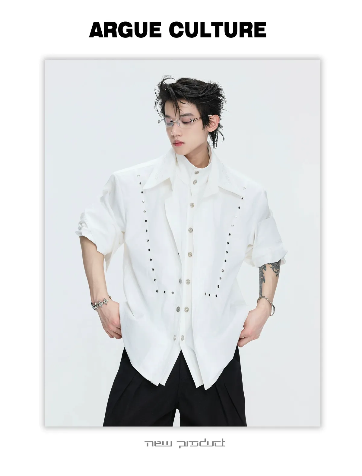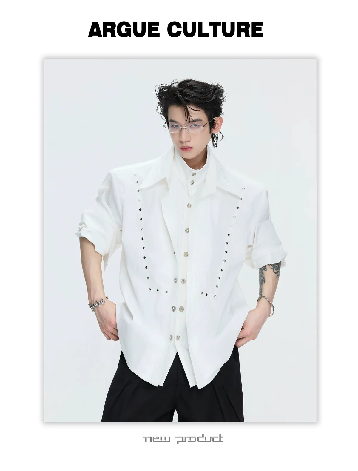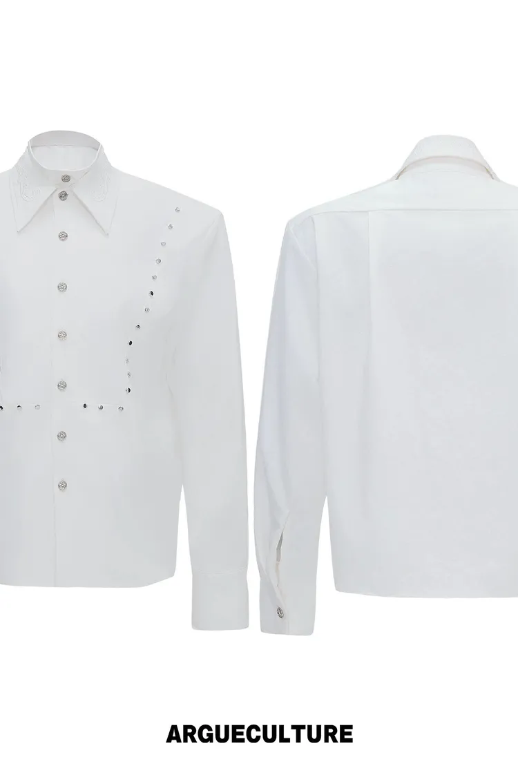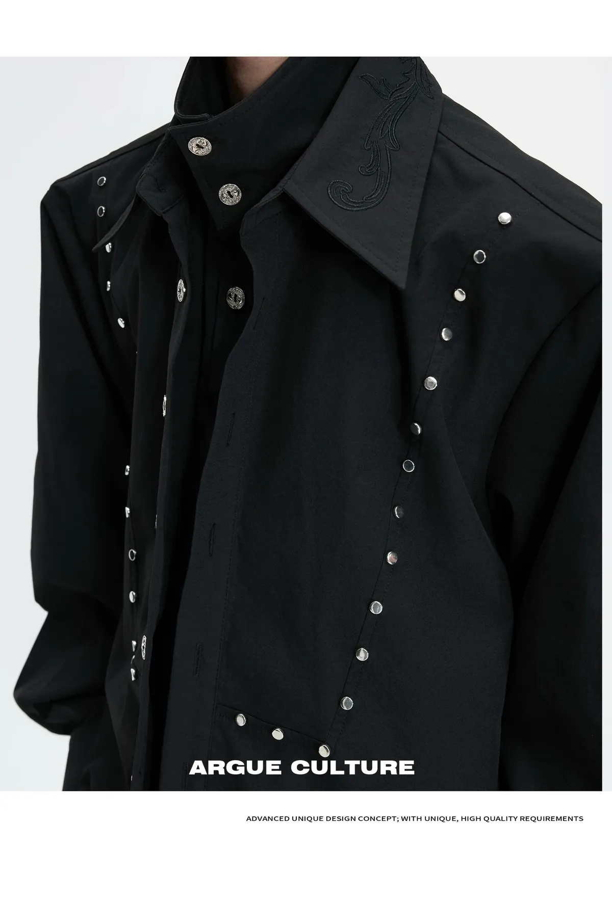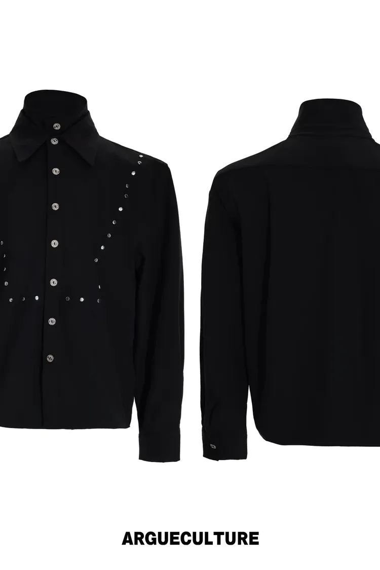 ARGUE 多穿法假兩件 卯釘刺繡 襯衫(黑/白)