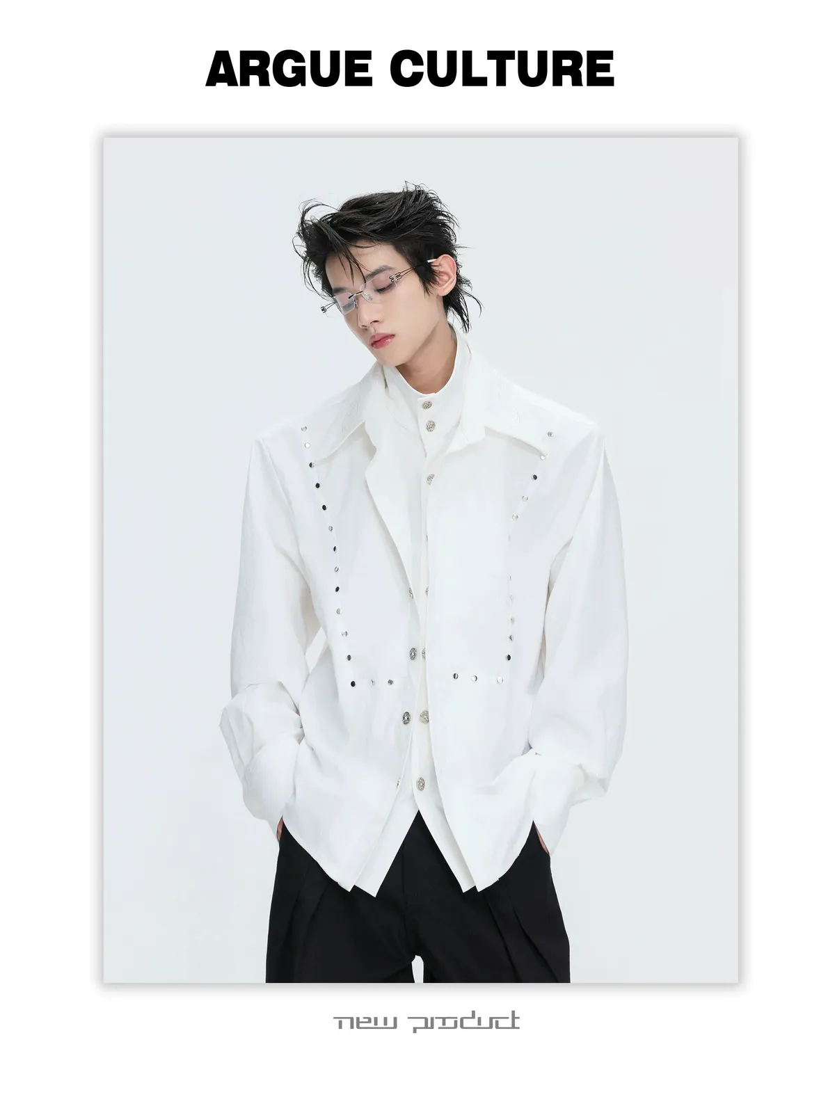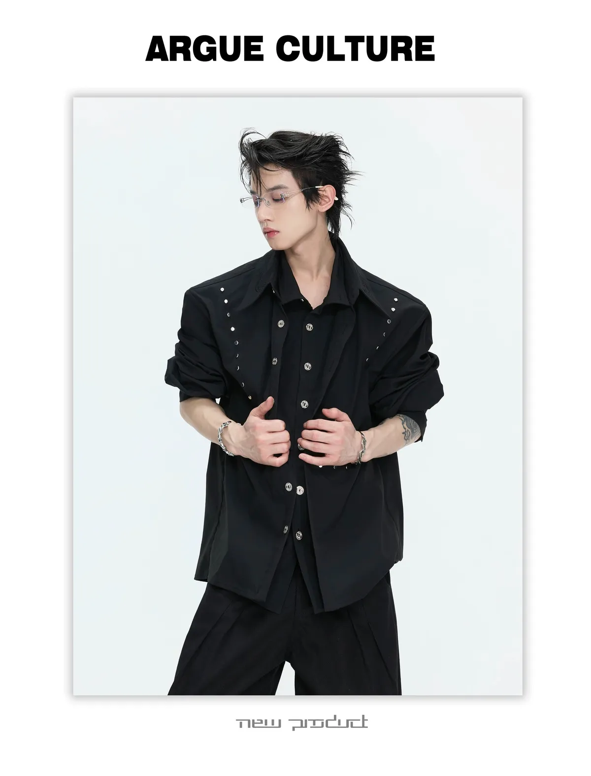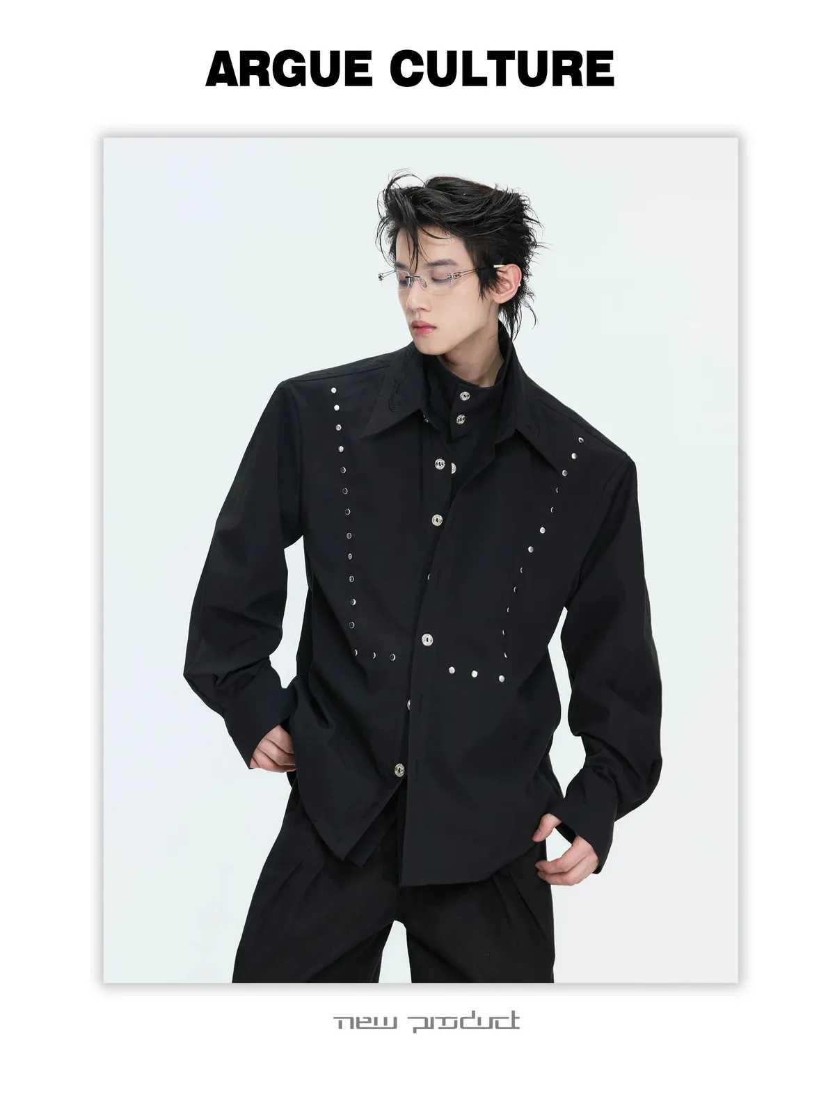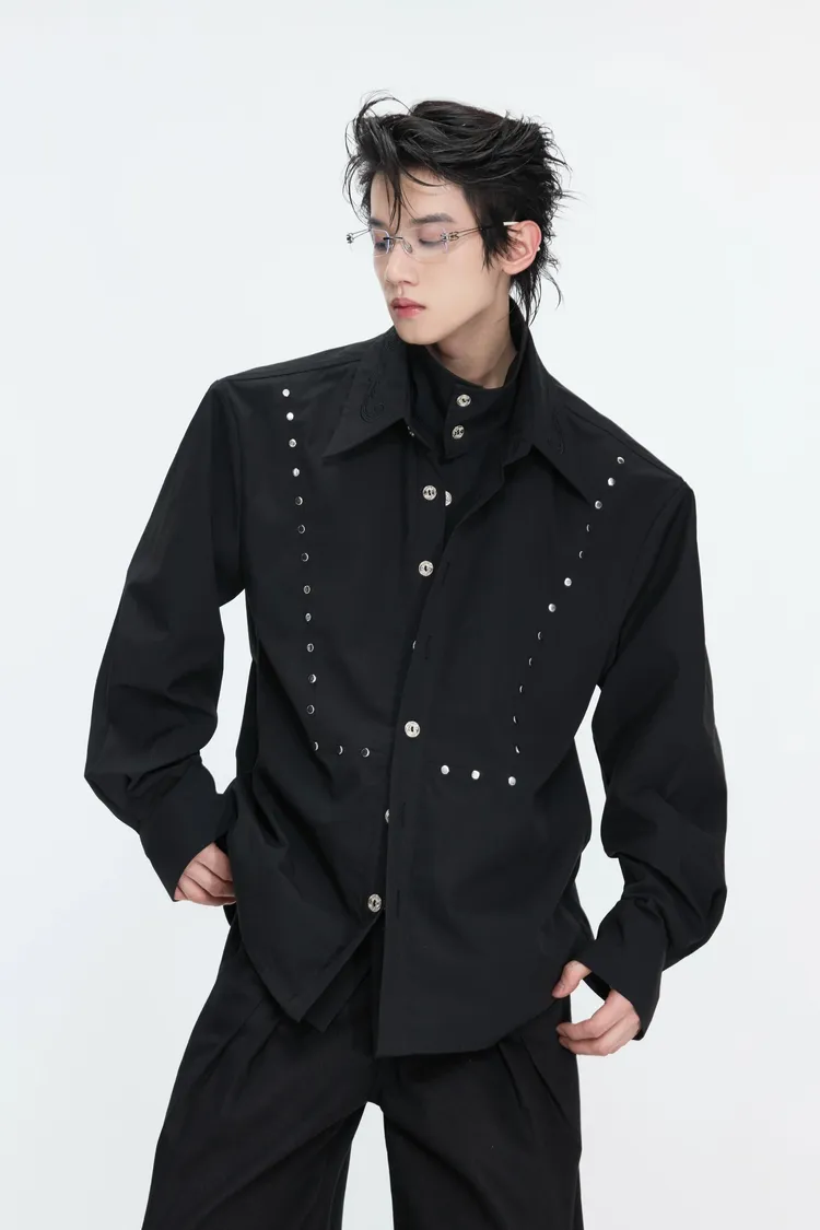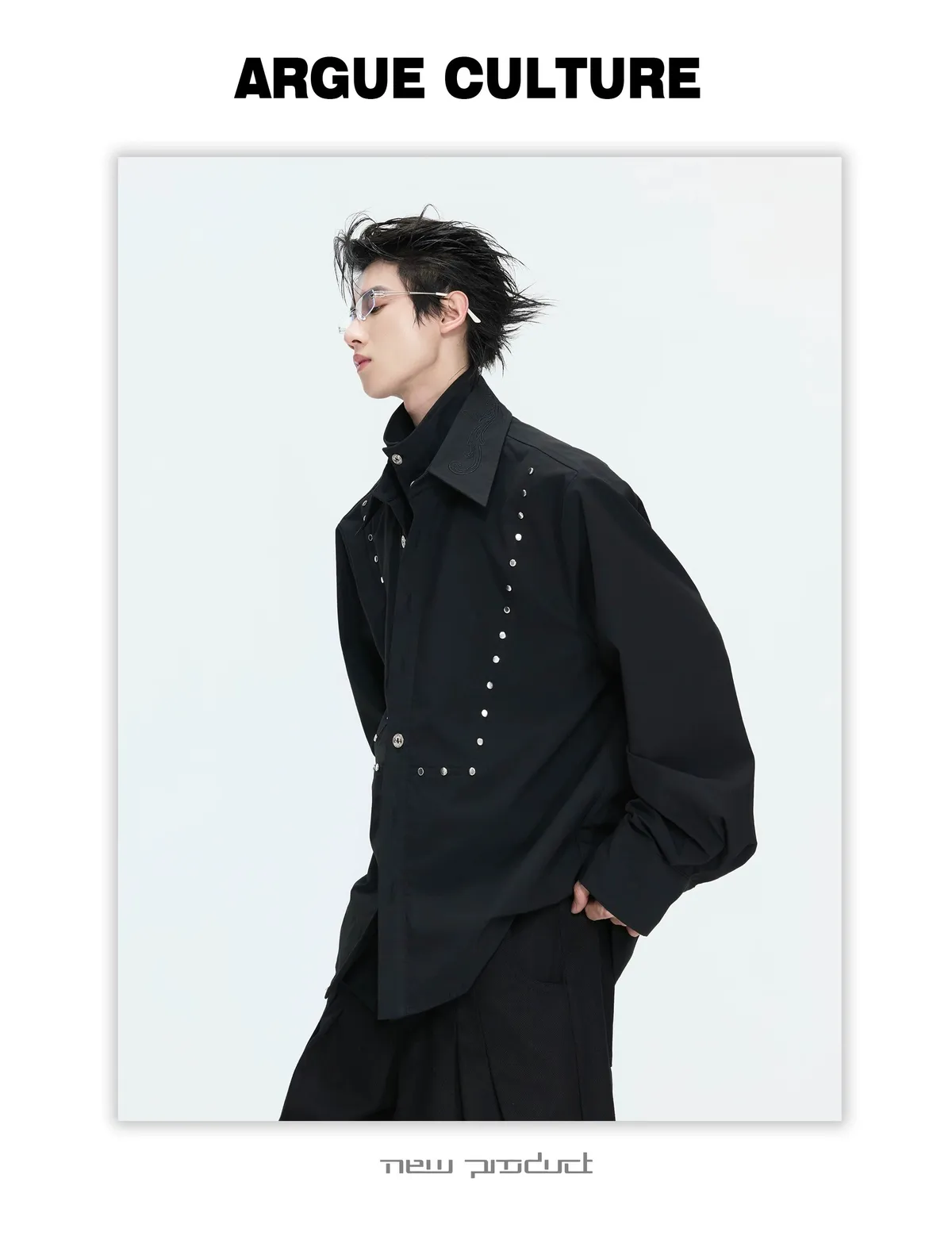 ARGUE 多穿法假兩件 卯釘刺繡 襯衫(黑/白)