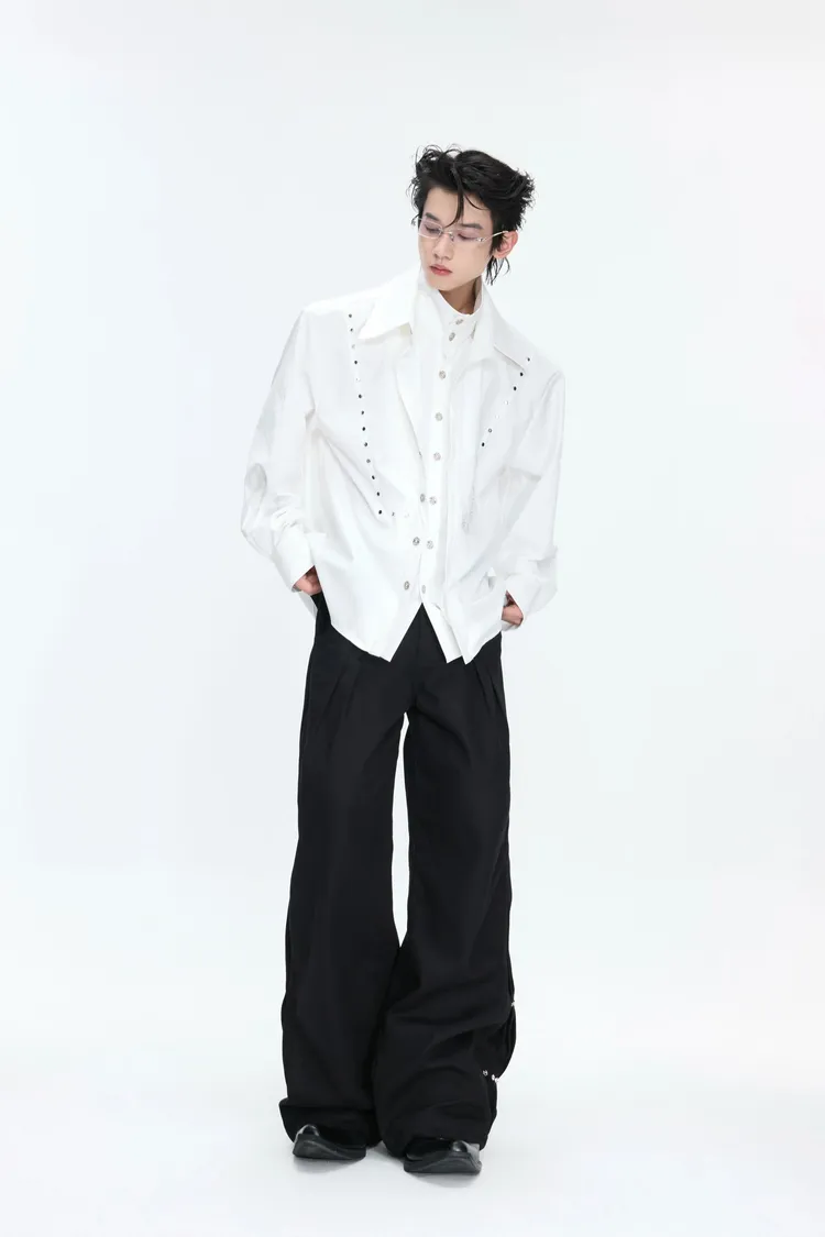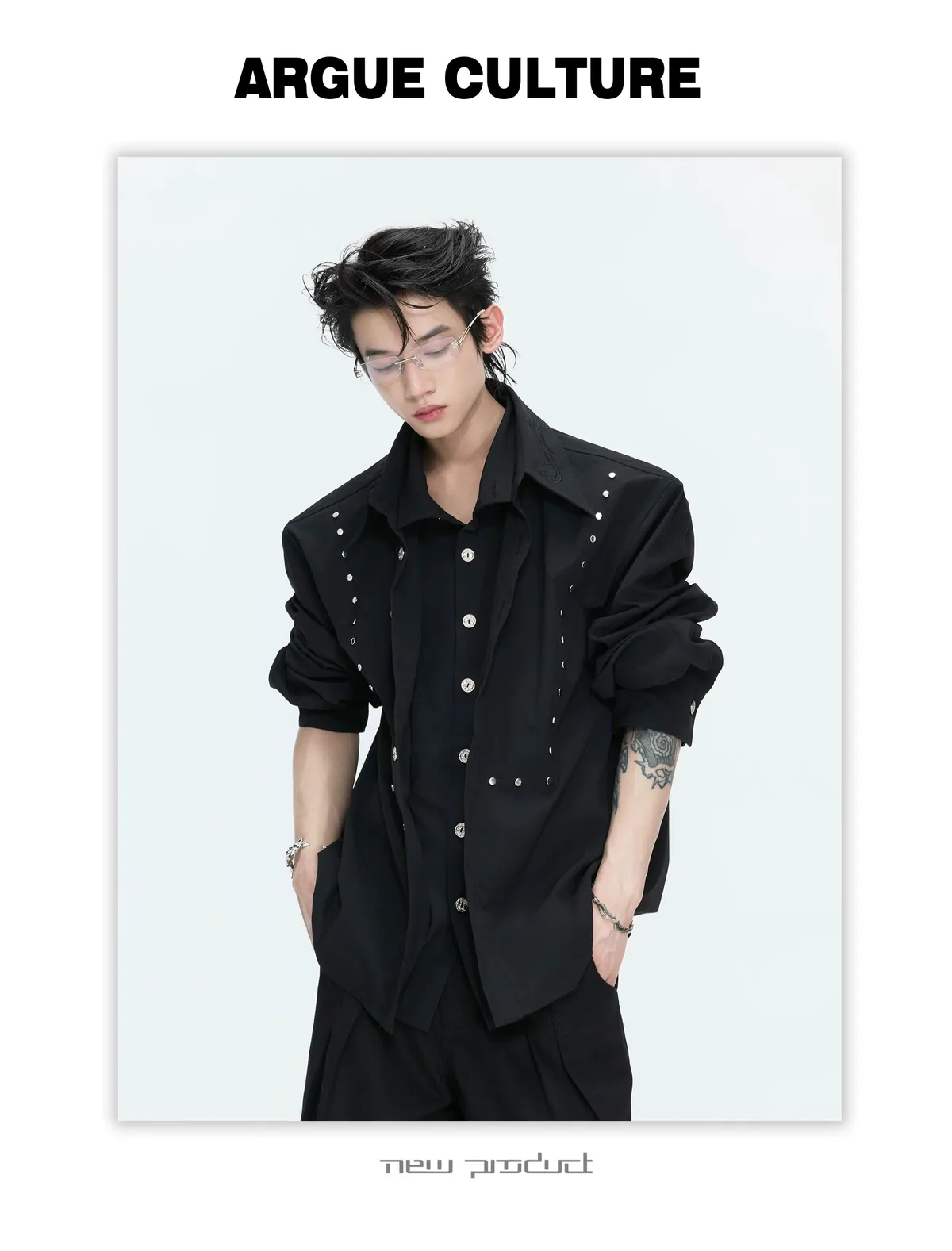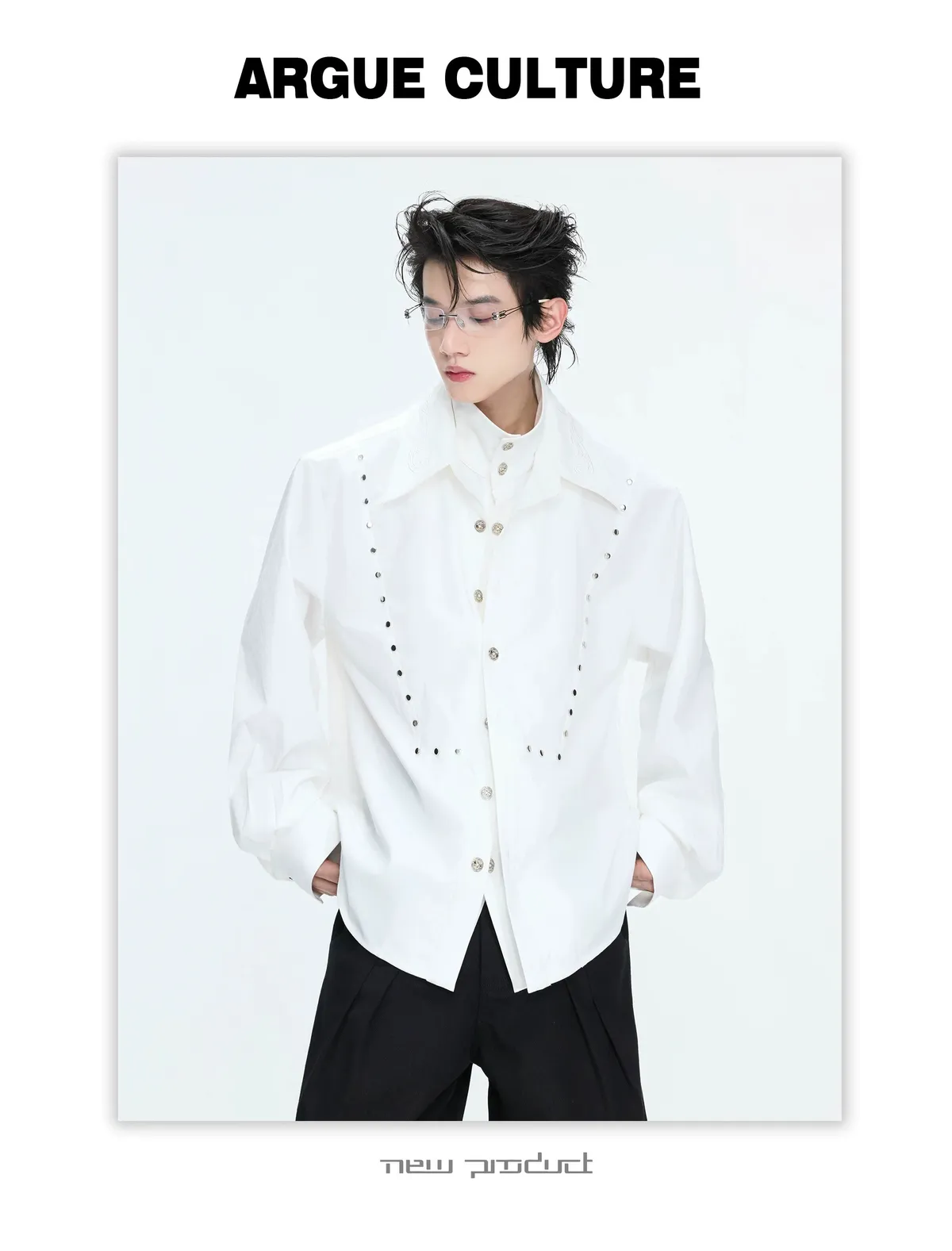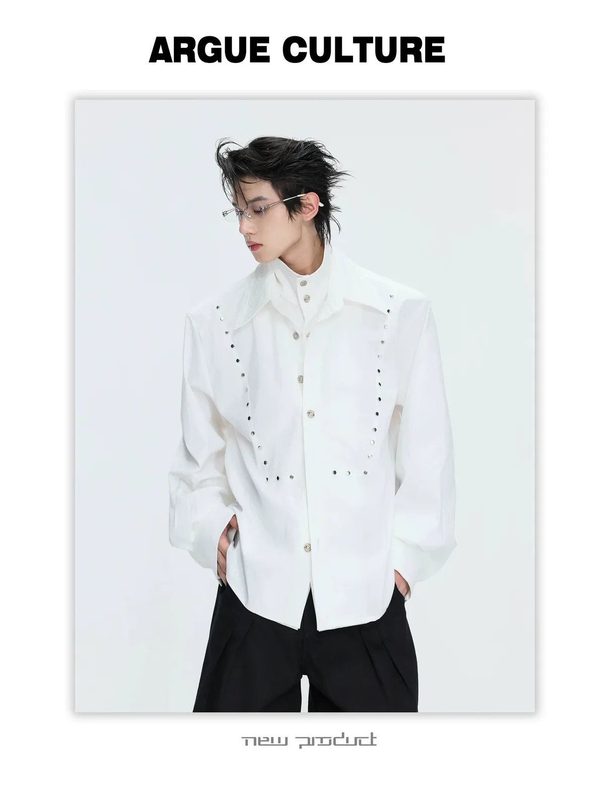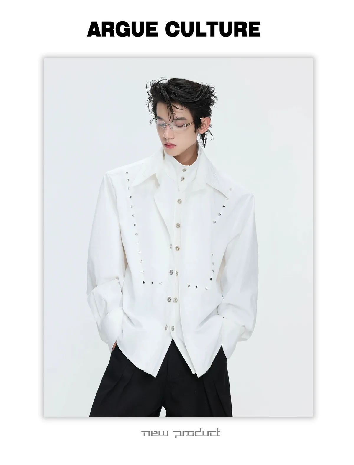ARGUE 多穿法假兩件 卯釘刺繡 襯衫(黑/白)