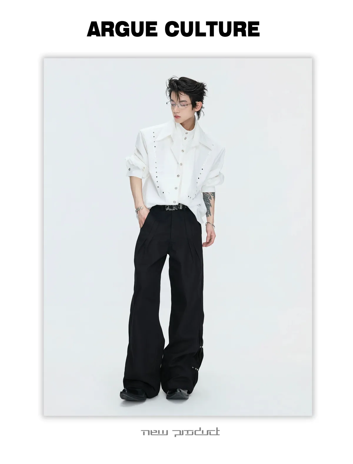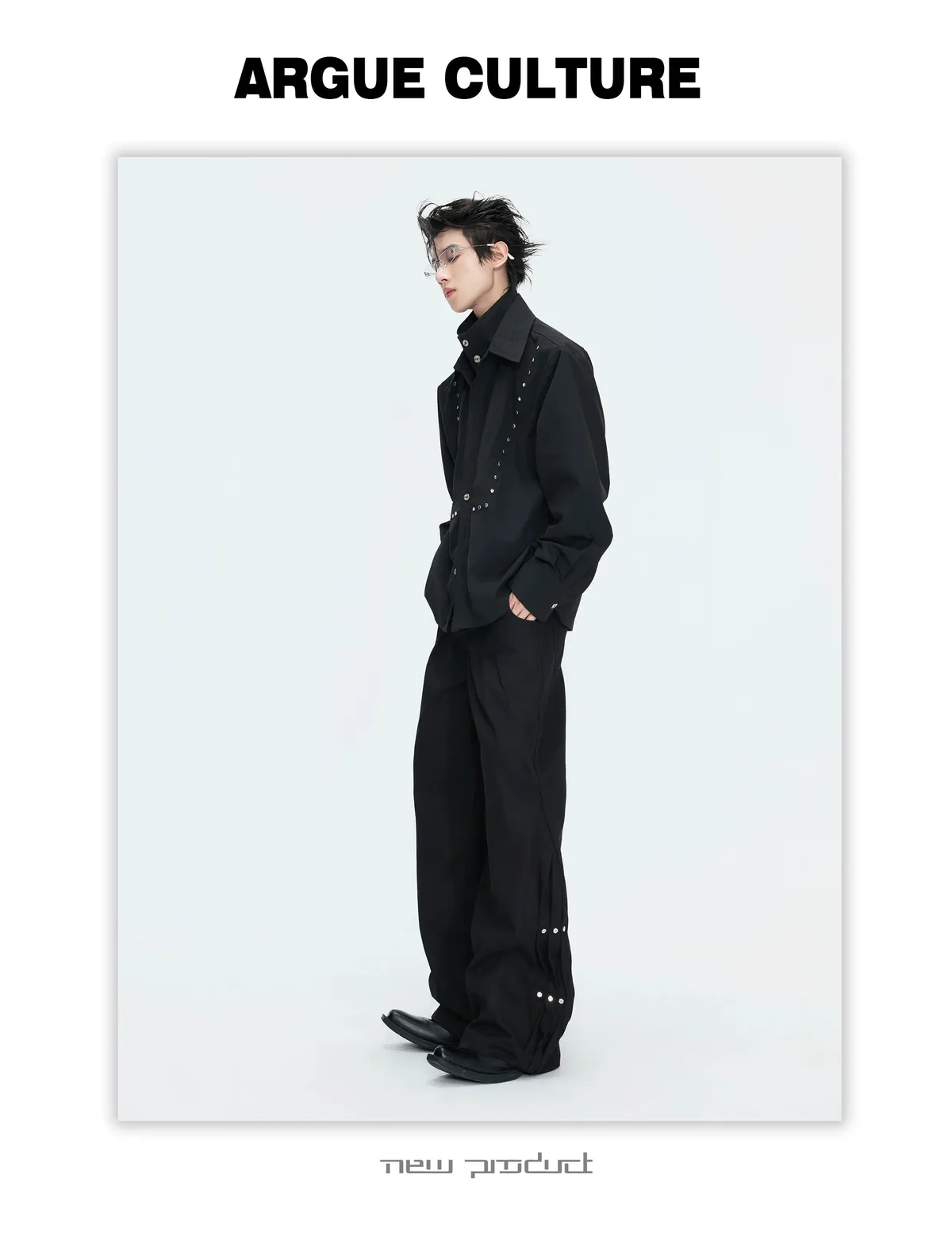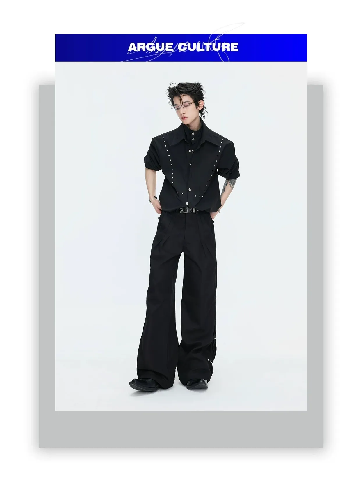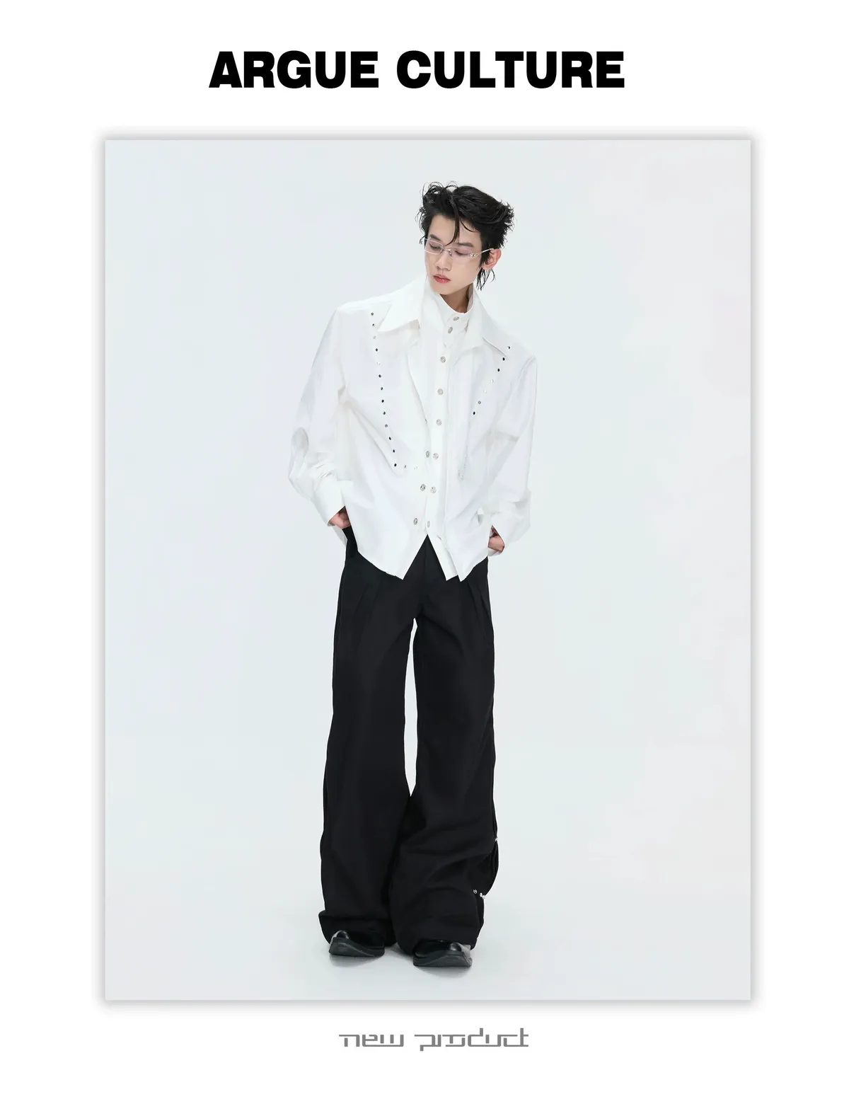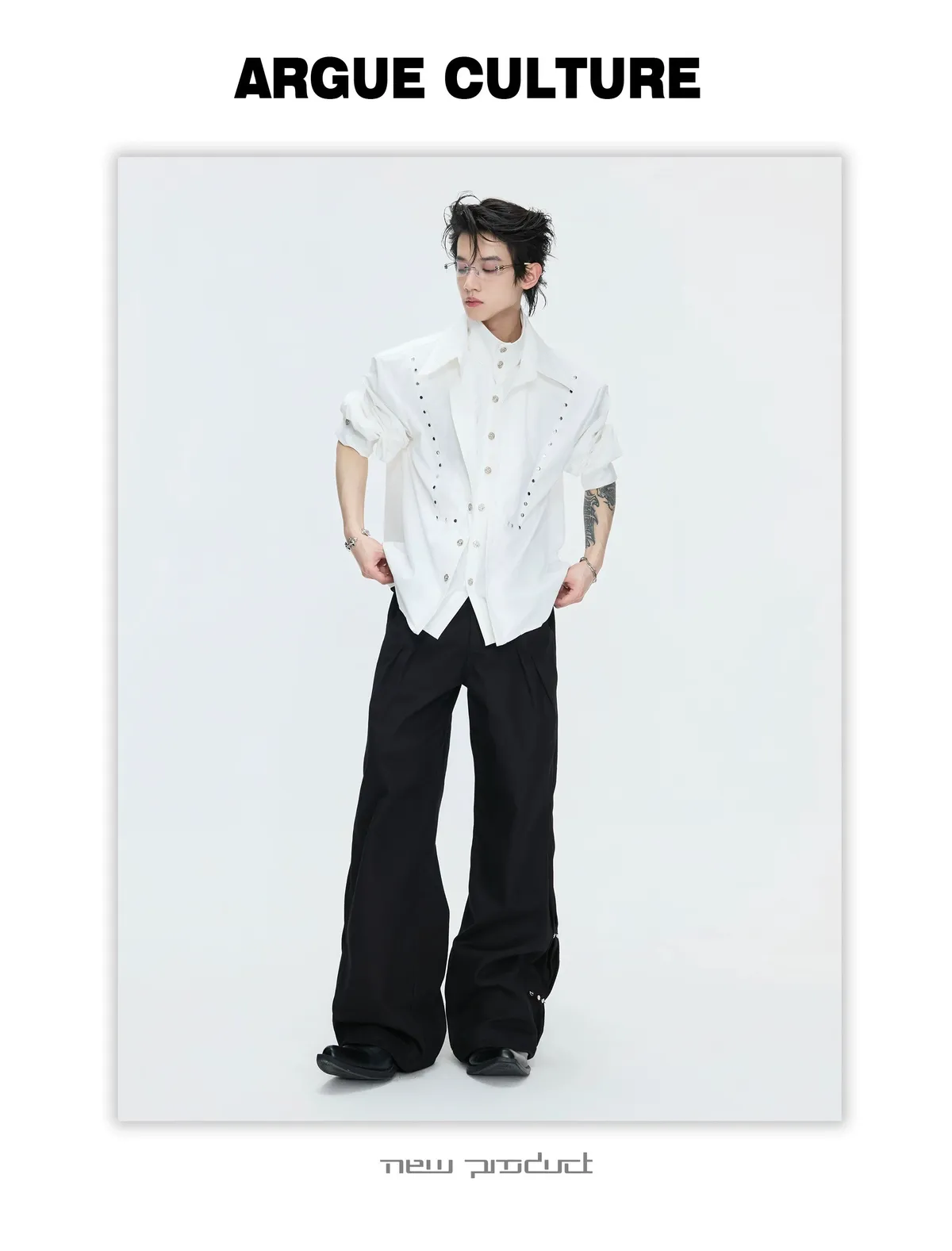 ARGUE 多穿法假兩件 卯釘刺繡 襯衫(黑/白)