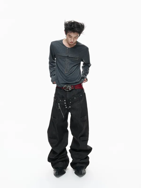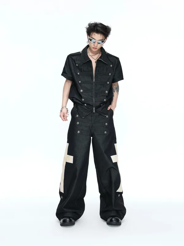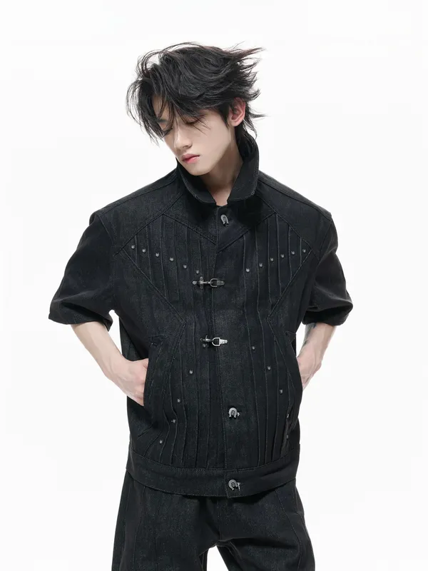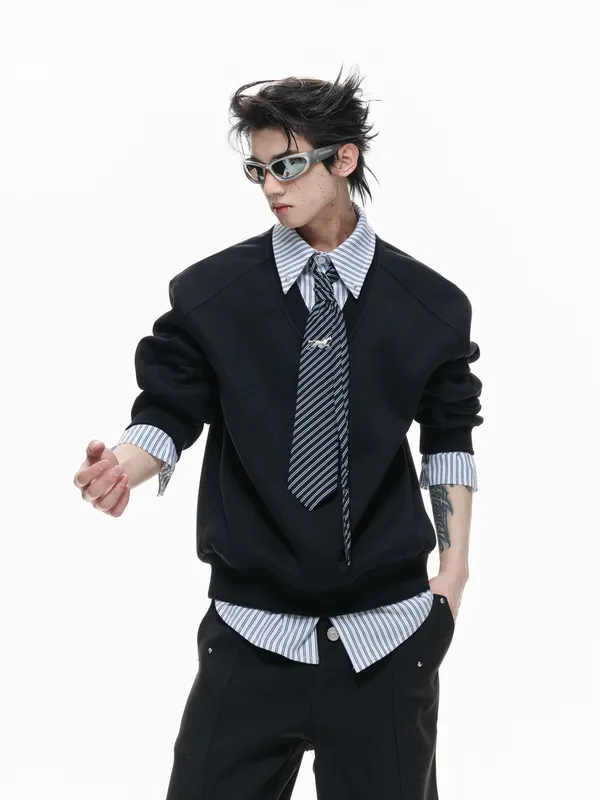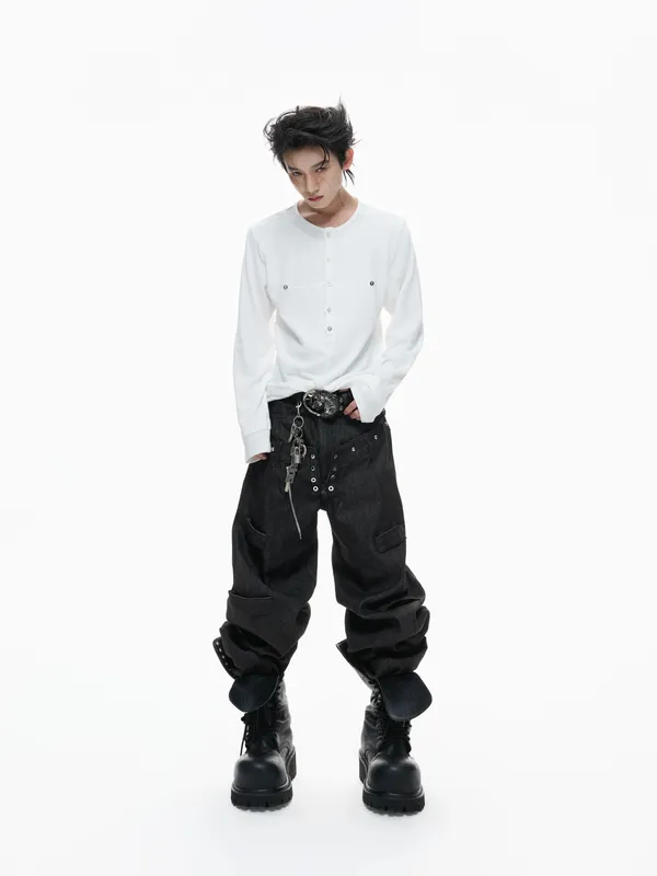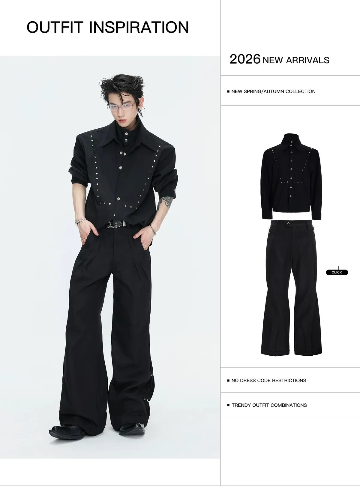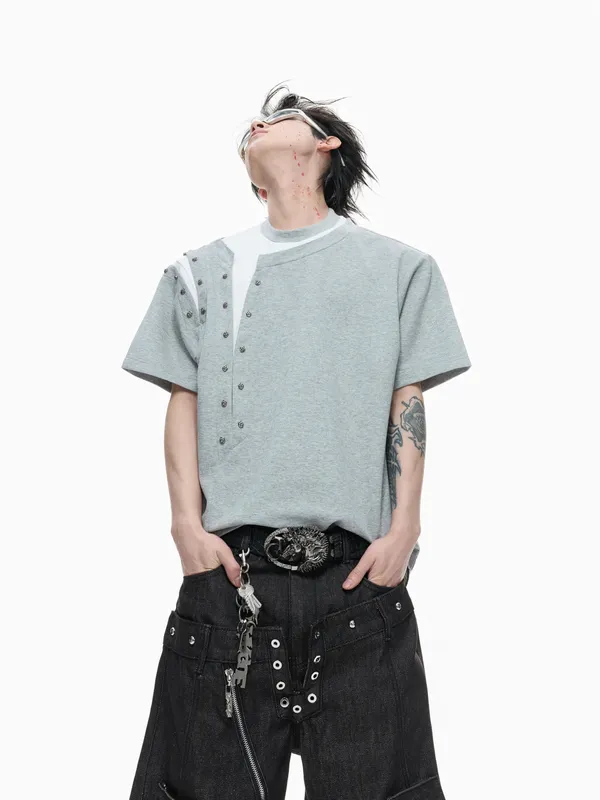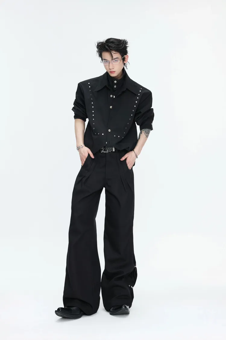 ARGUE 多穿法假兩件 卯釘刺繡 襯衫(黑/白)