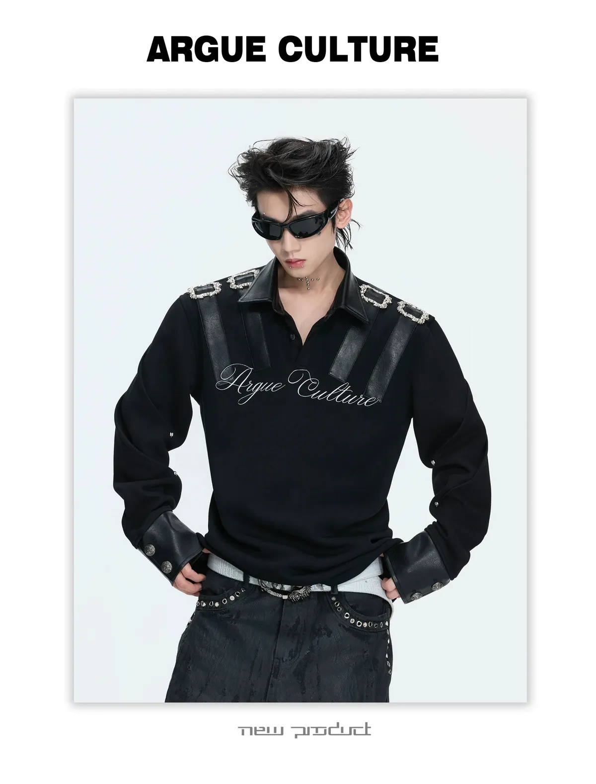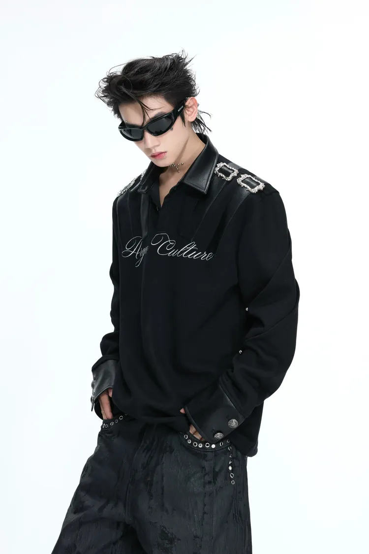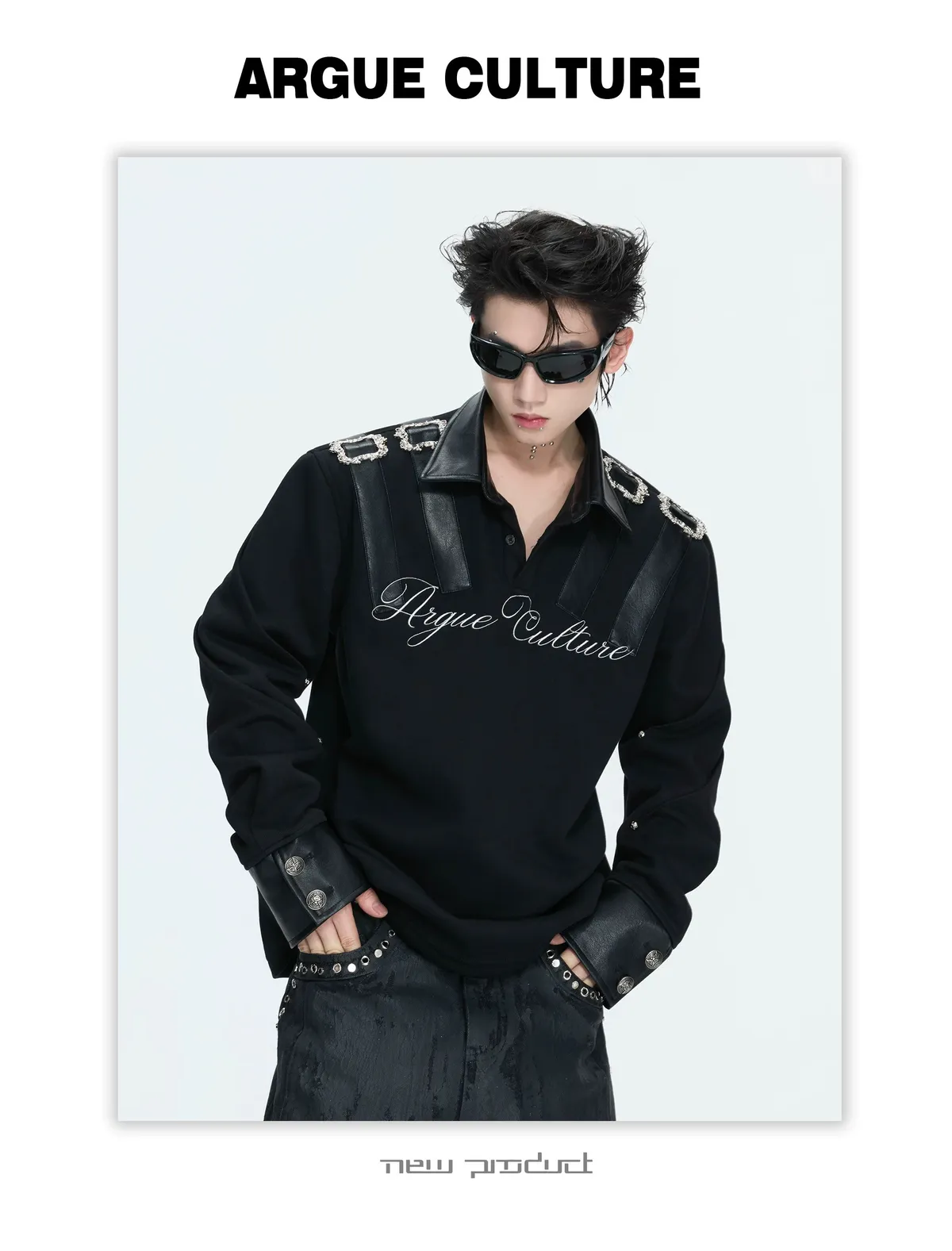 ARGUE 宮廷扣 刺繡寬短 POLO(黑色)