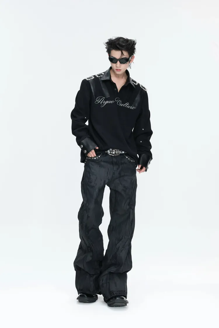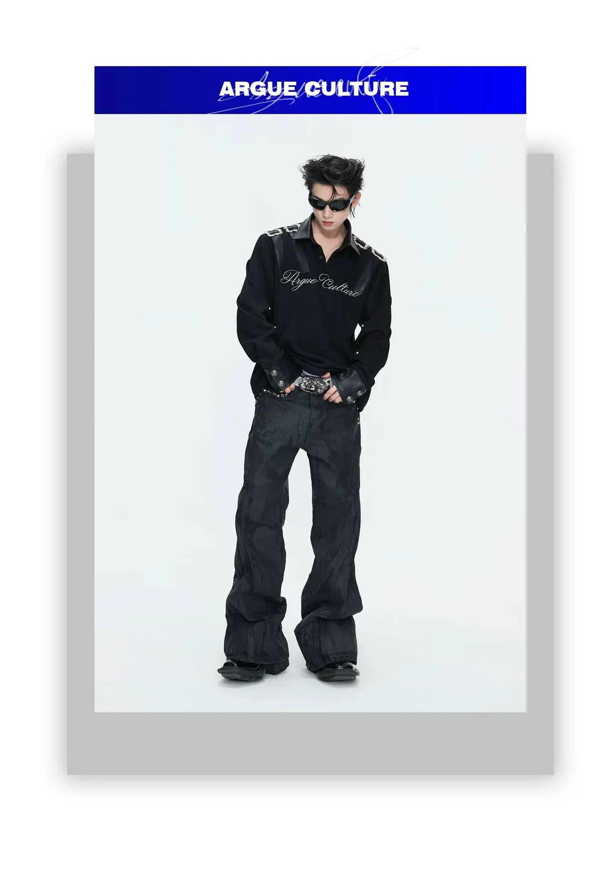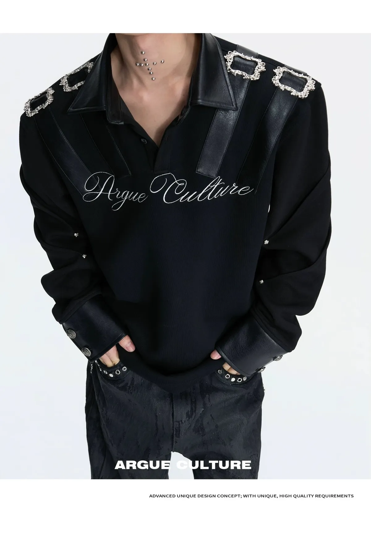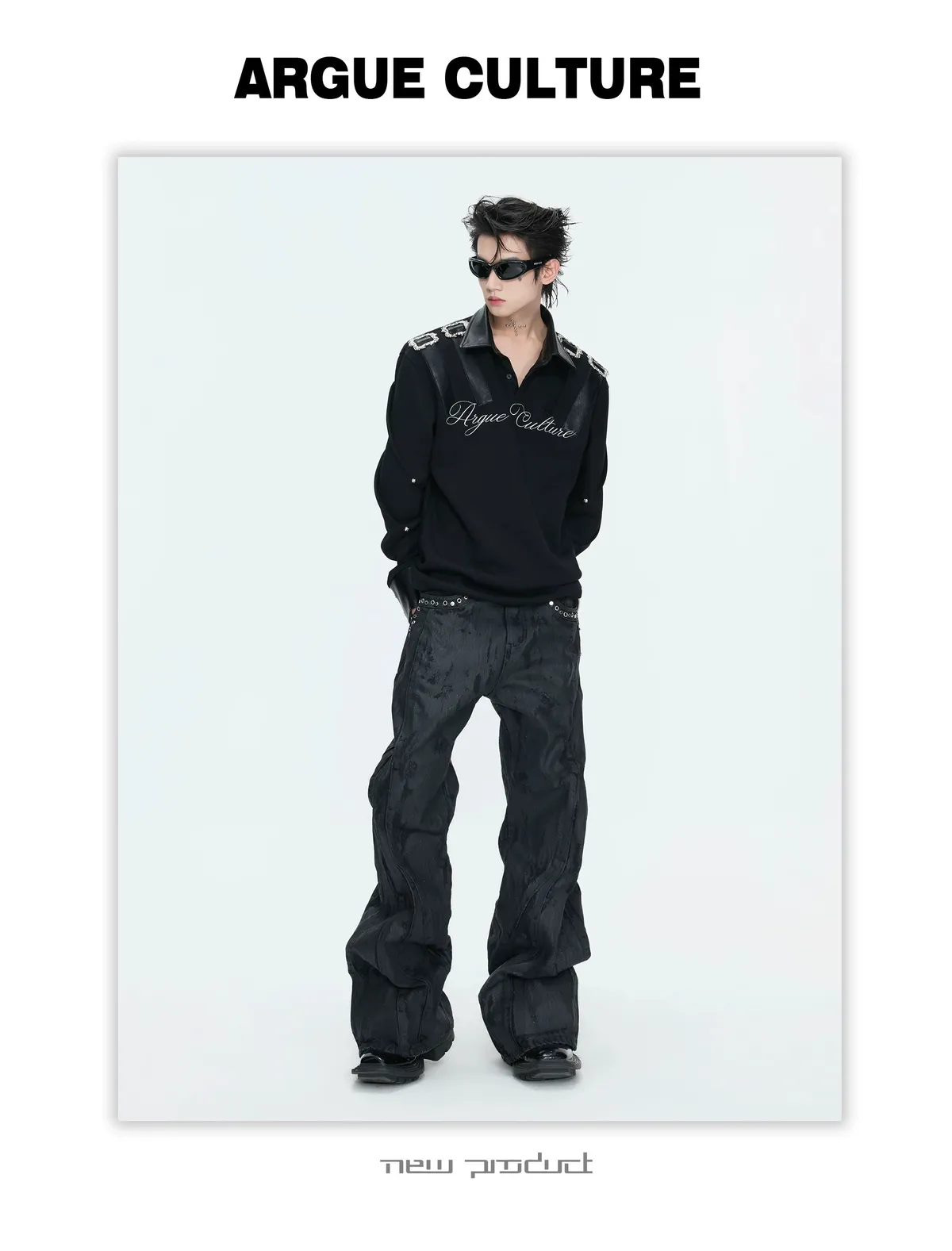ARGUE 宮廷扣 刺繡寬短 POLO(黑色)