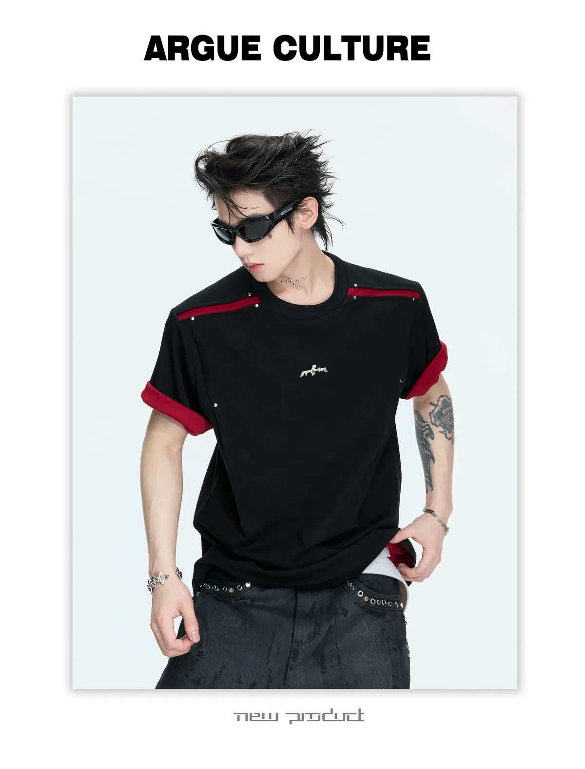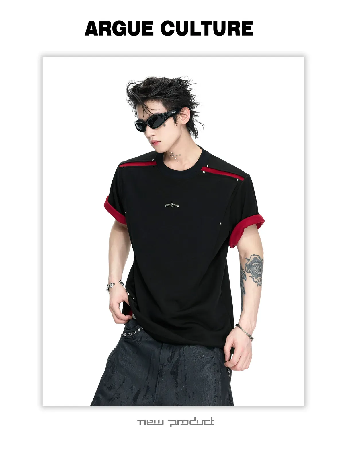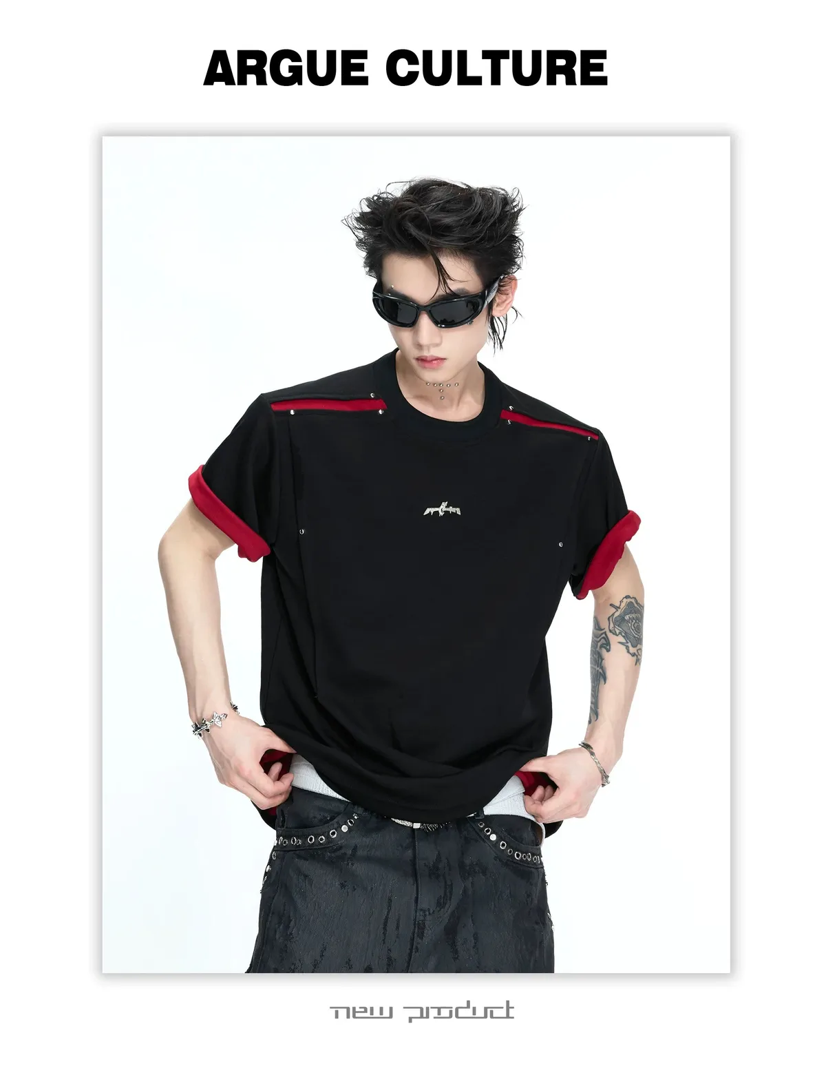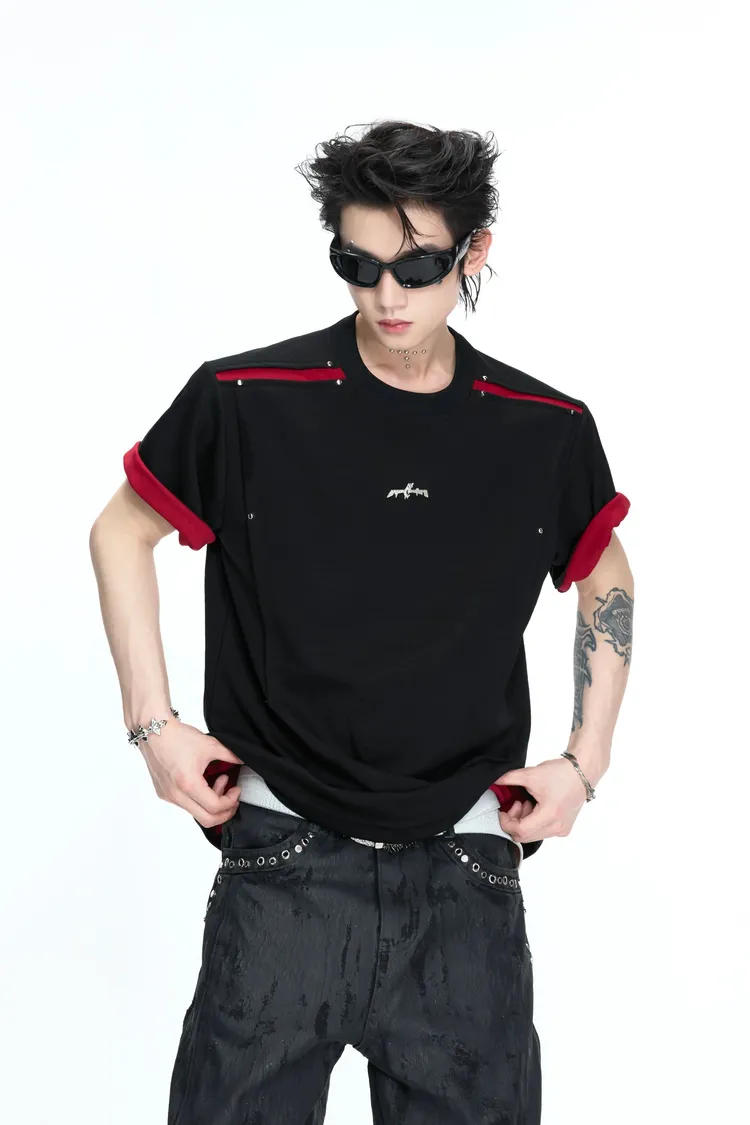 ARGUE 撞色刀割 抗菌涼感 短袖(黑色)
