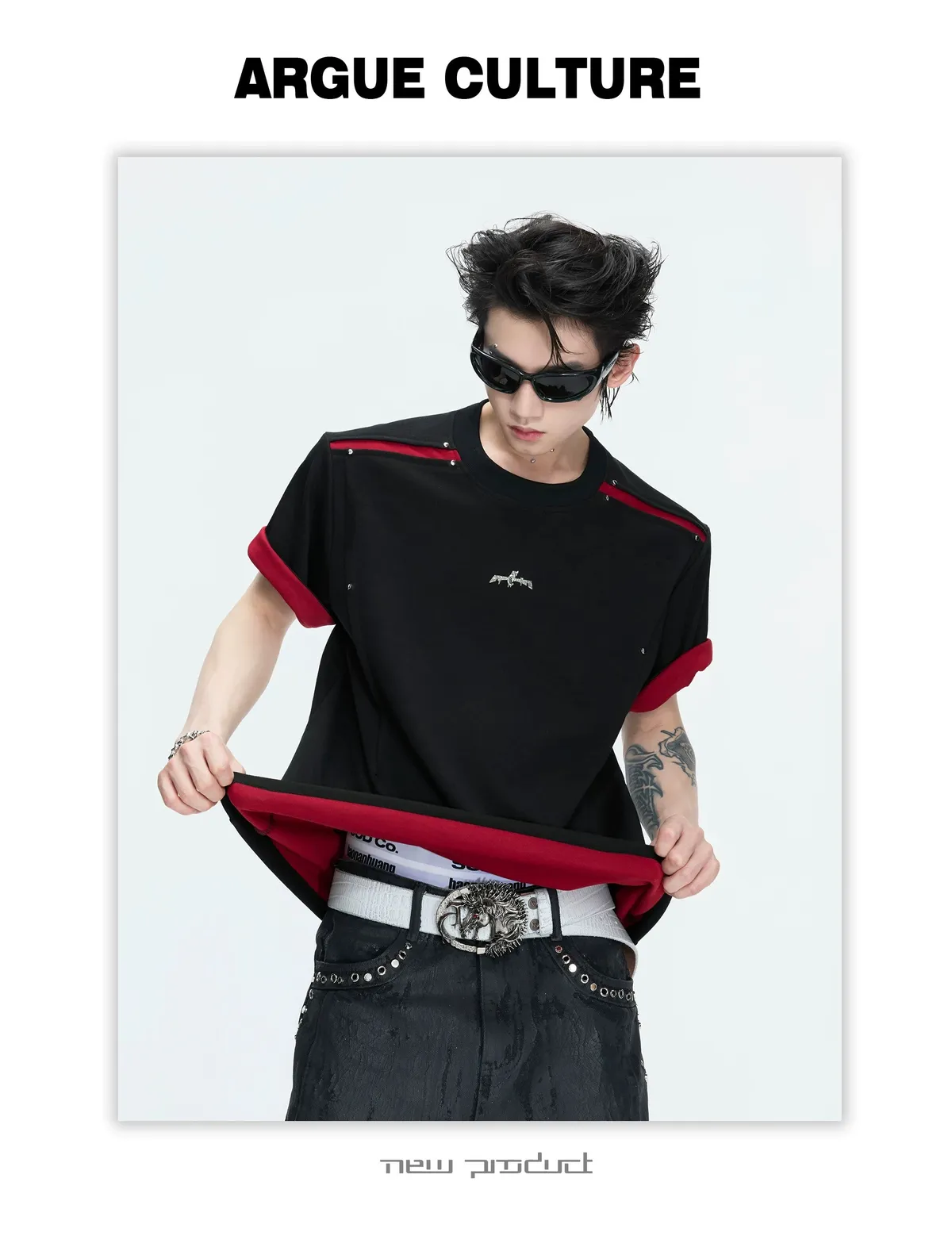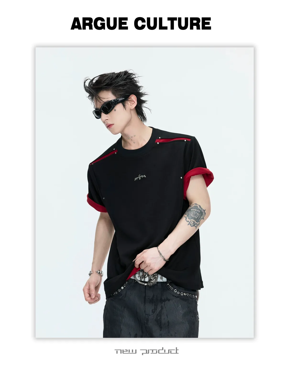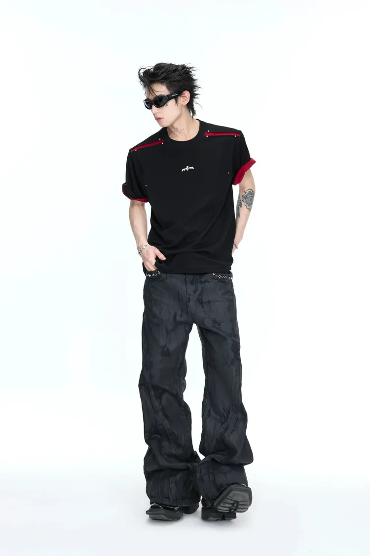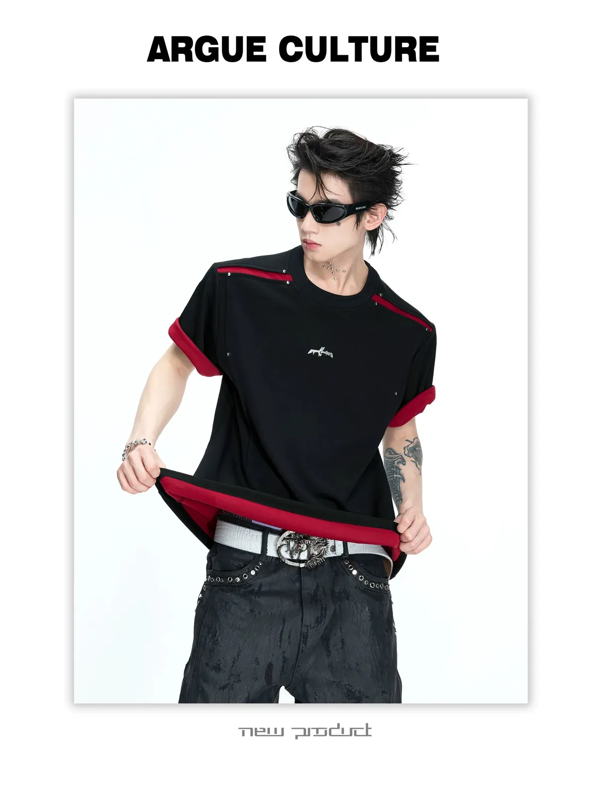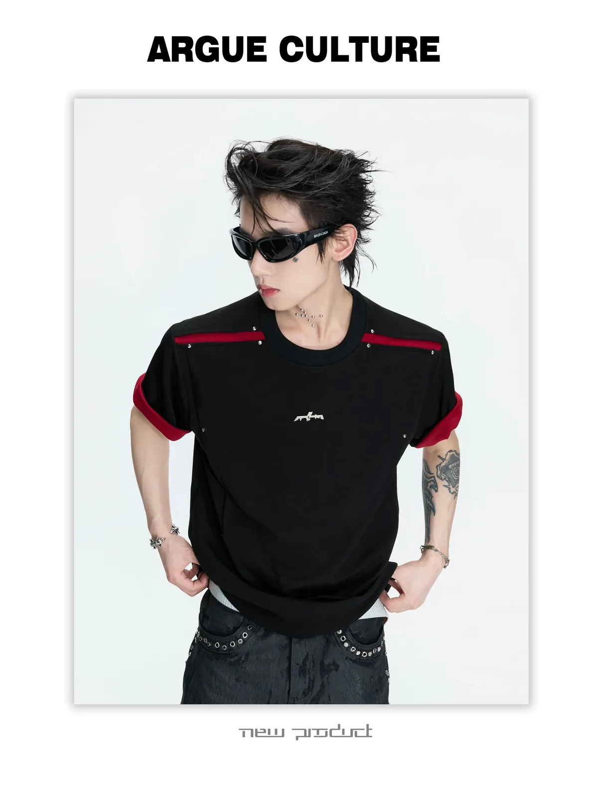 ARGUE 撞色刀割 抗菌涼感 短袖(黑色)
