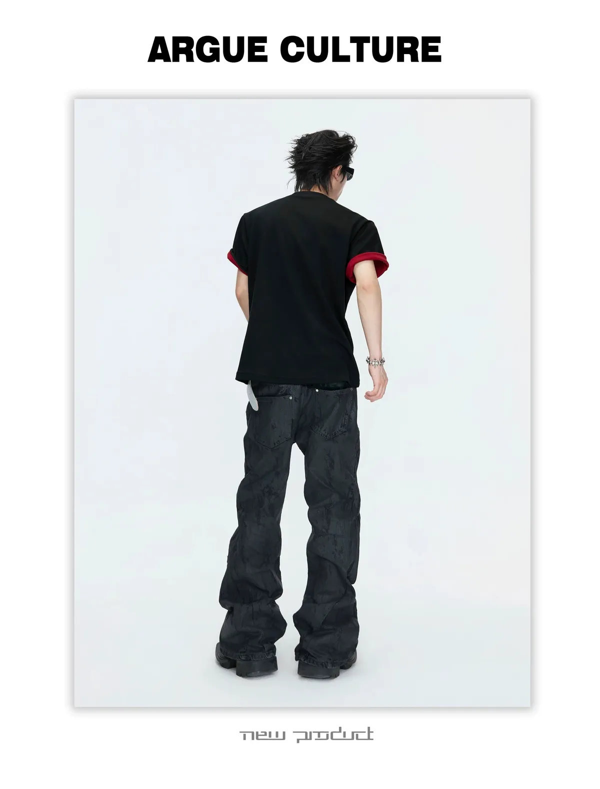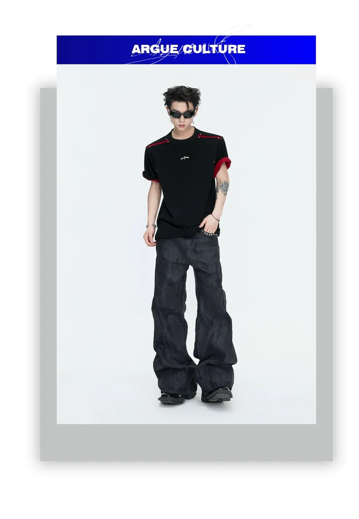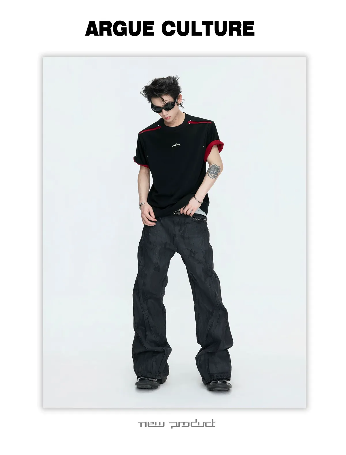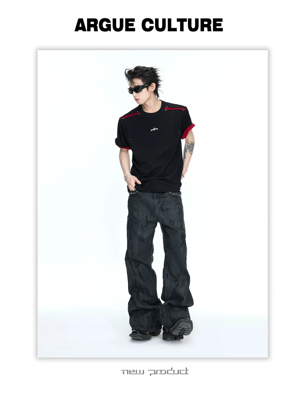 ARGUE 撞色刀割 抗菌涼感 短袖(黑色)