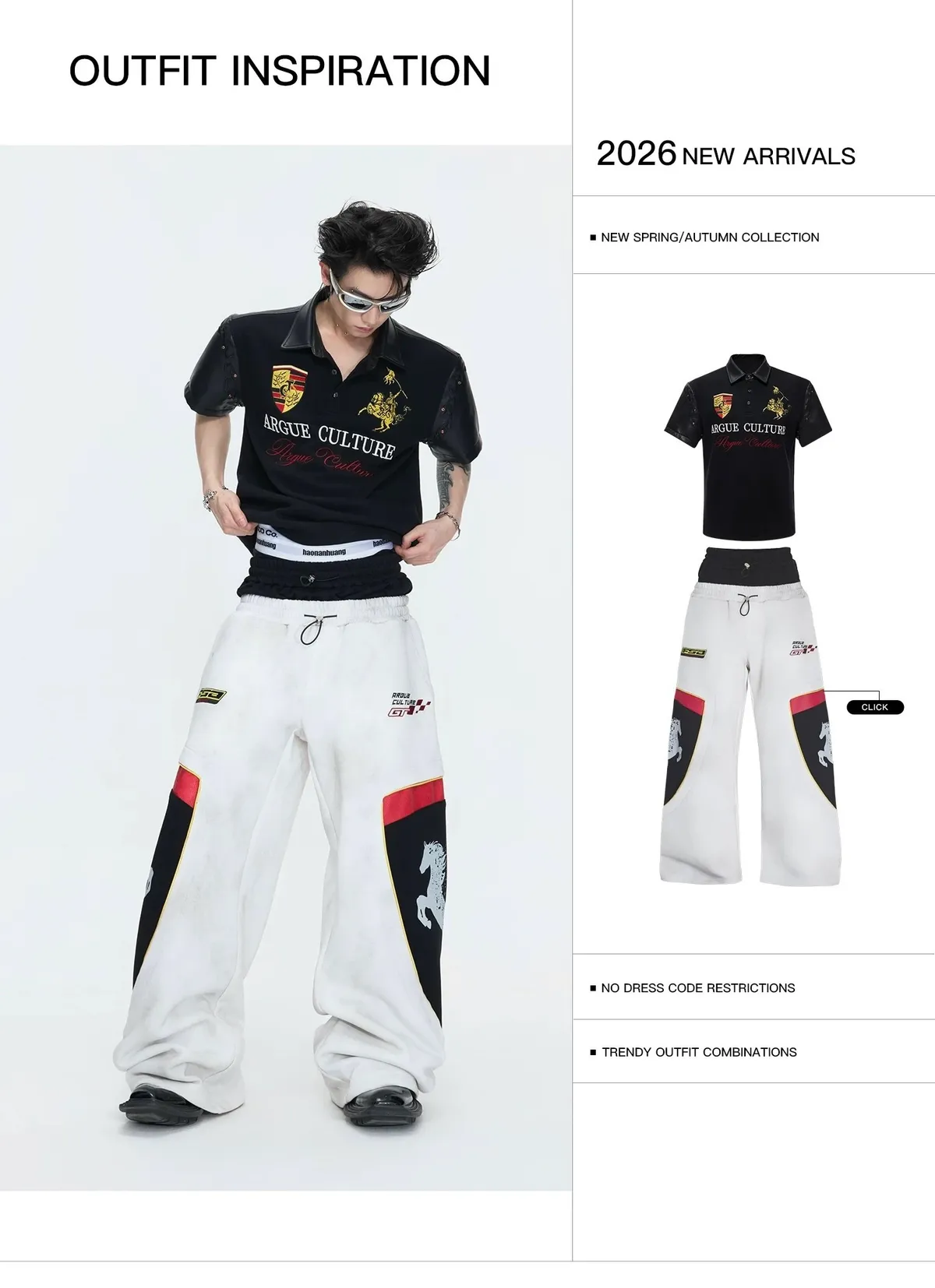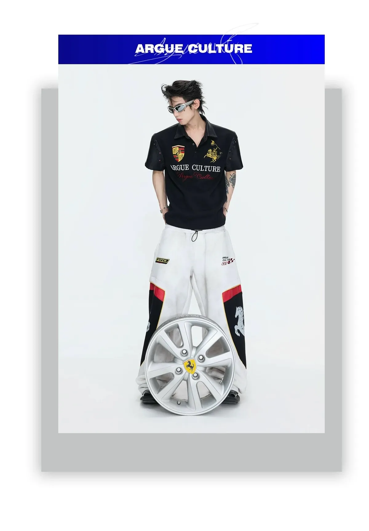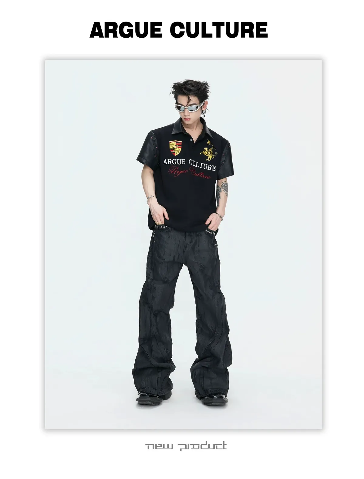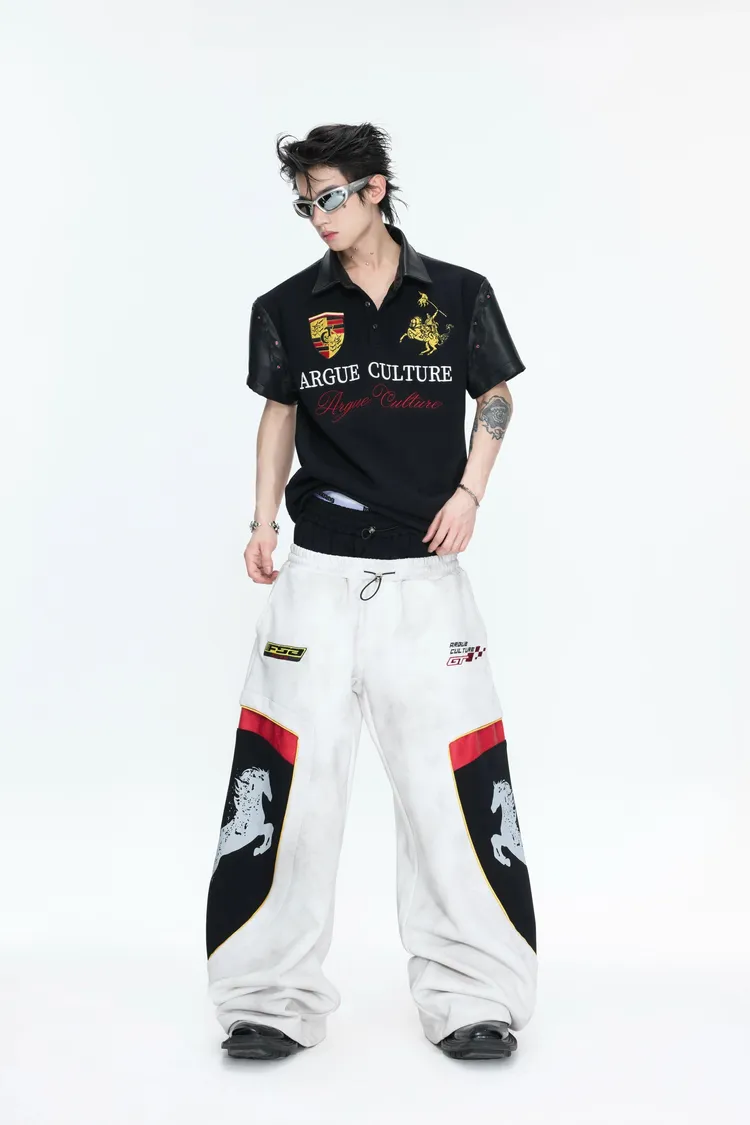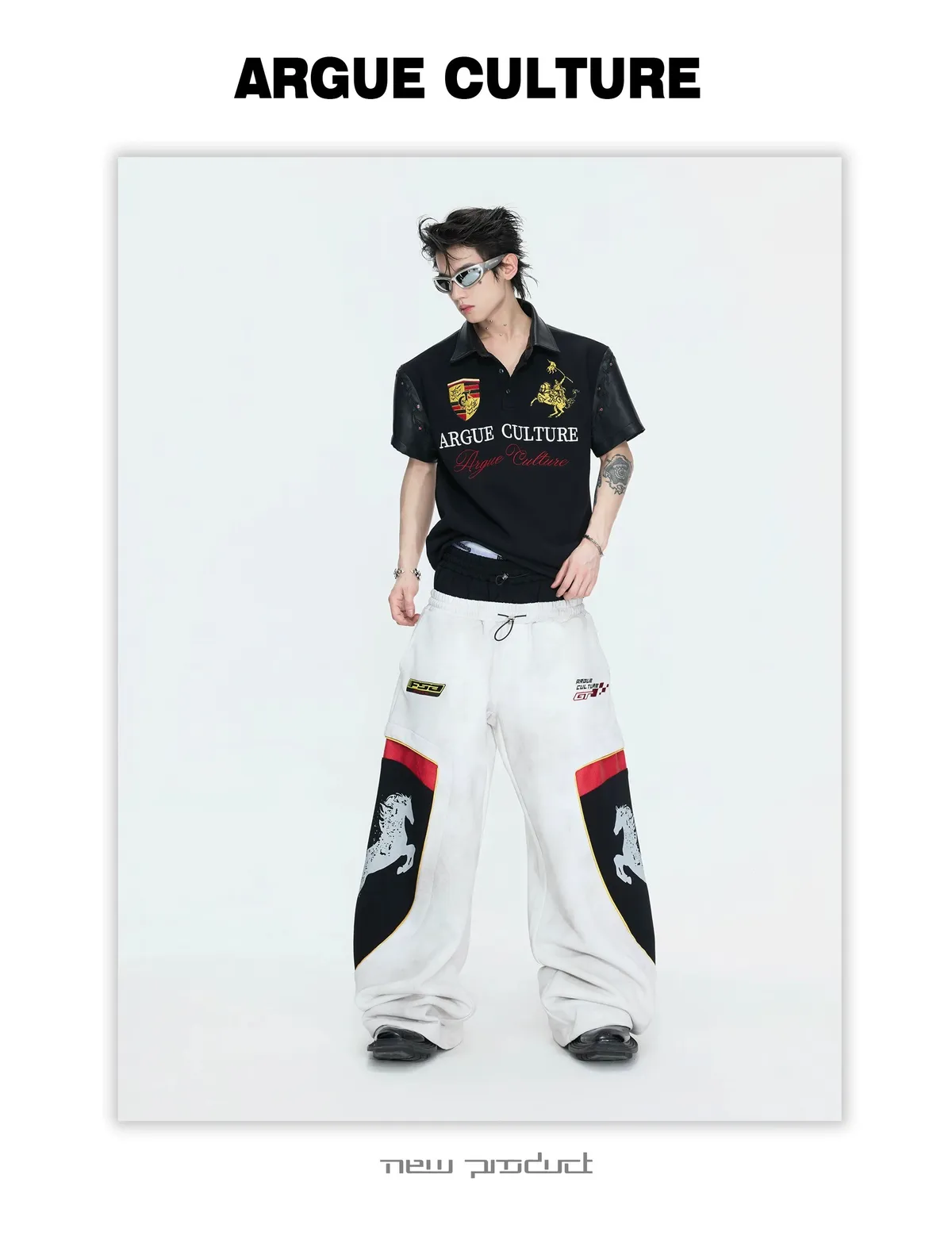 ARGUE 皮革拼接 賽車刺繡 POLO(黑色)