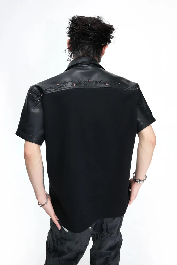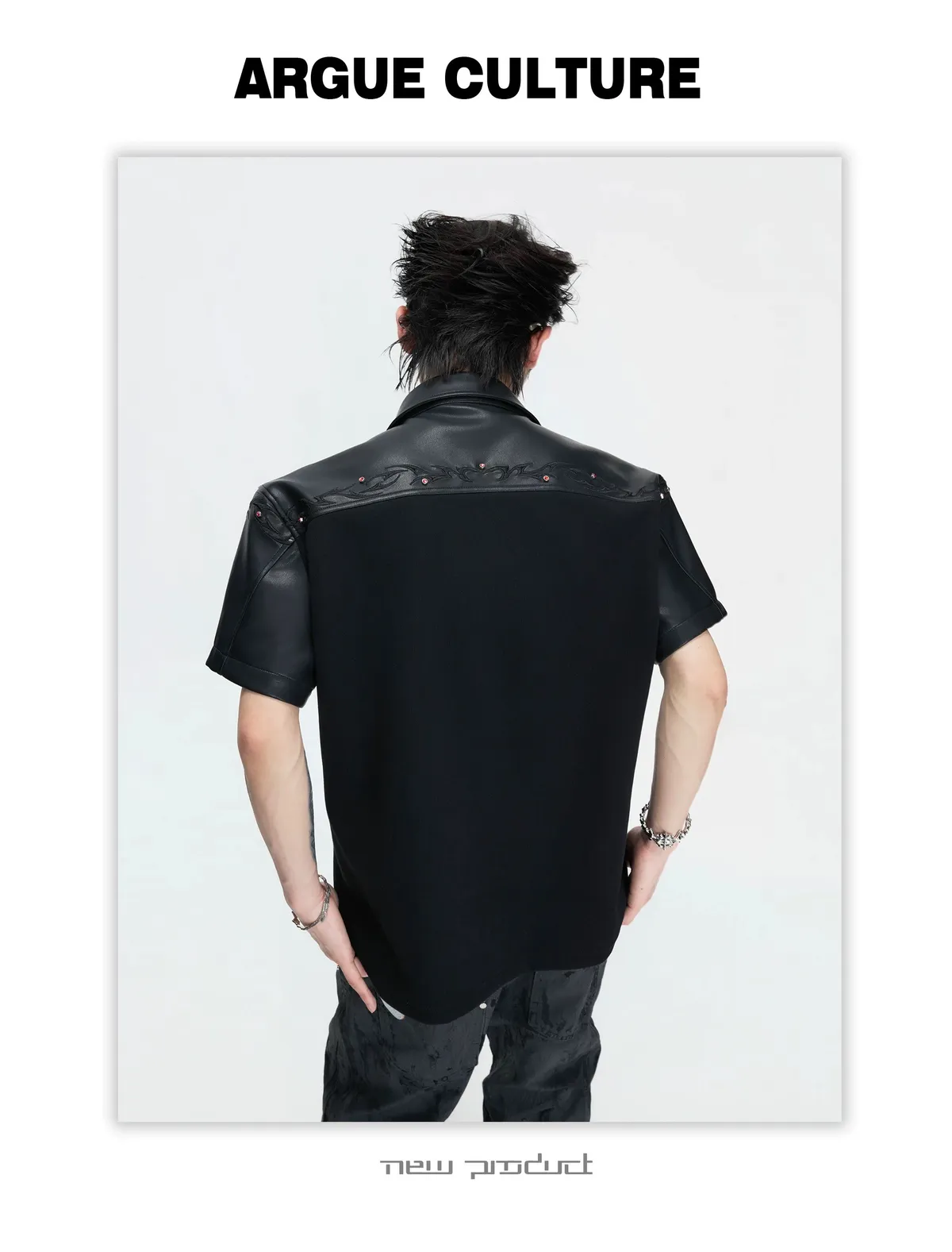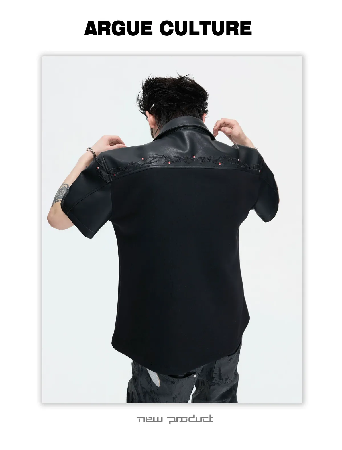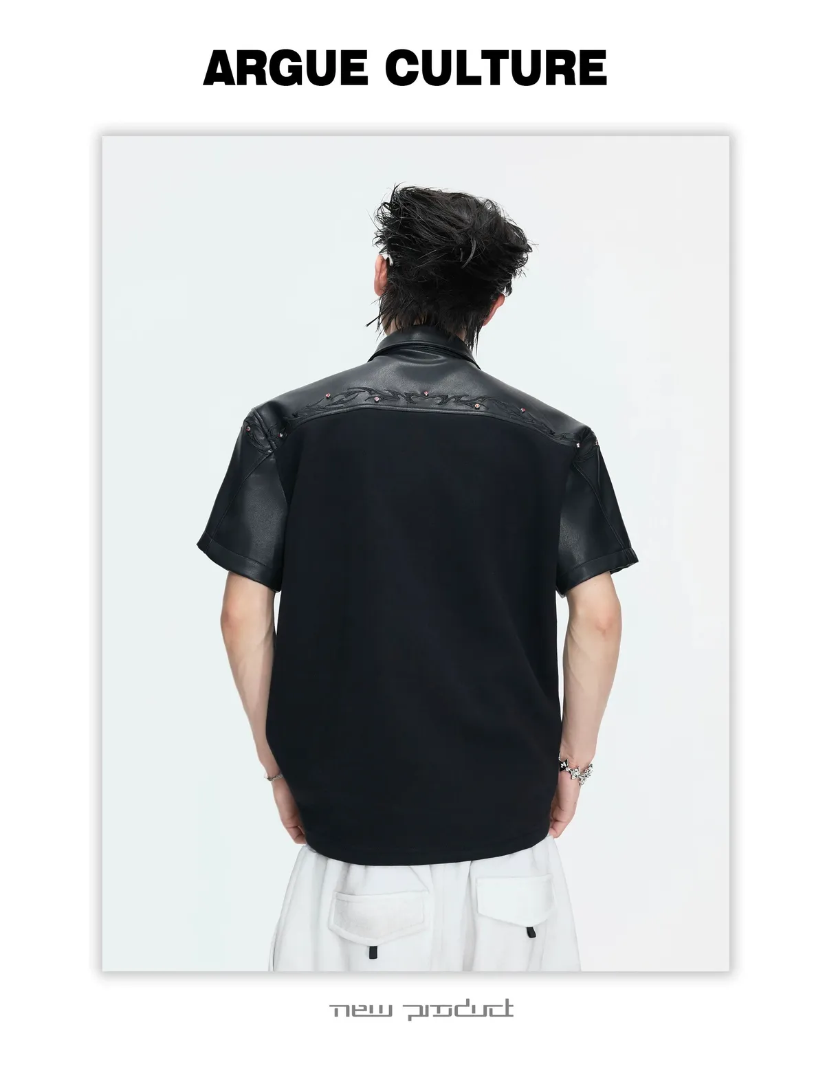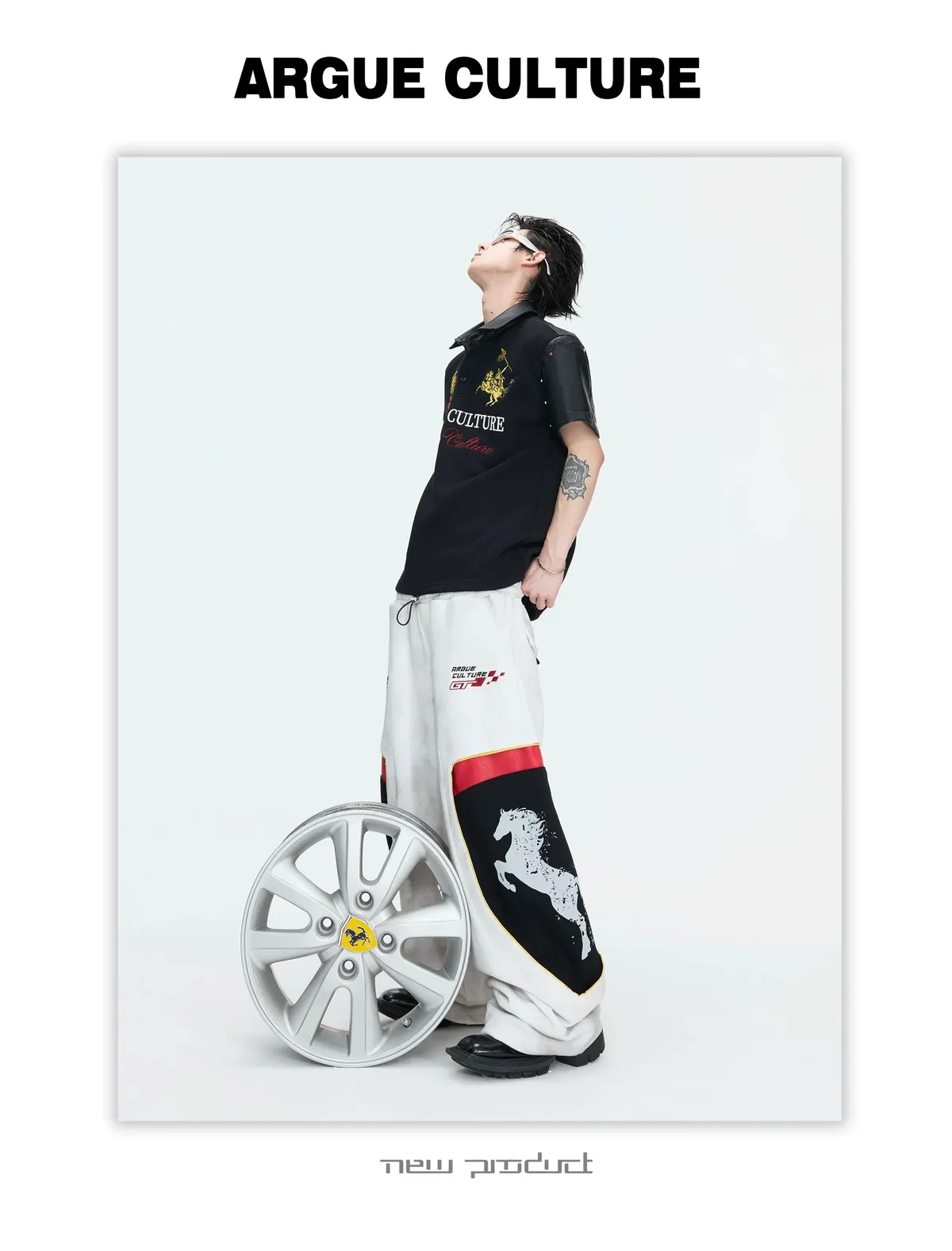 ARGUE 皮革拼接 賽車刺繡 POLO(黑色)