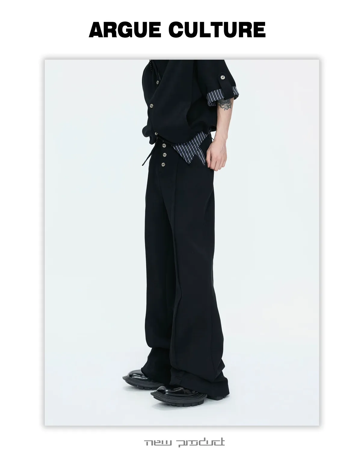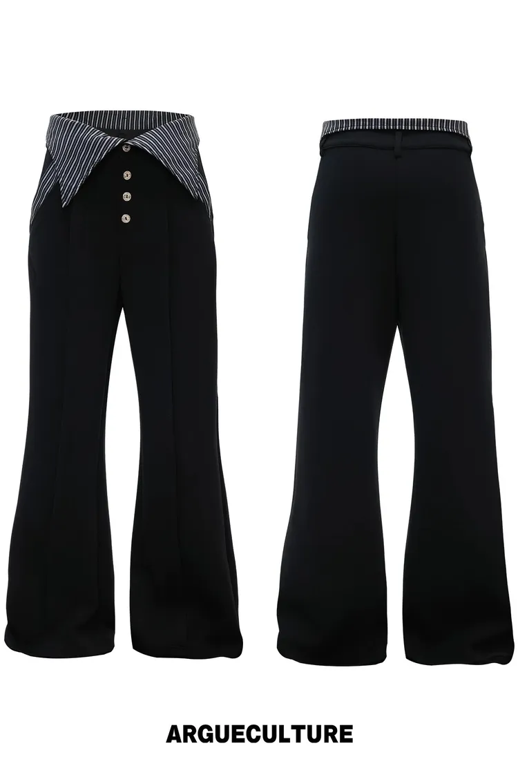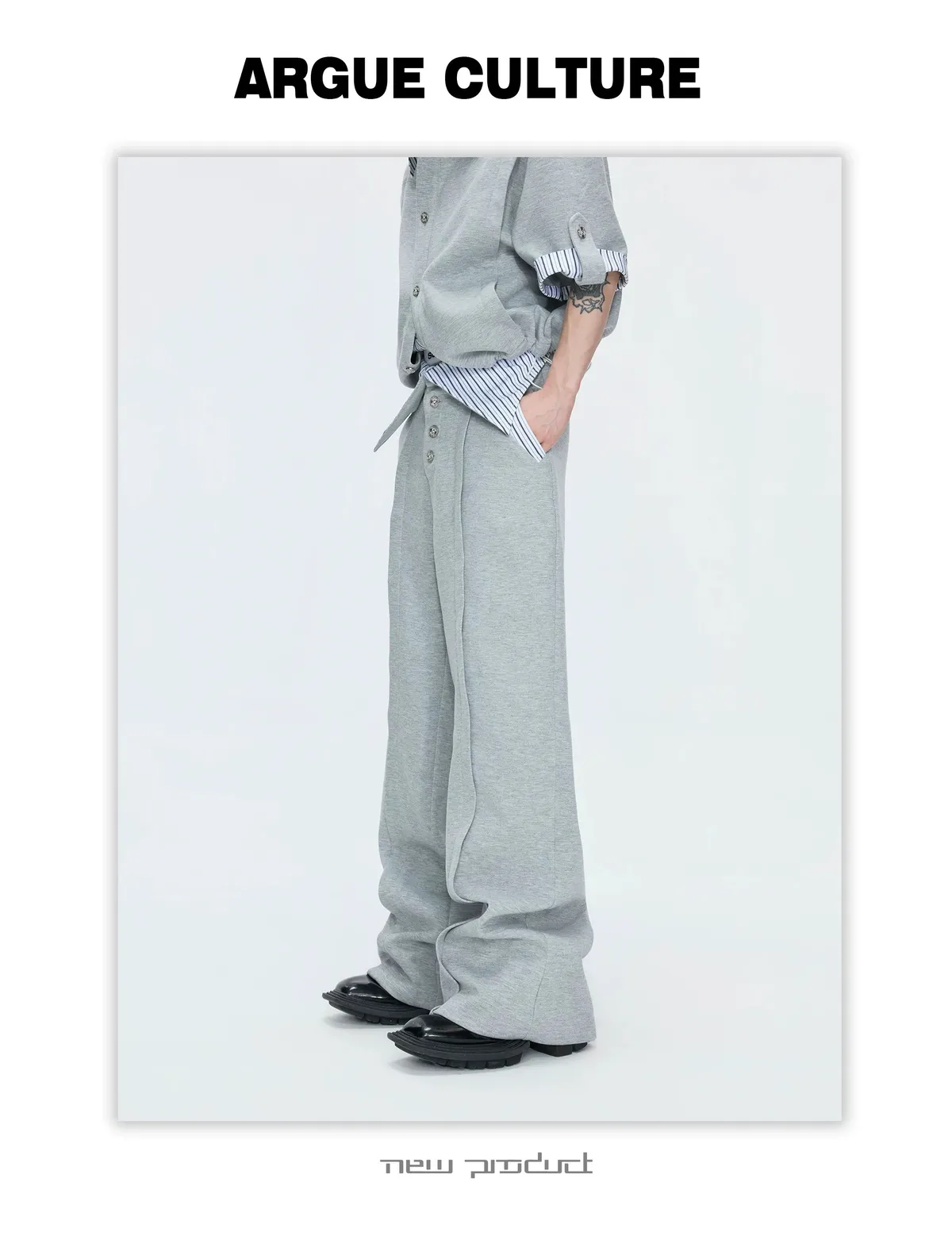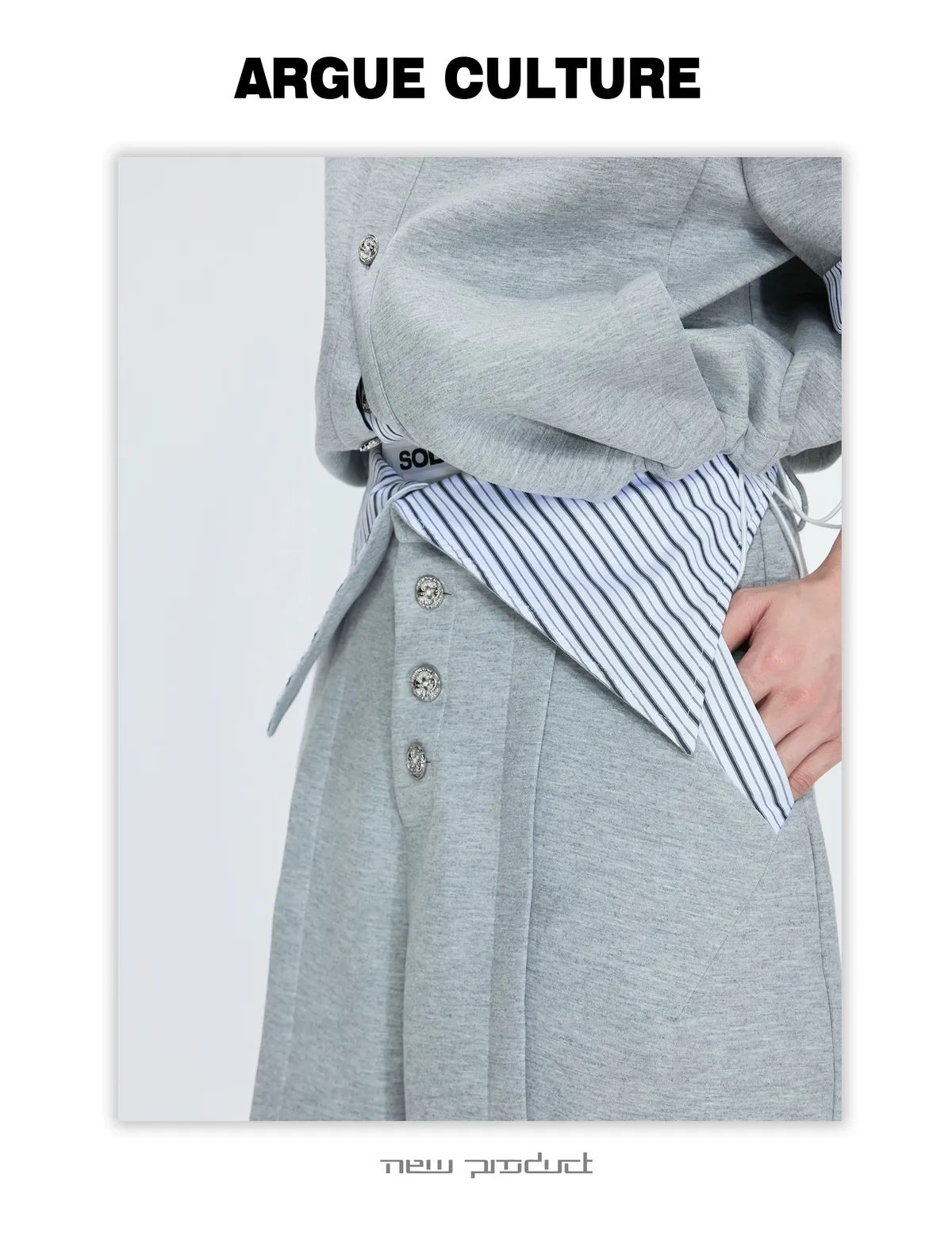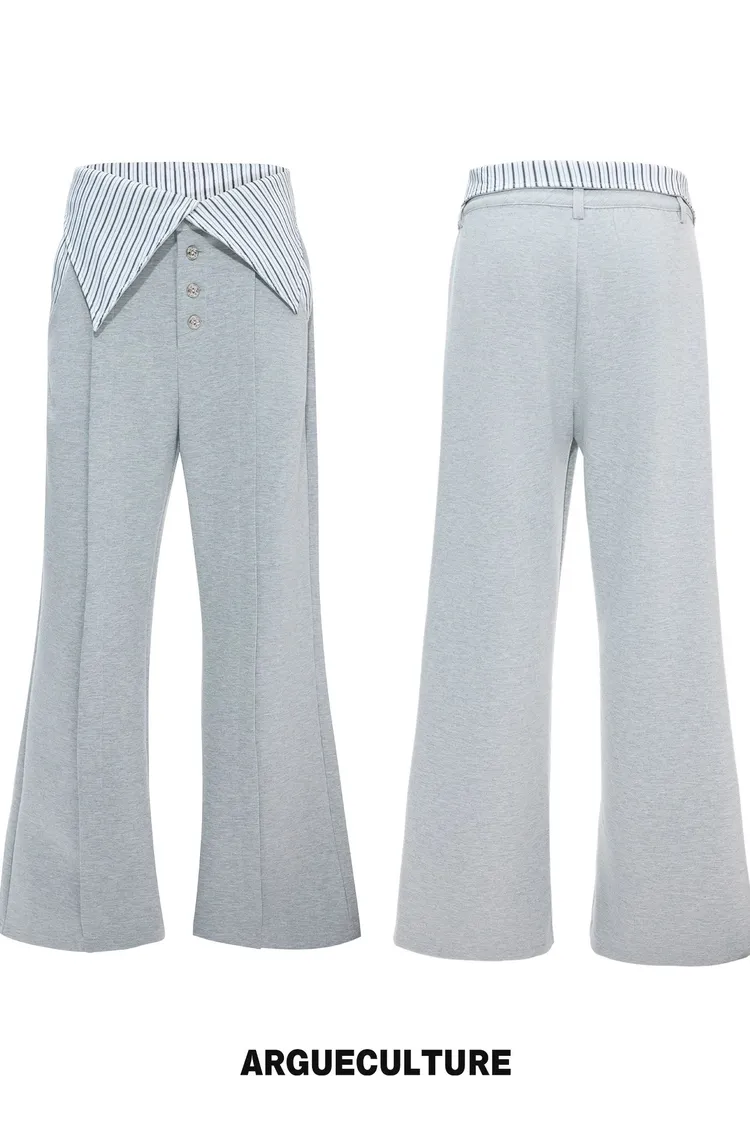 ARGUE 條紋假兩件 涼感套裝 襯衫 棉褲(黑/灰)
