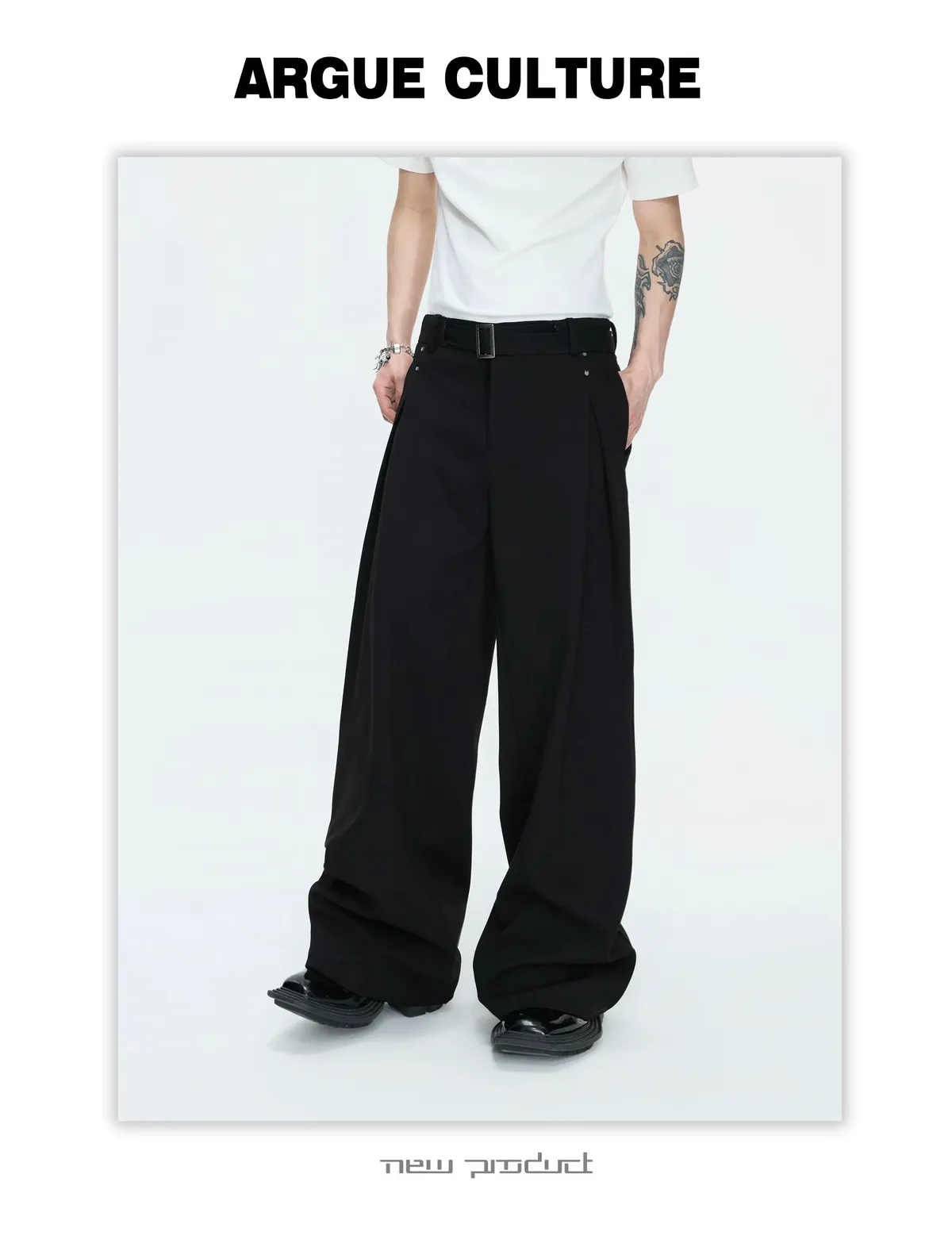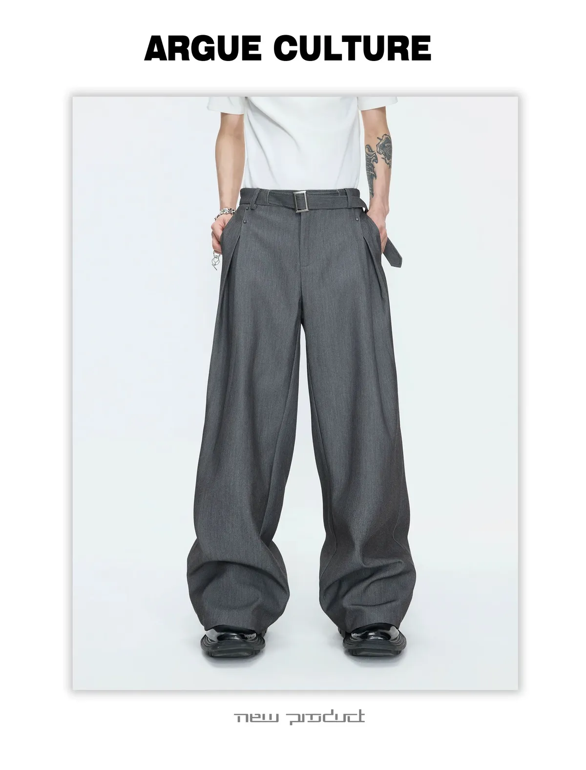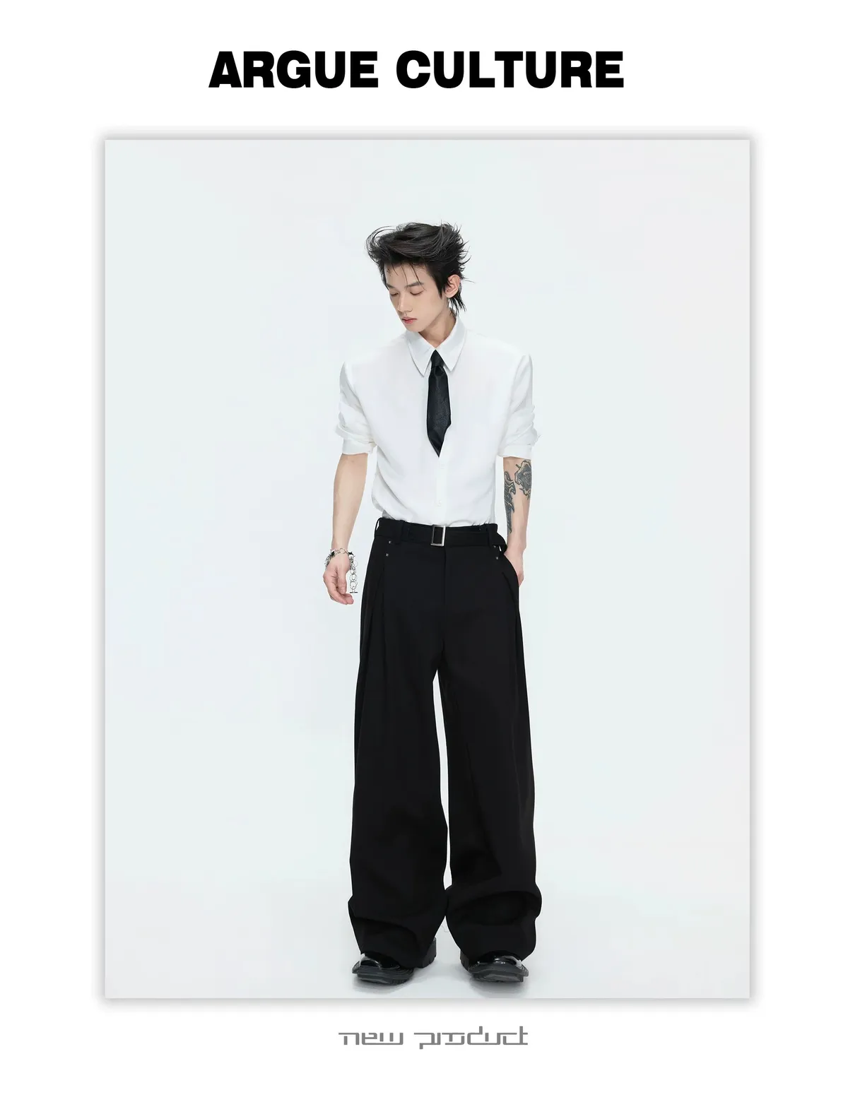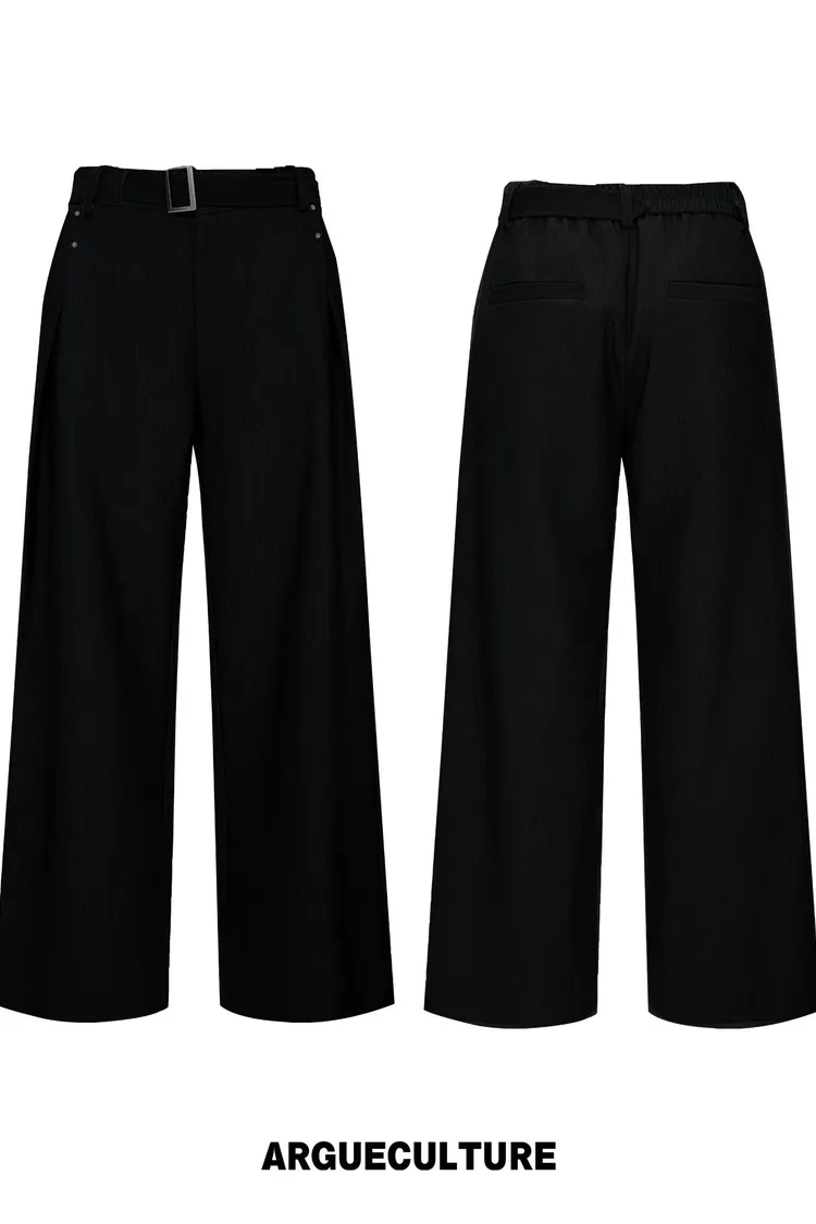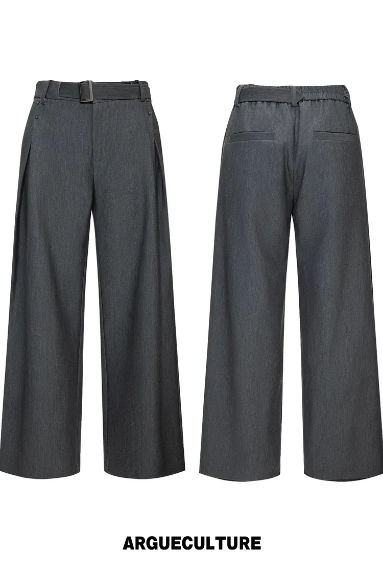 ARGUE 不規則假兩件 金屬標 套裝 BOXY短袖 西裝褲(黑/灰)