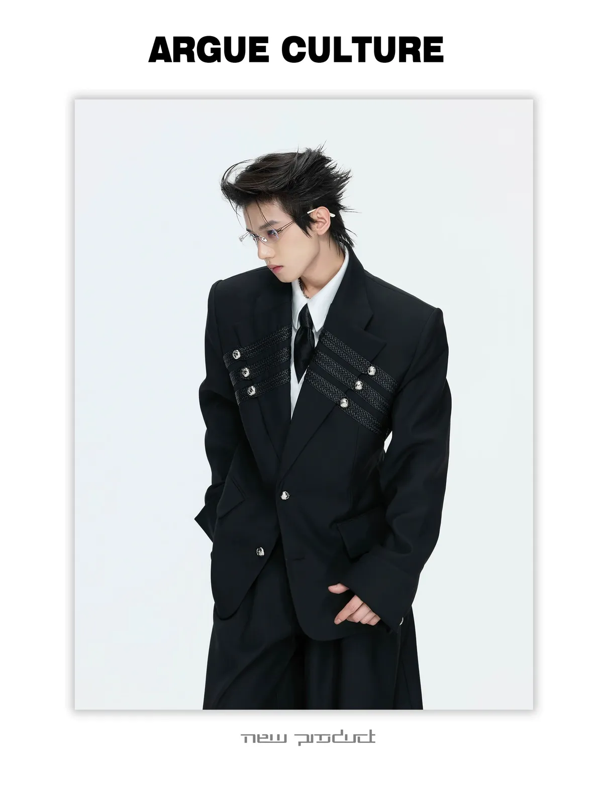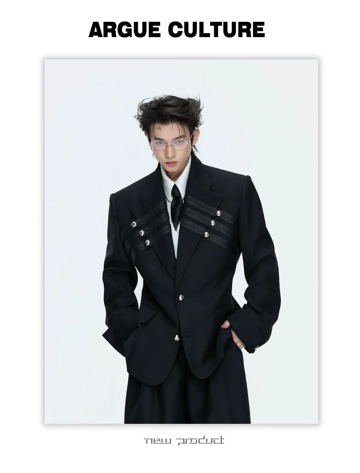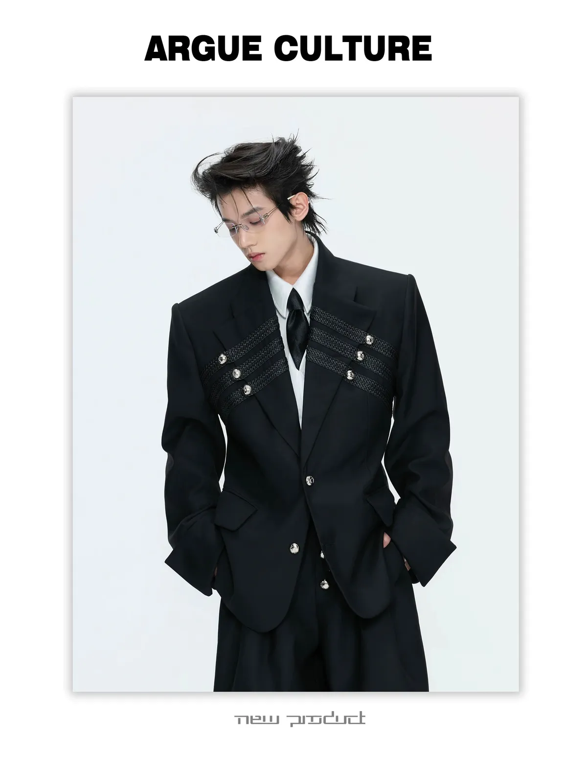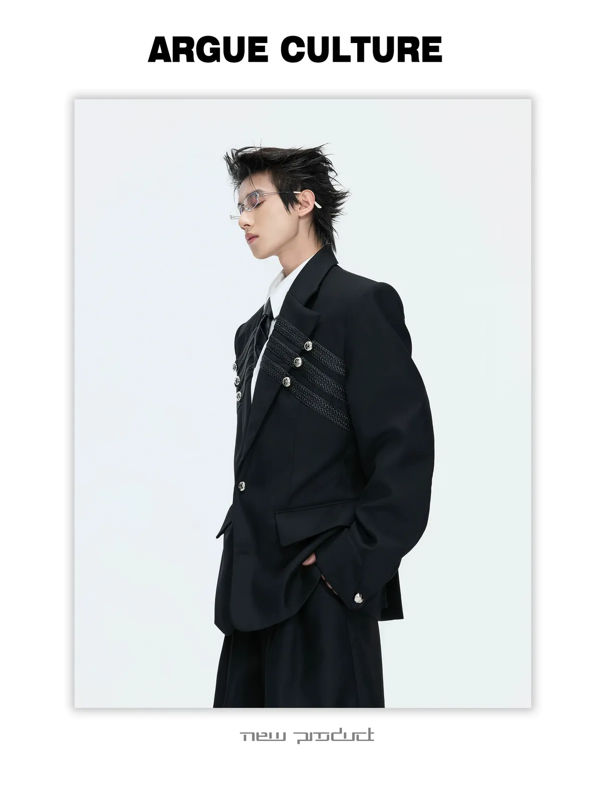 ARGUE 宮廷編織 金屬釘 雙排扣收腰西裝外套 西裝褲 套裝(黑/灰)