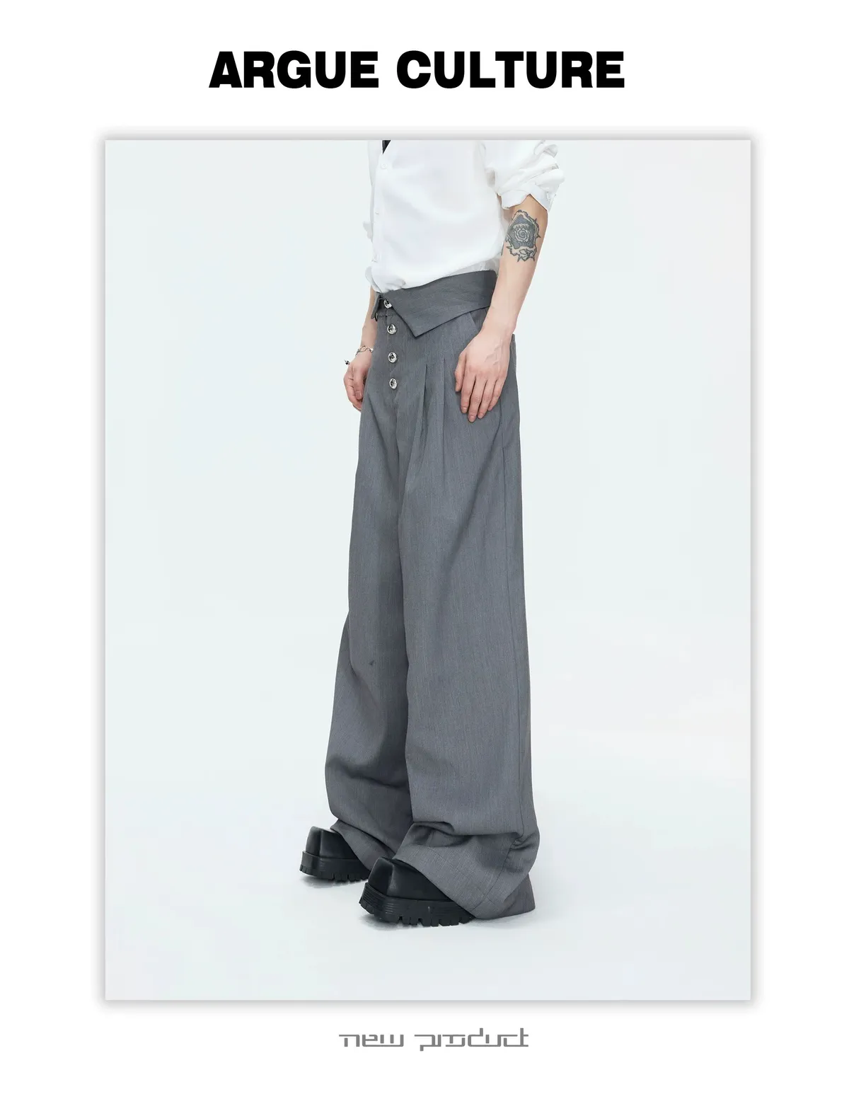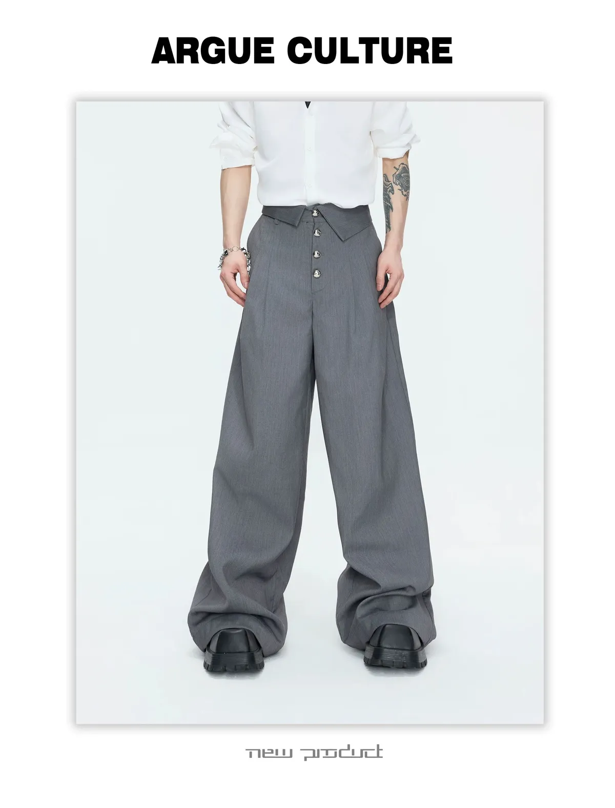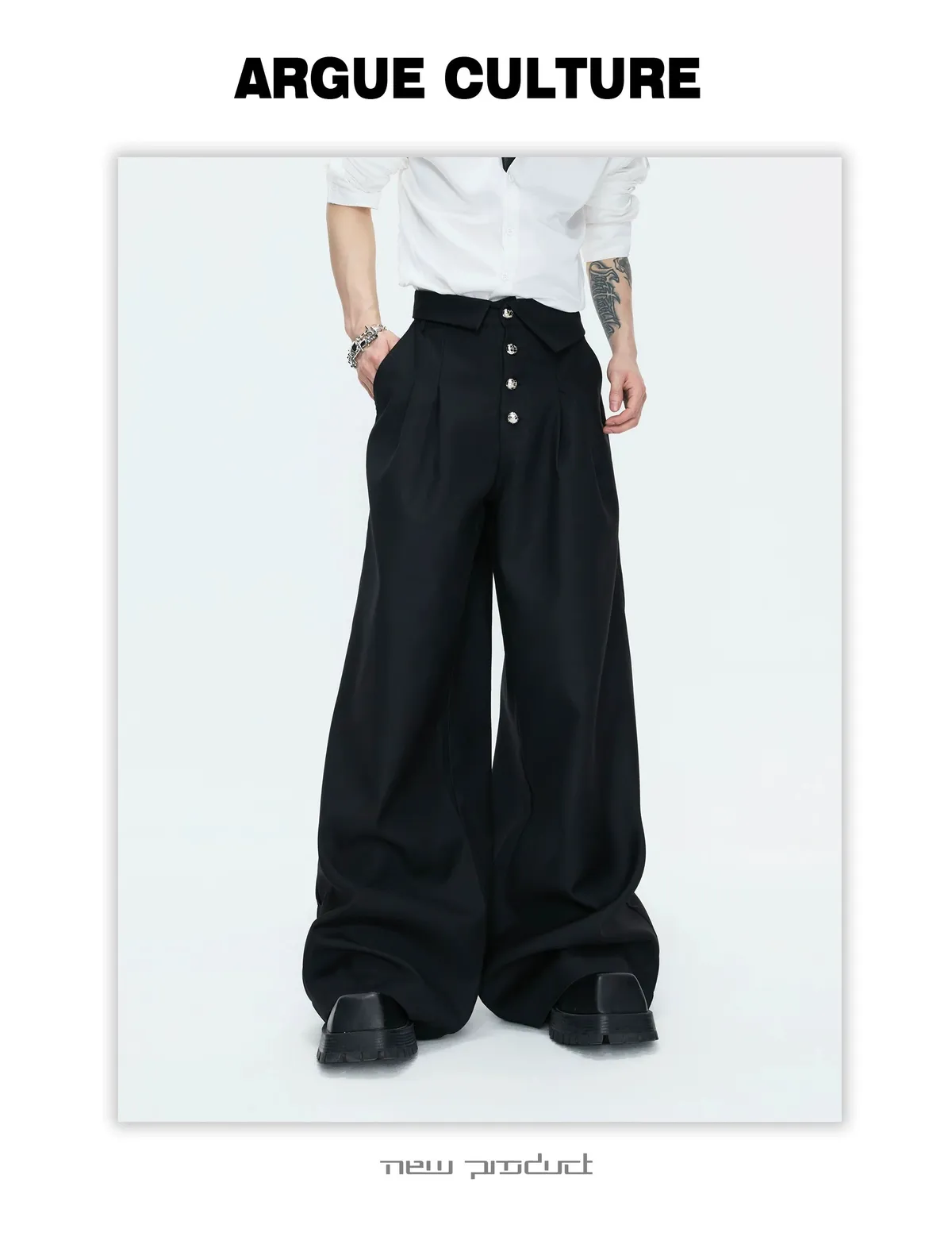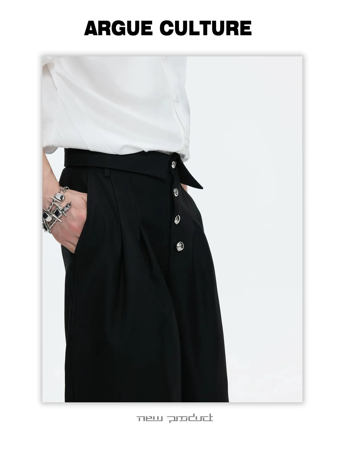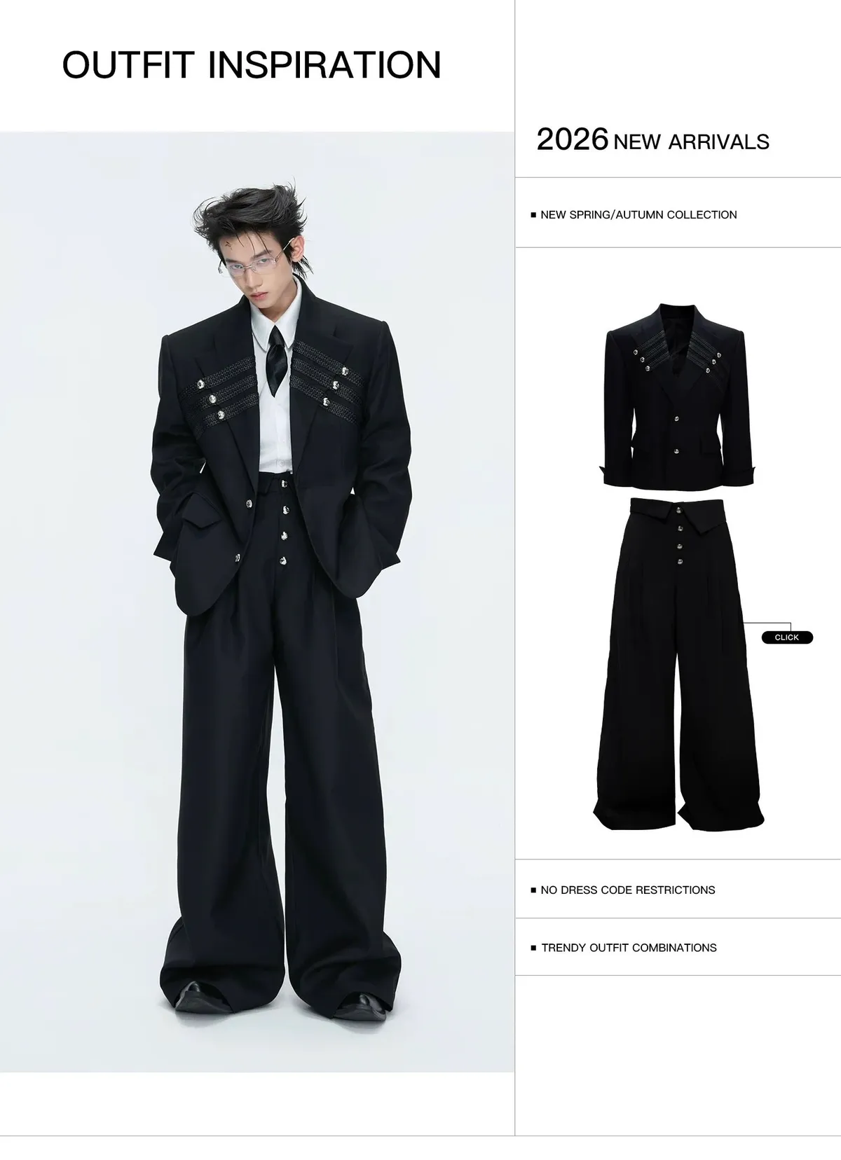 ARGUE 宮廷編織 金屬釘 雙排扣收腰西裝外套 西裝褲 套裝(黑/灰)