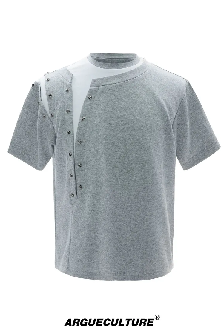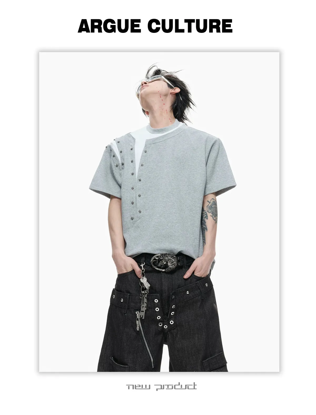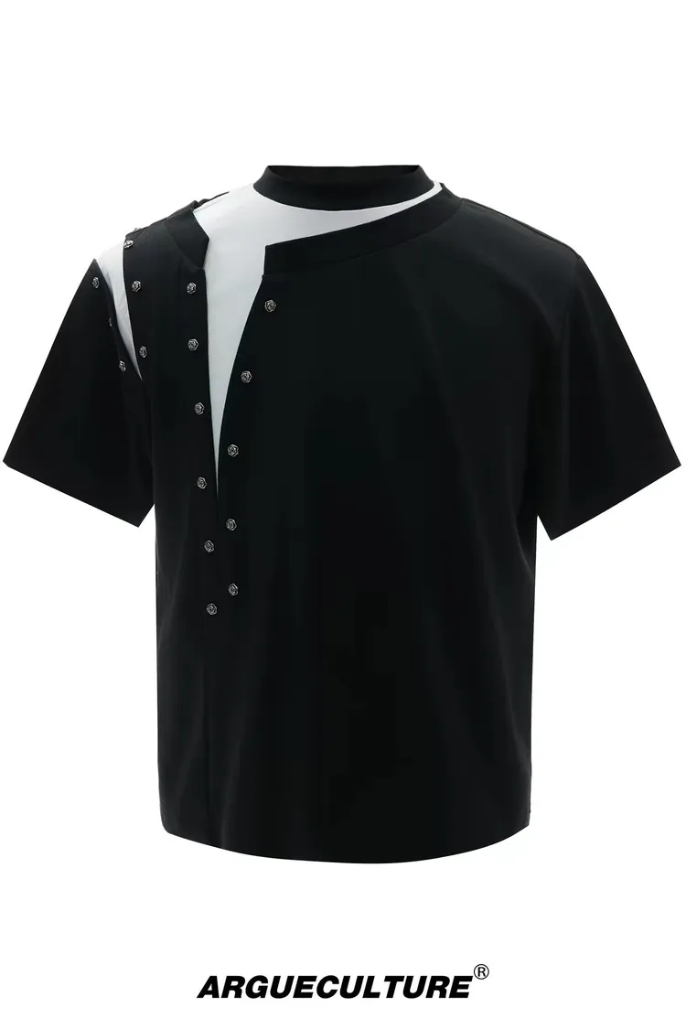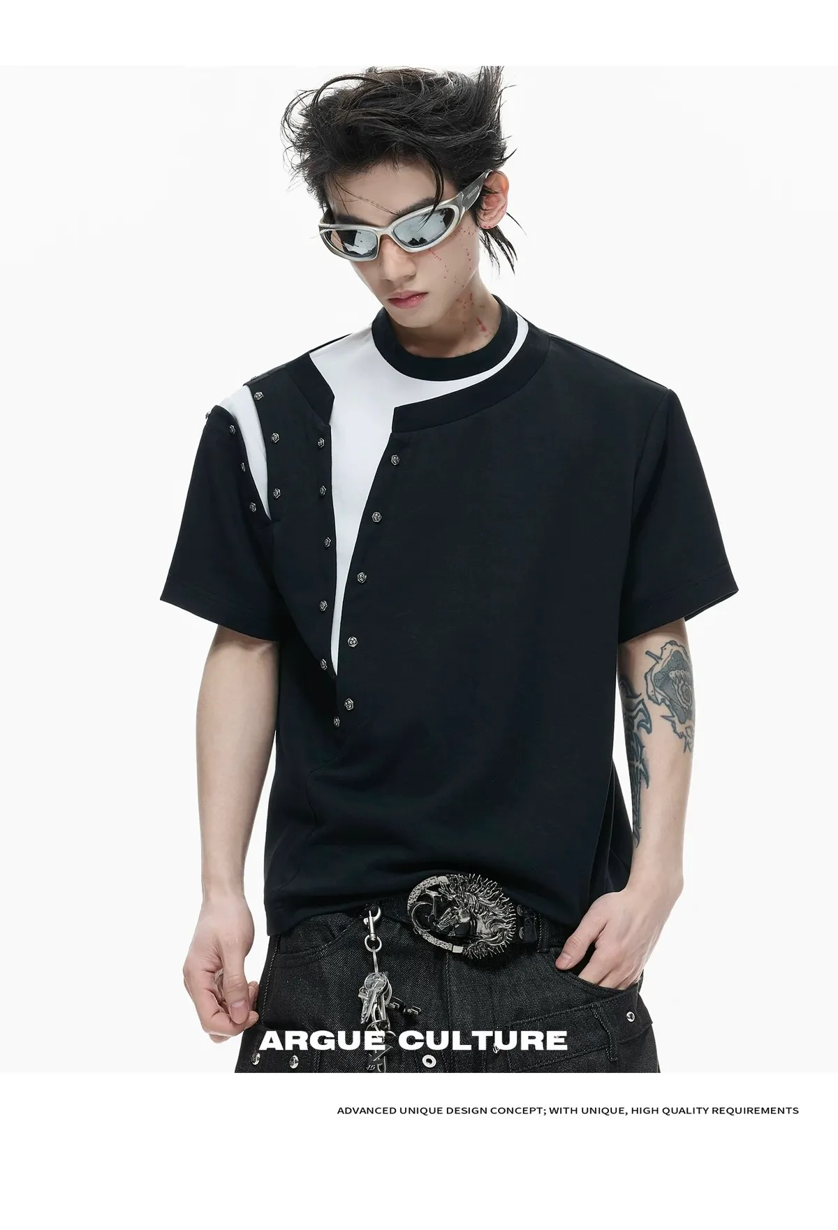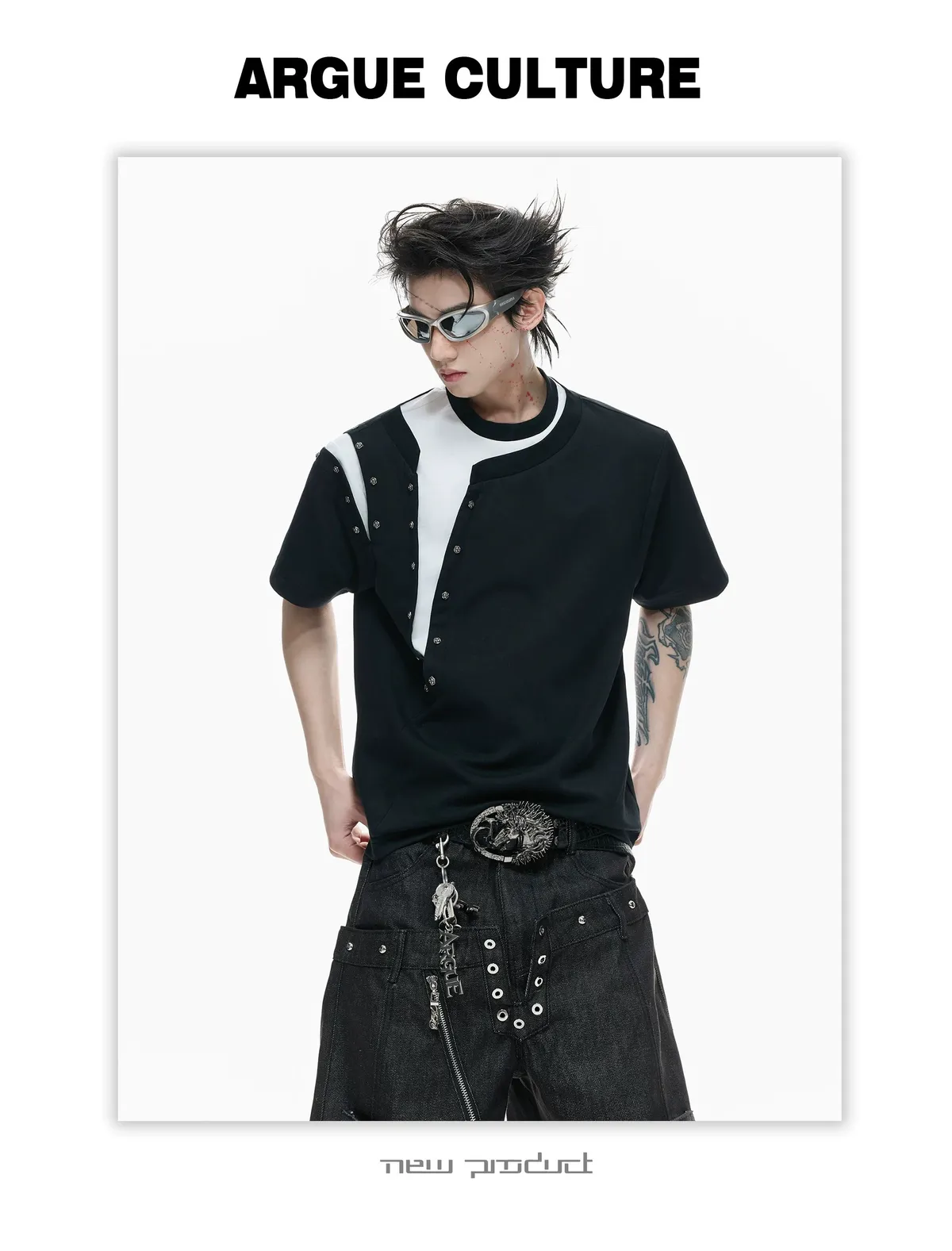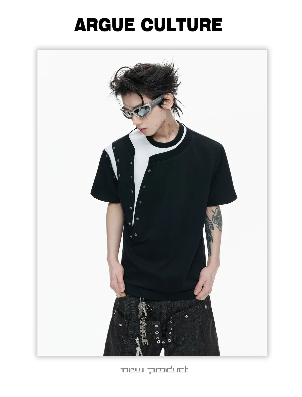 ARGUE 分割撞色 卯釘 短袖(黑/灰)