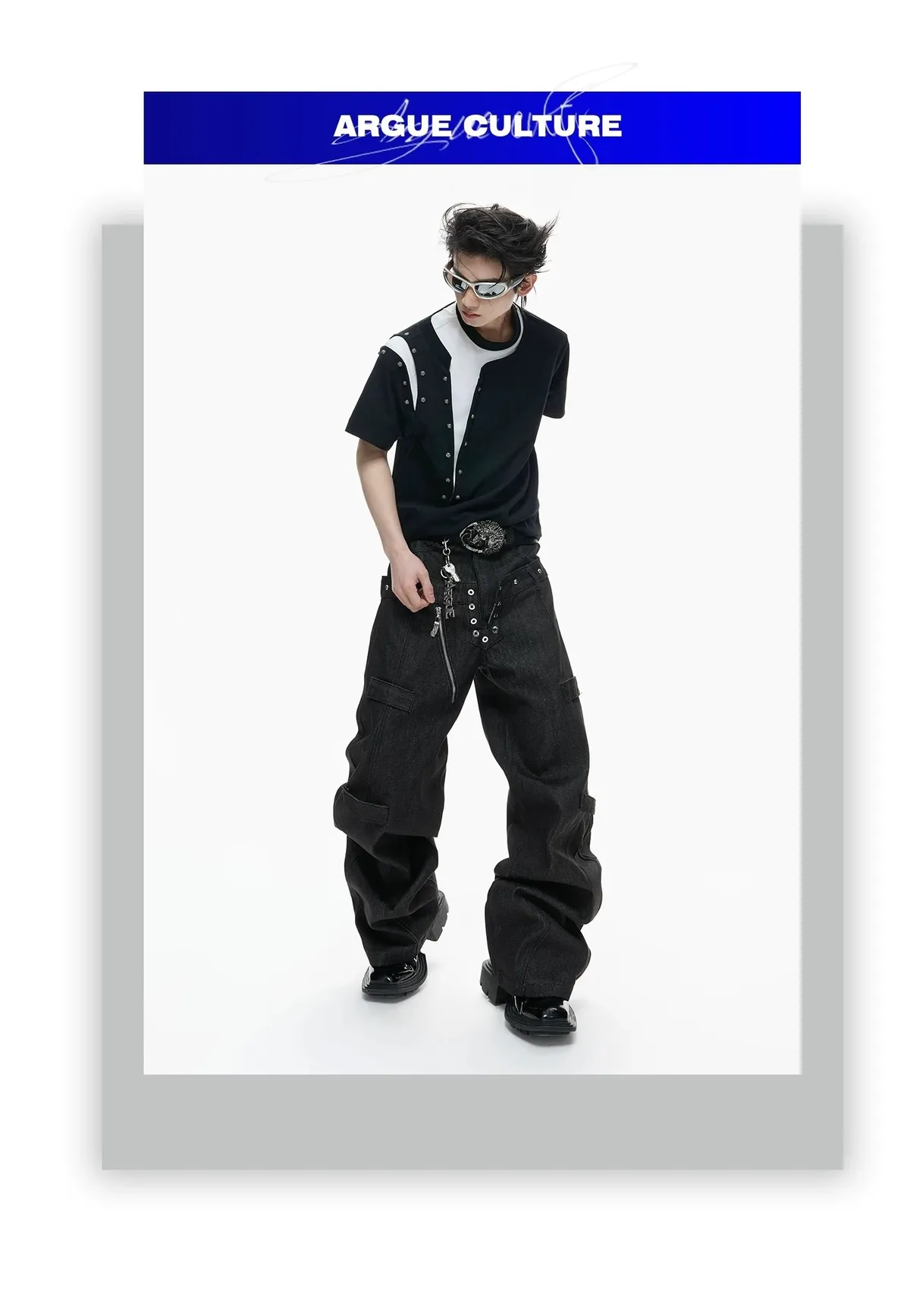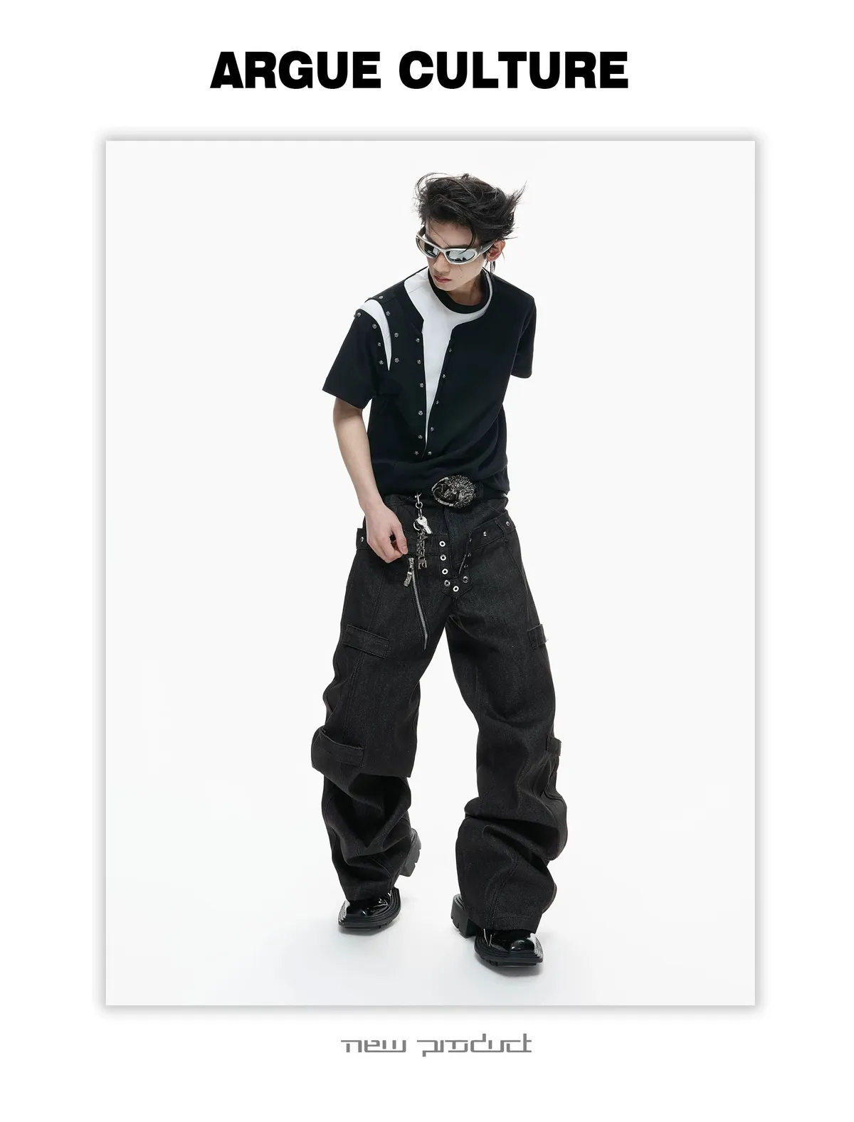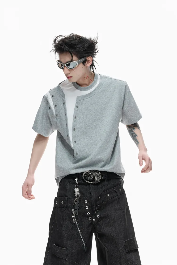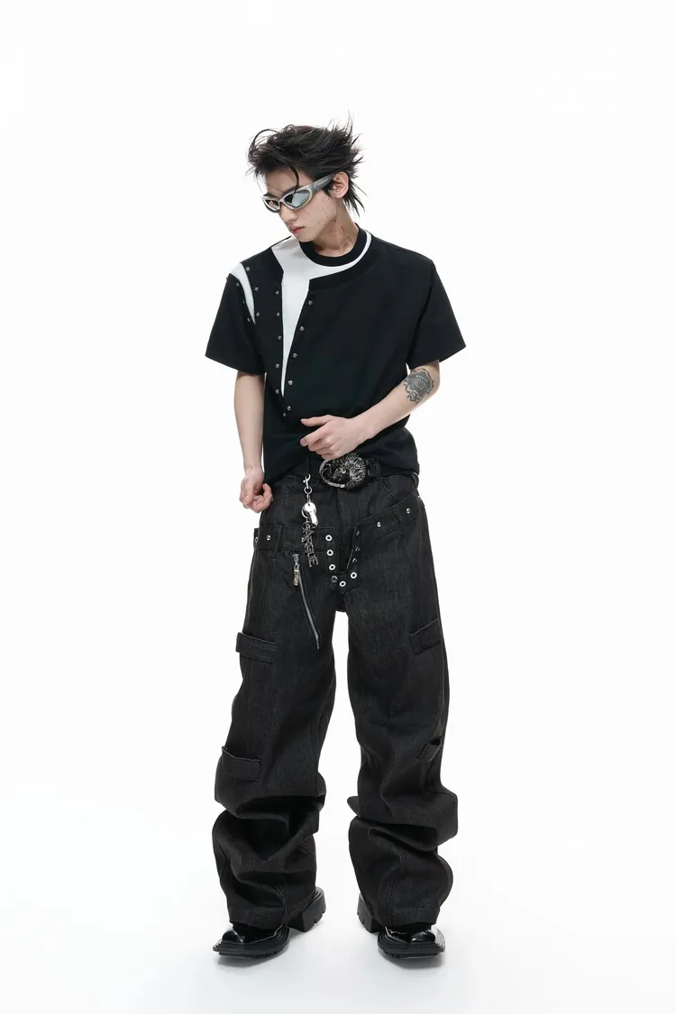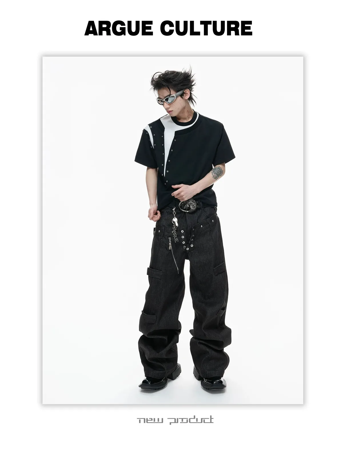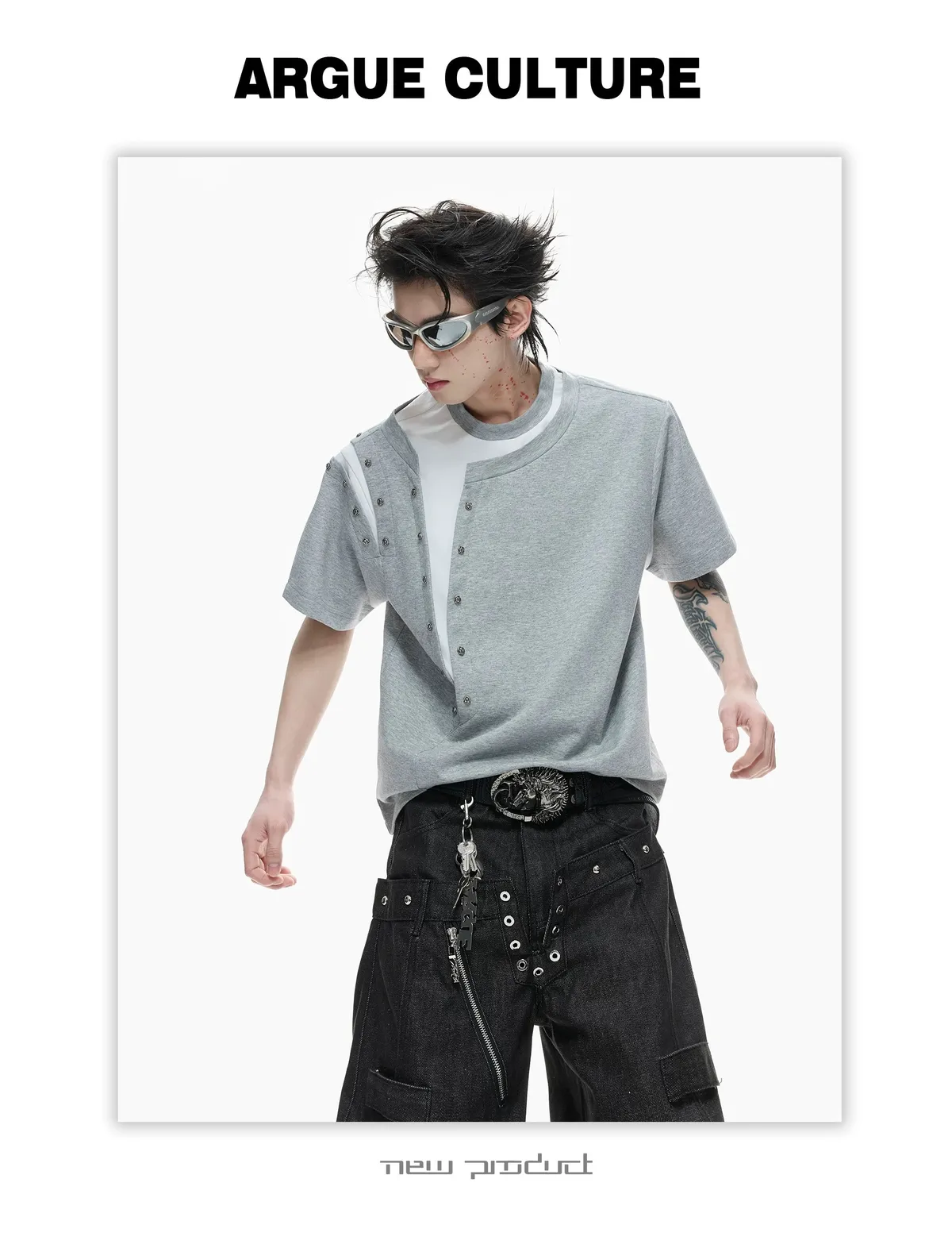 ARGUE 分割撞色 卯釘 短袖(黑/灰)