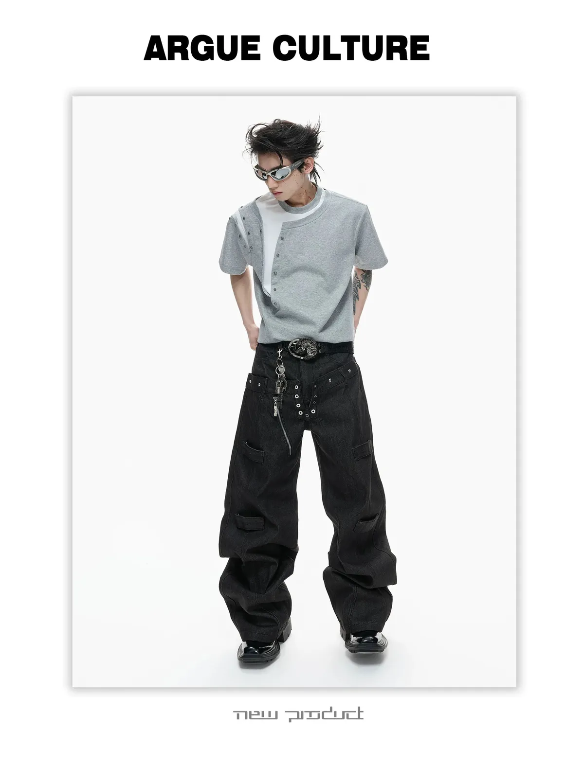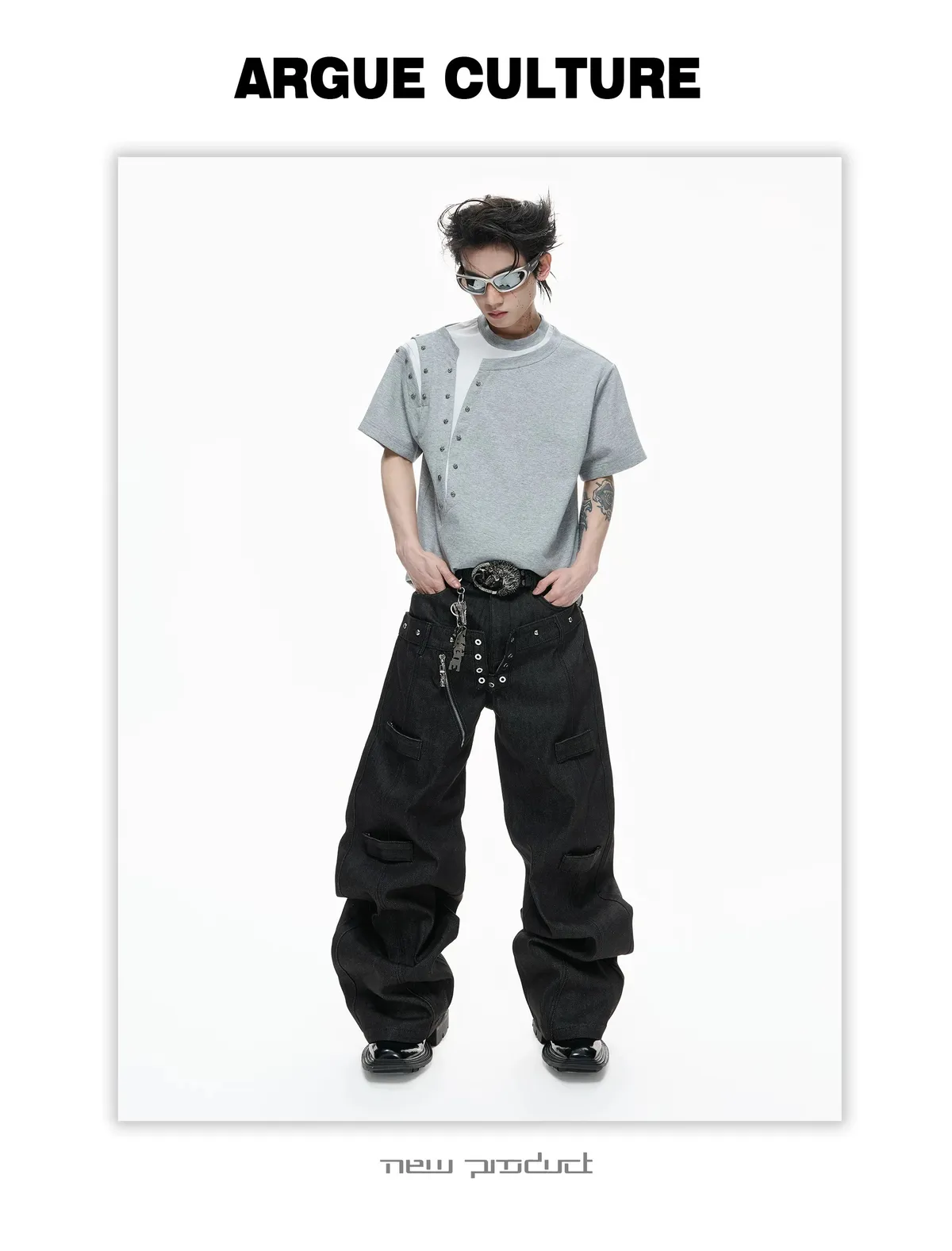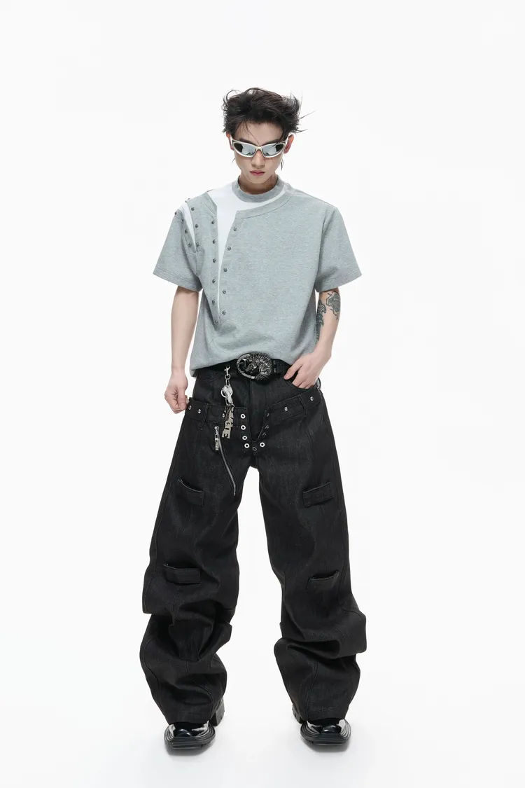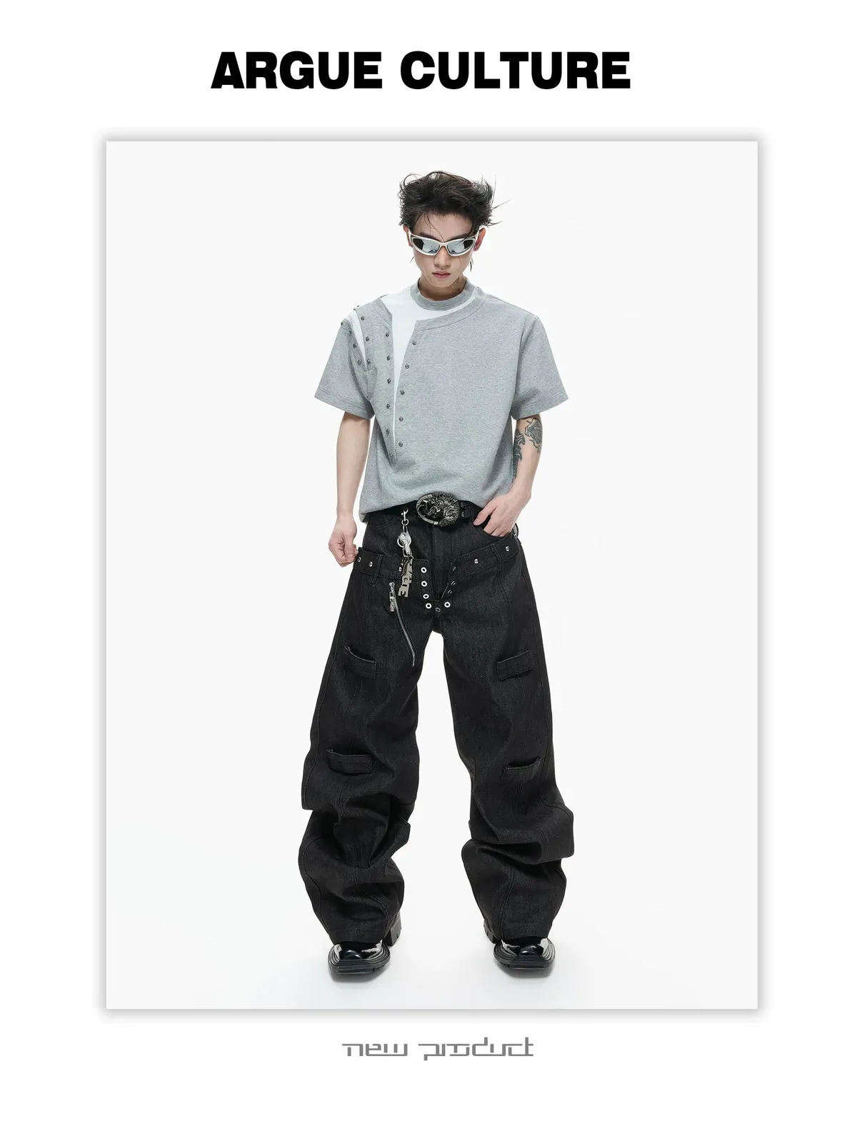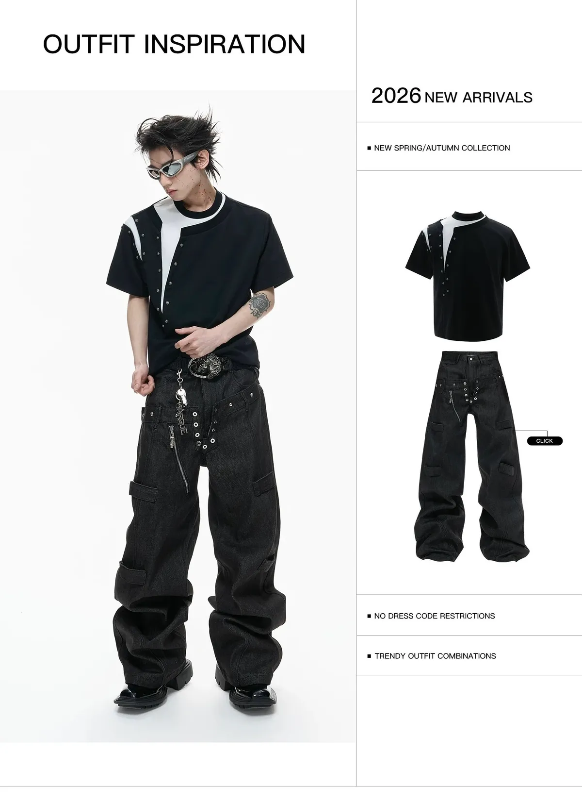 ARGUE 分割撞色 卯釘 短袖(黑/灰)