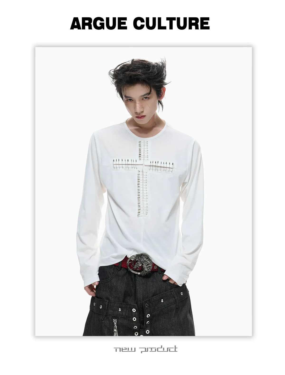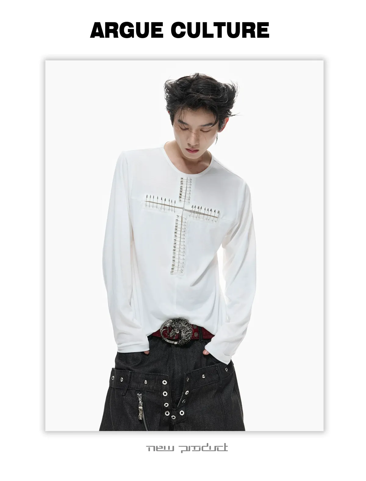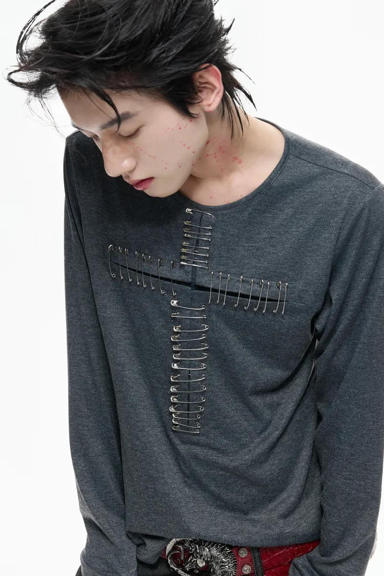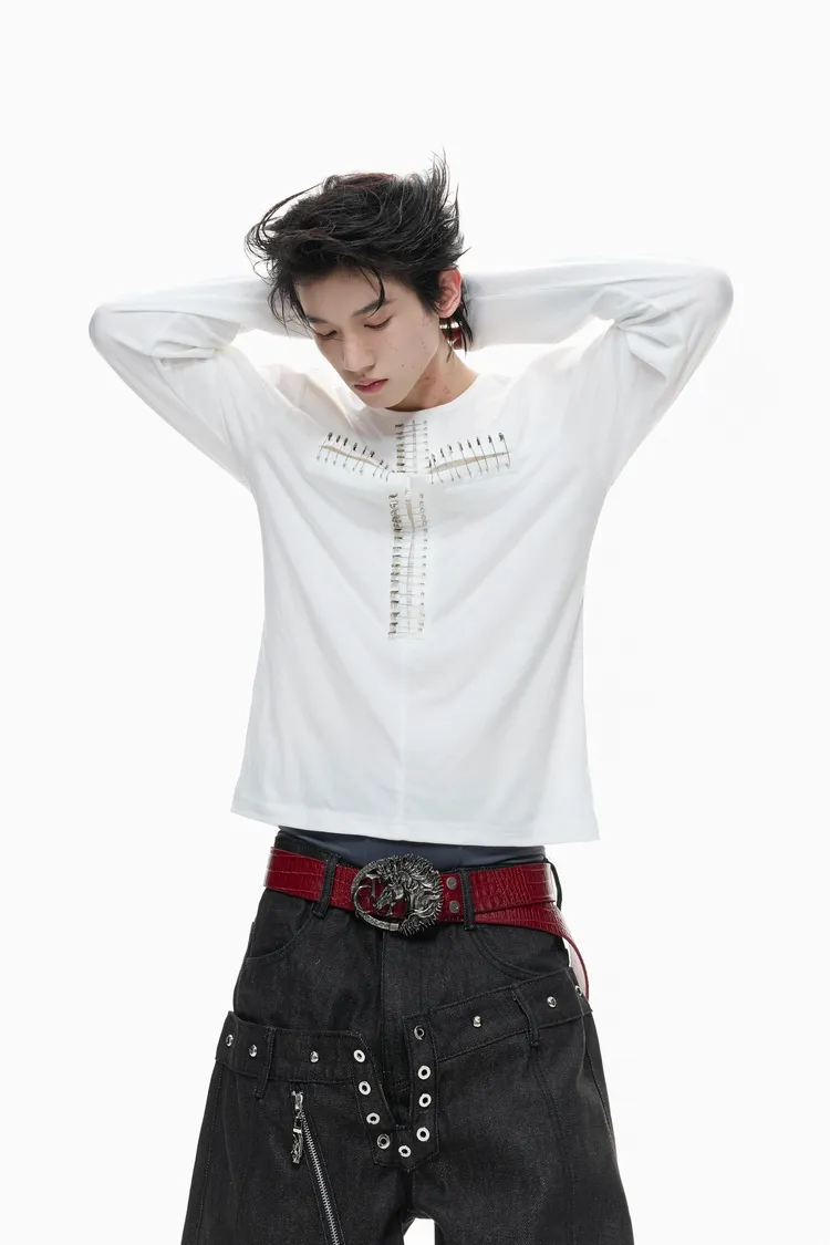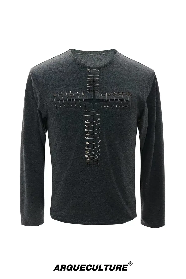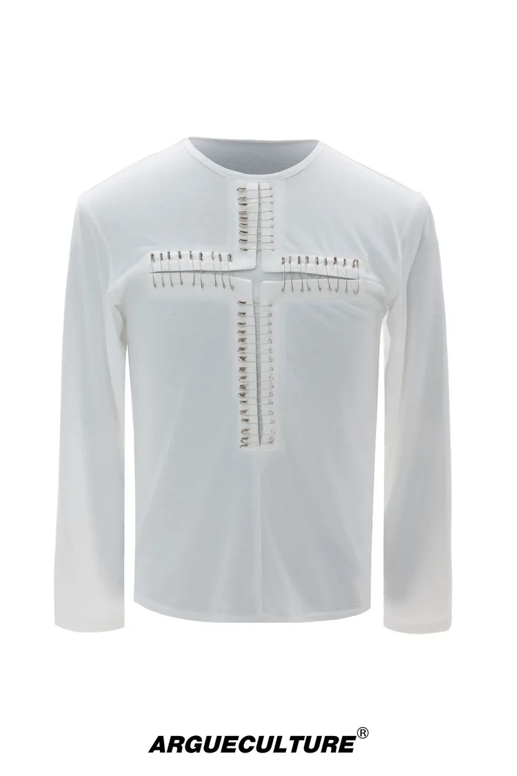 ARGUE 別針十字架 薄長袖(黑/白)