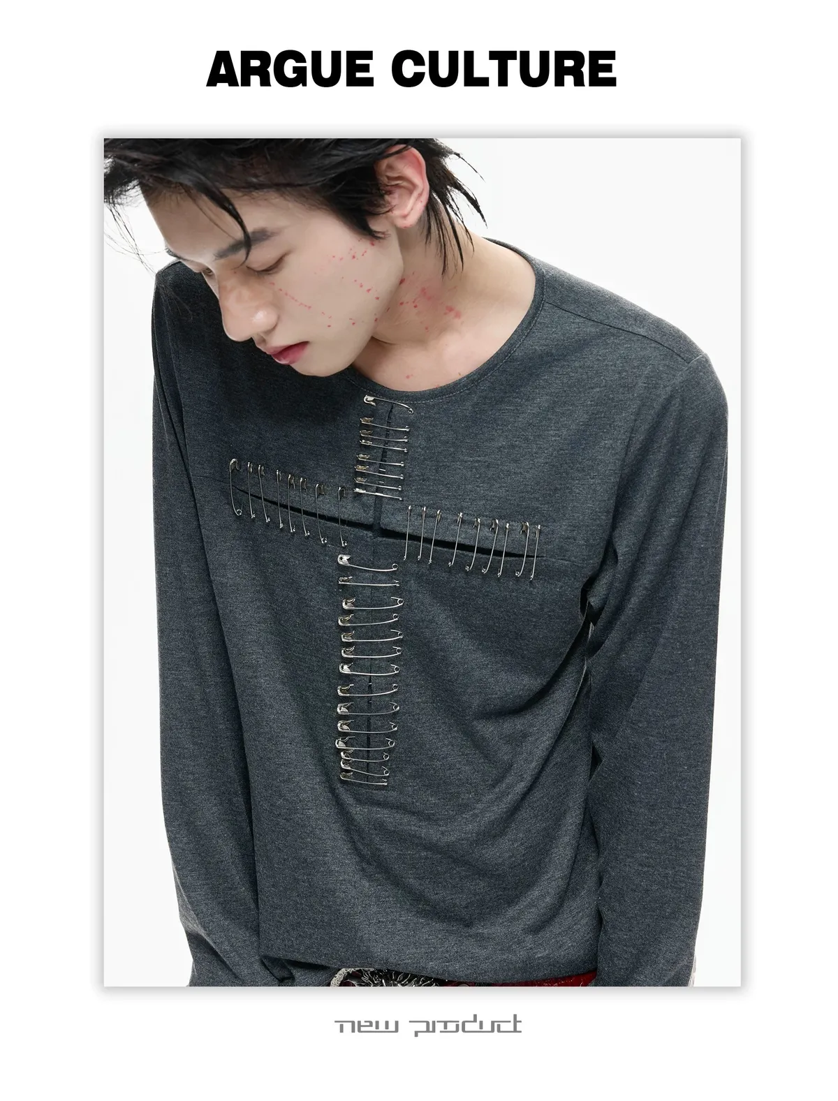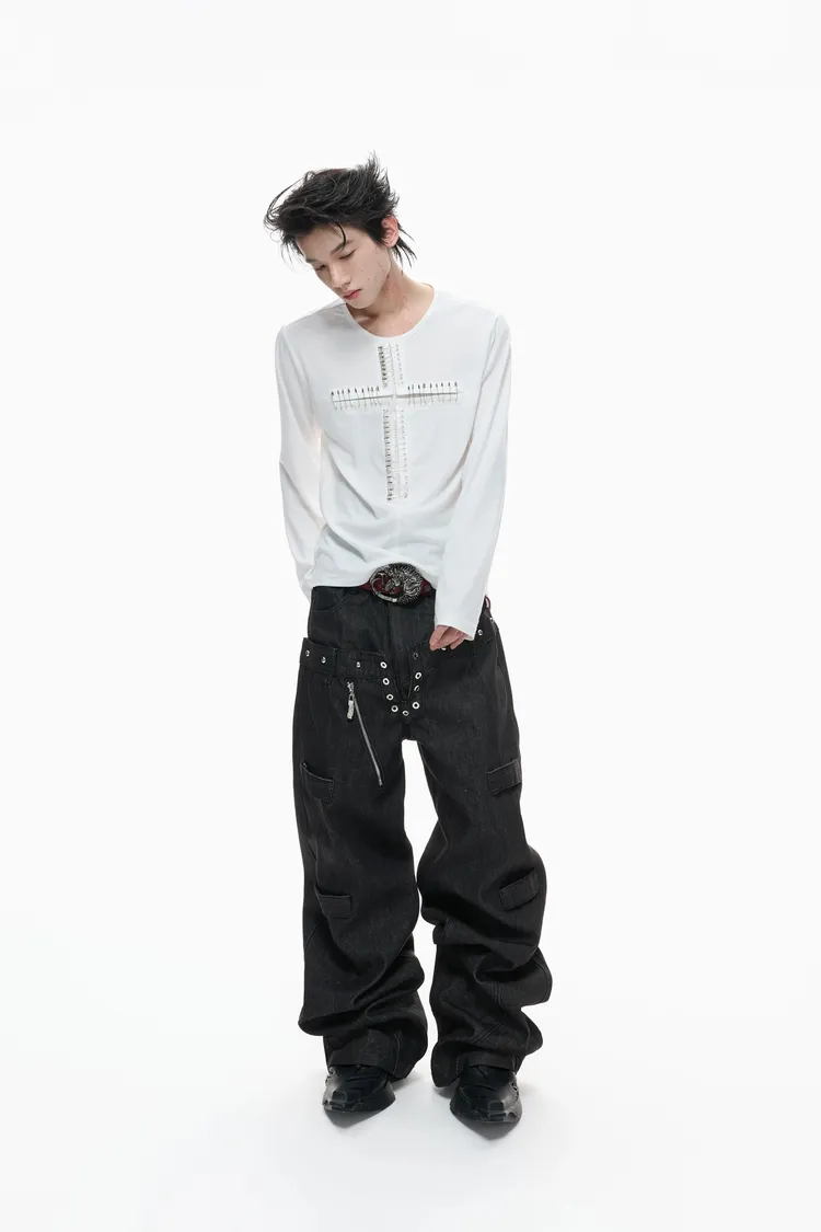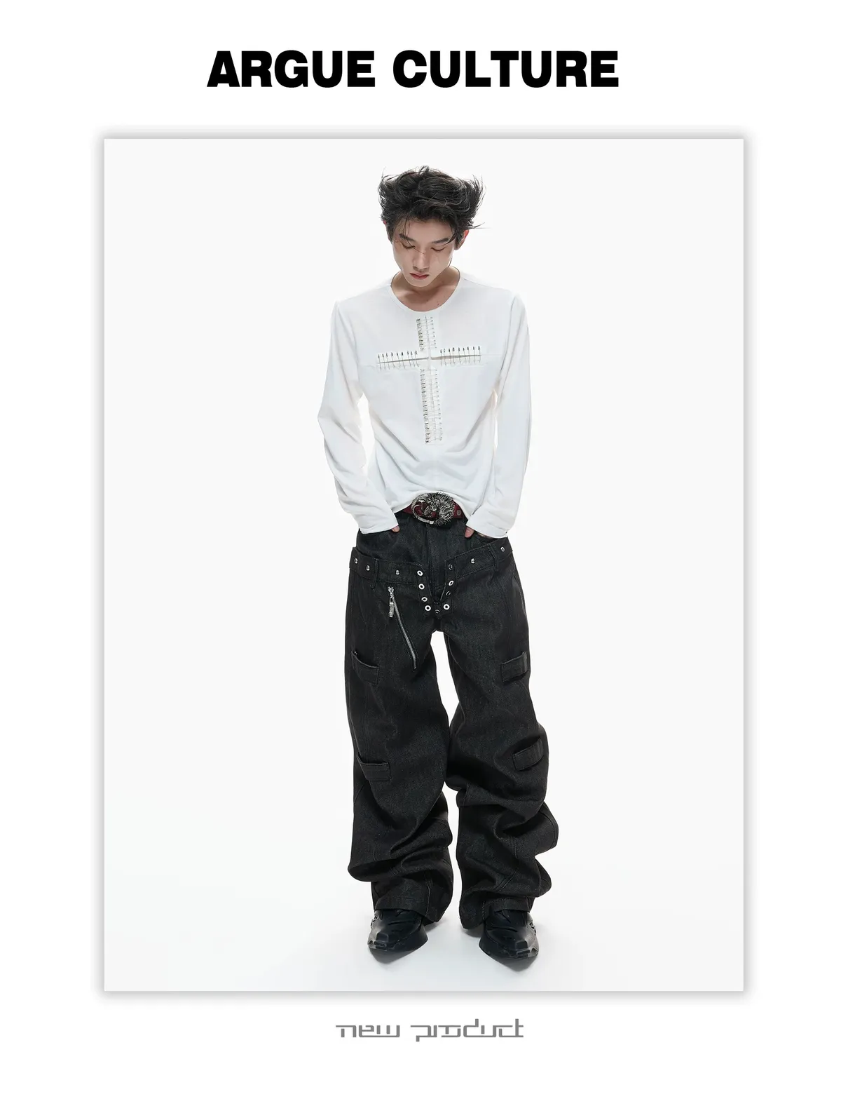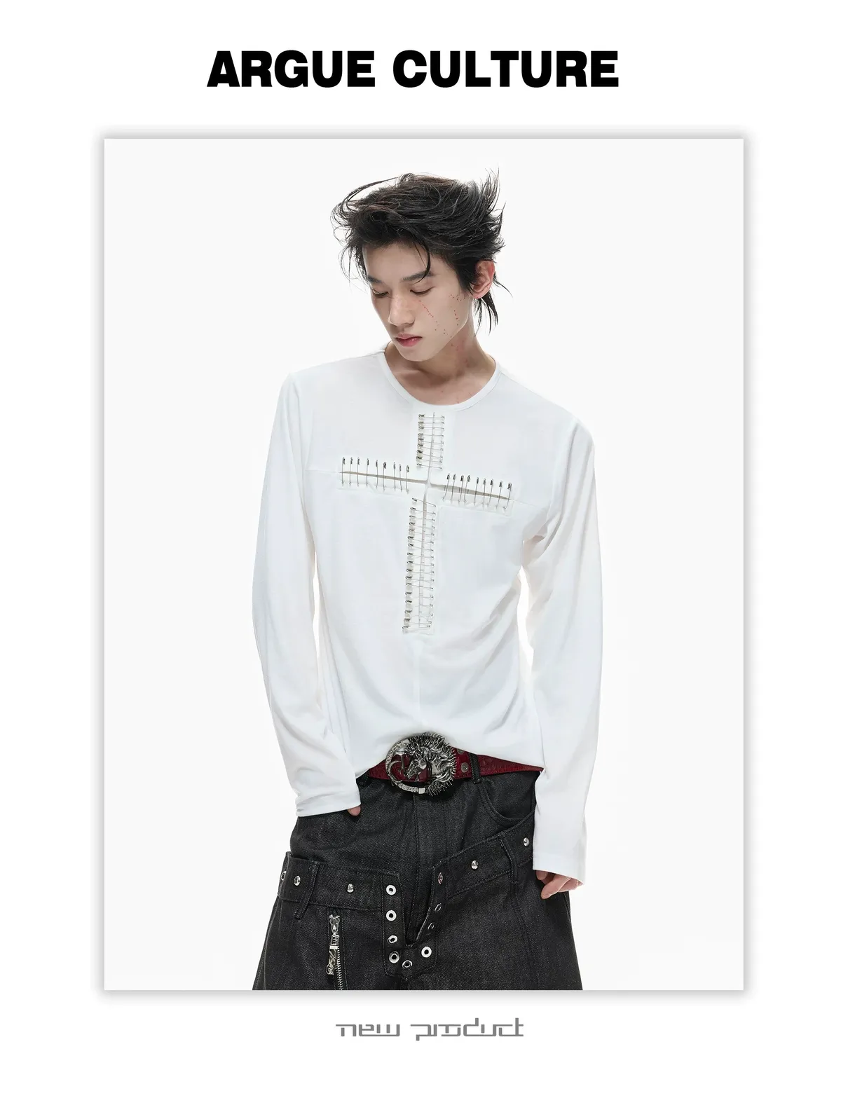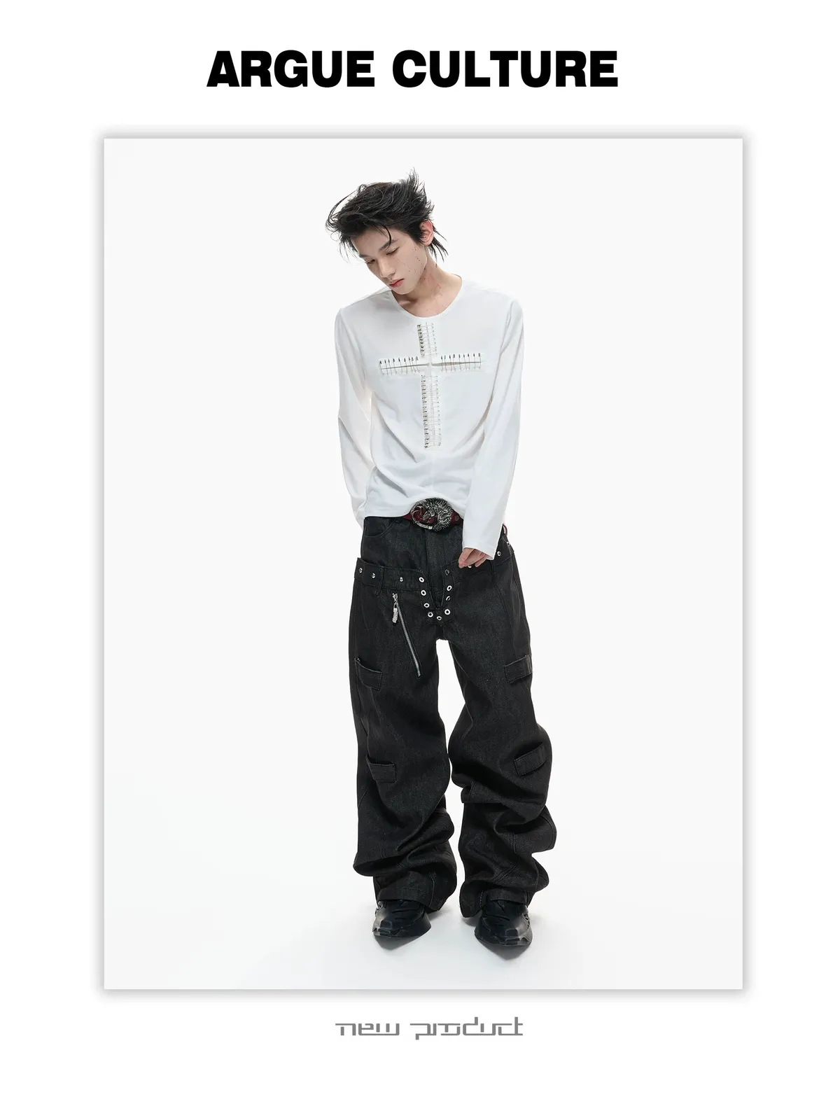 ARGUE 別針十字架 薄長袖(黑/白)