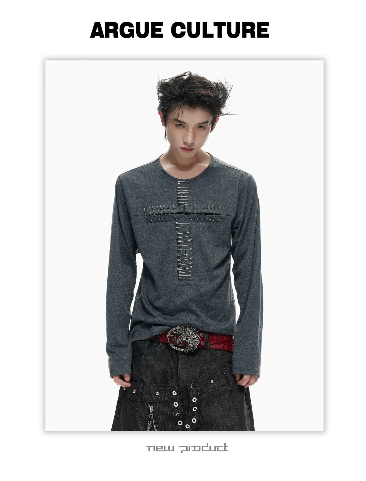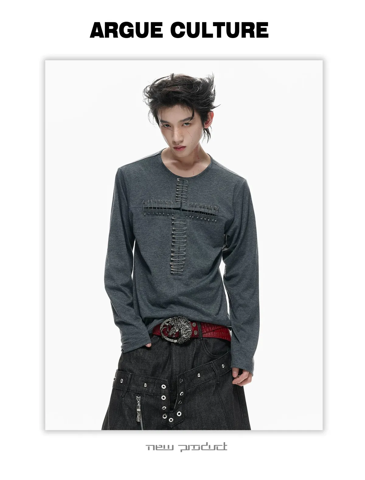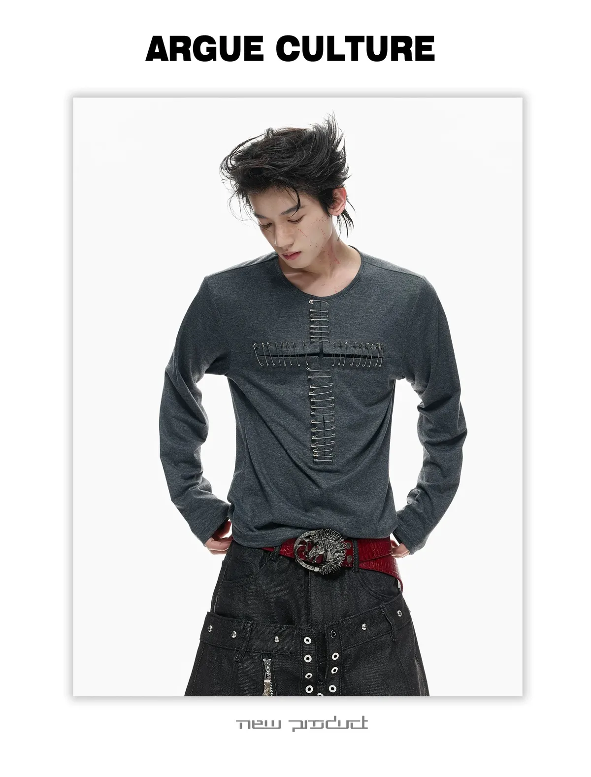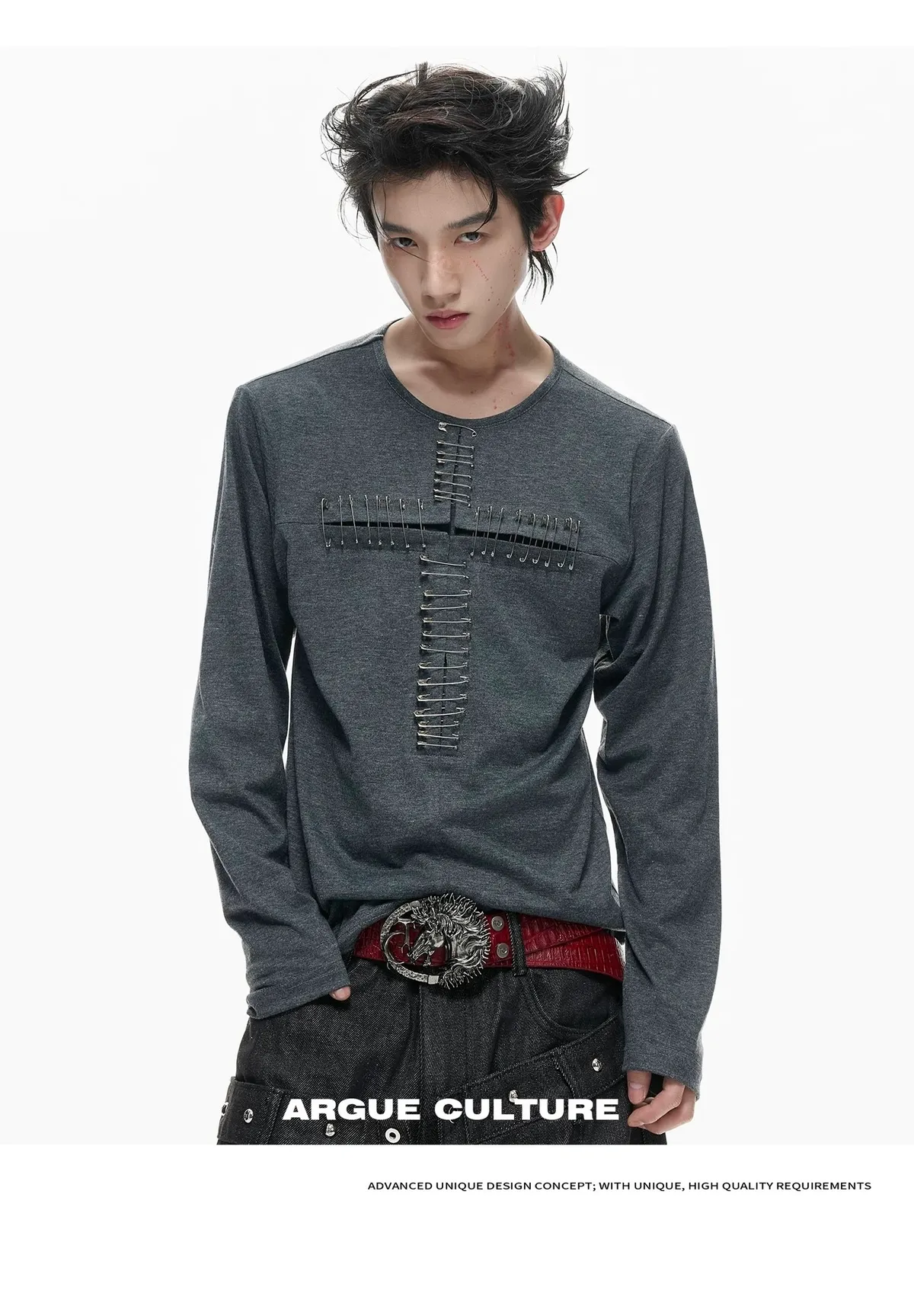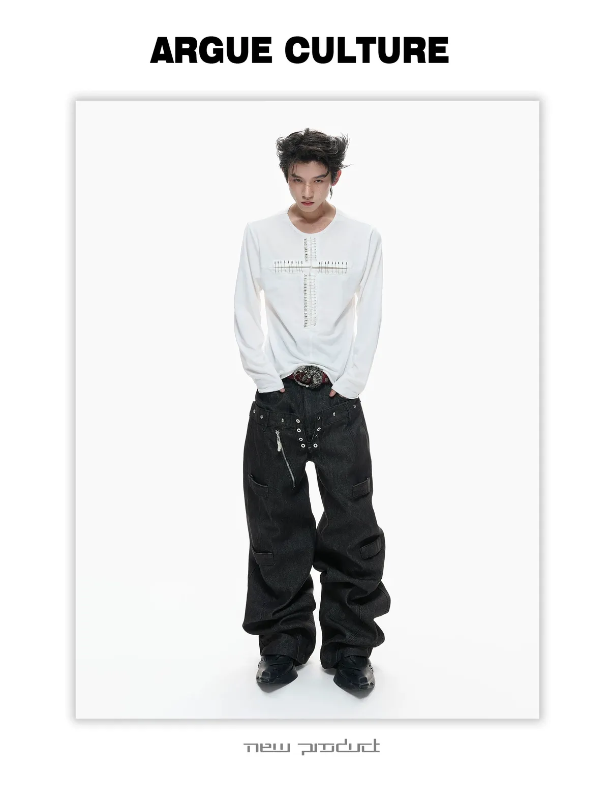 ARGUE 別針十字架 薄長袖(黑/白)