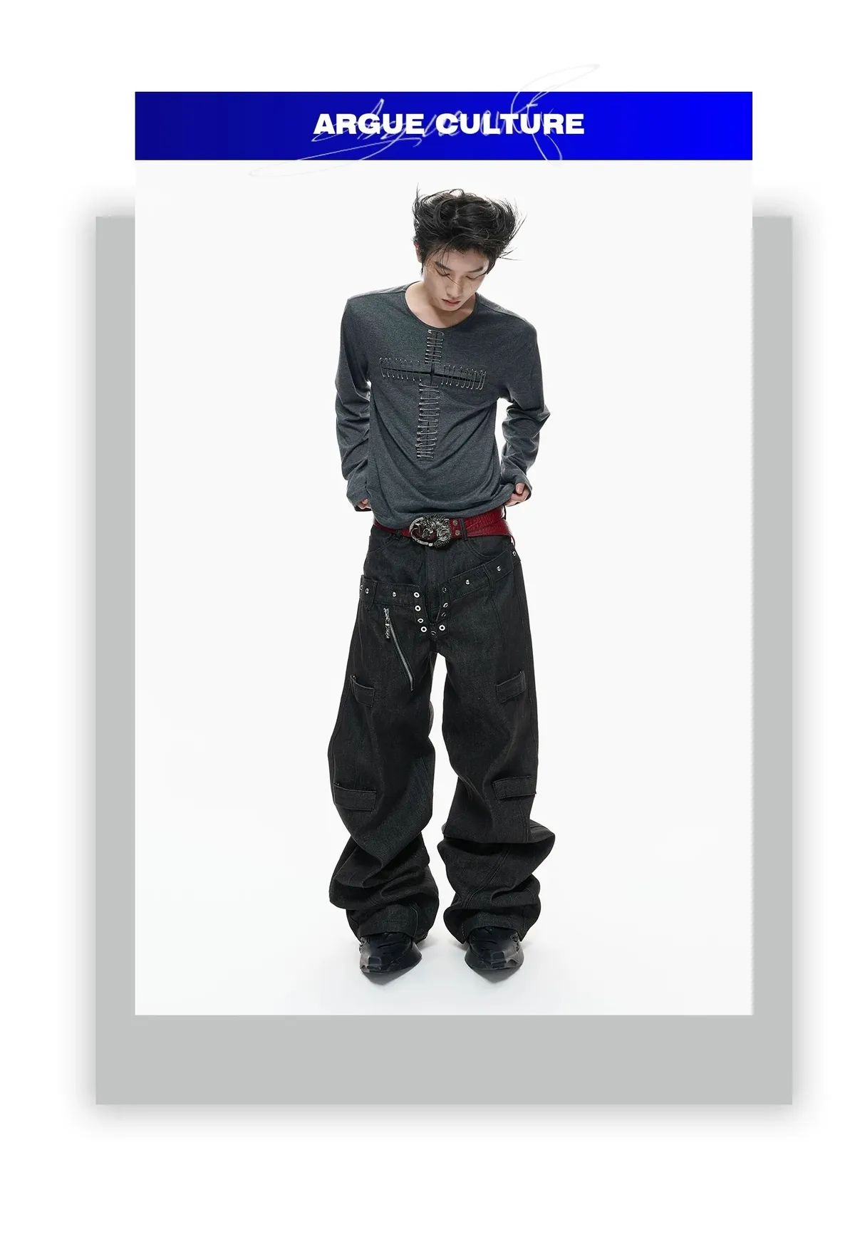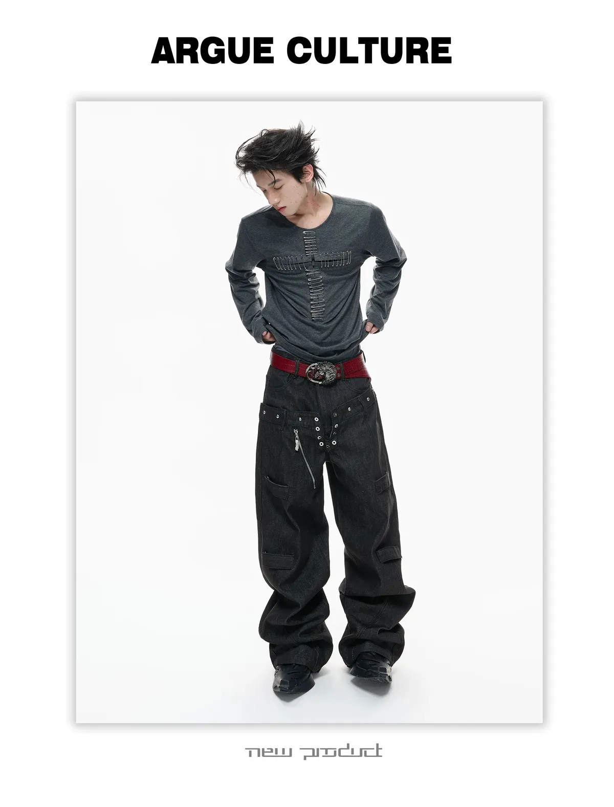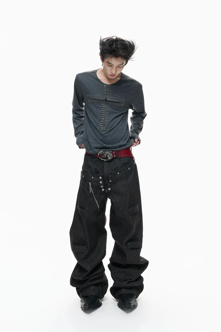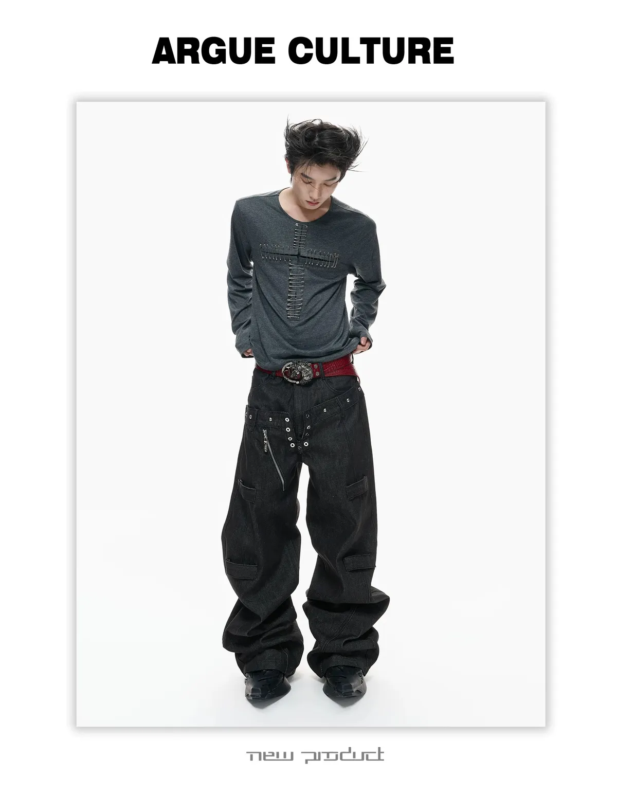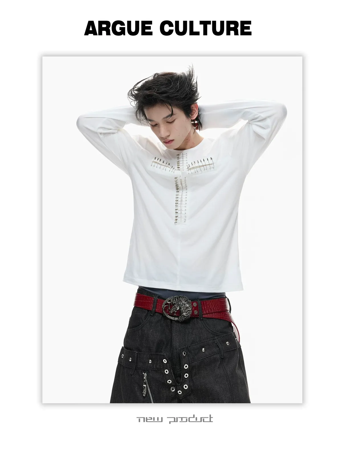ARGUE 別針十字架 薄長袖(黑/白)