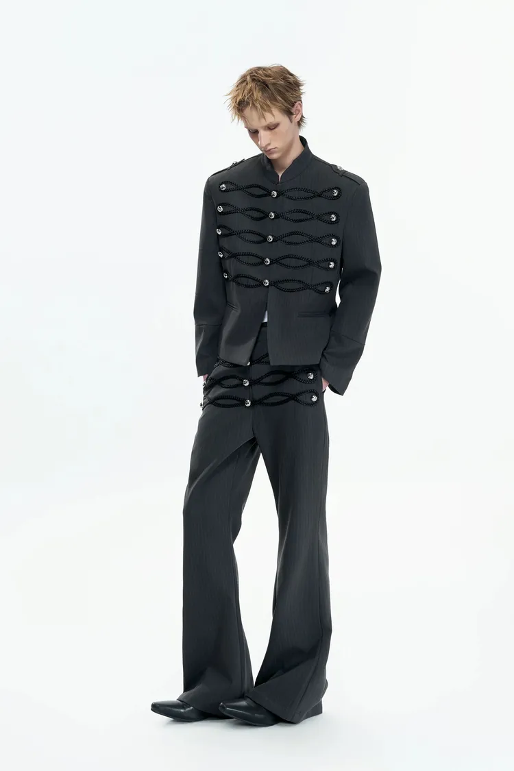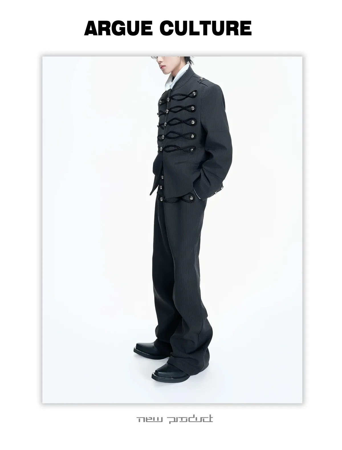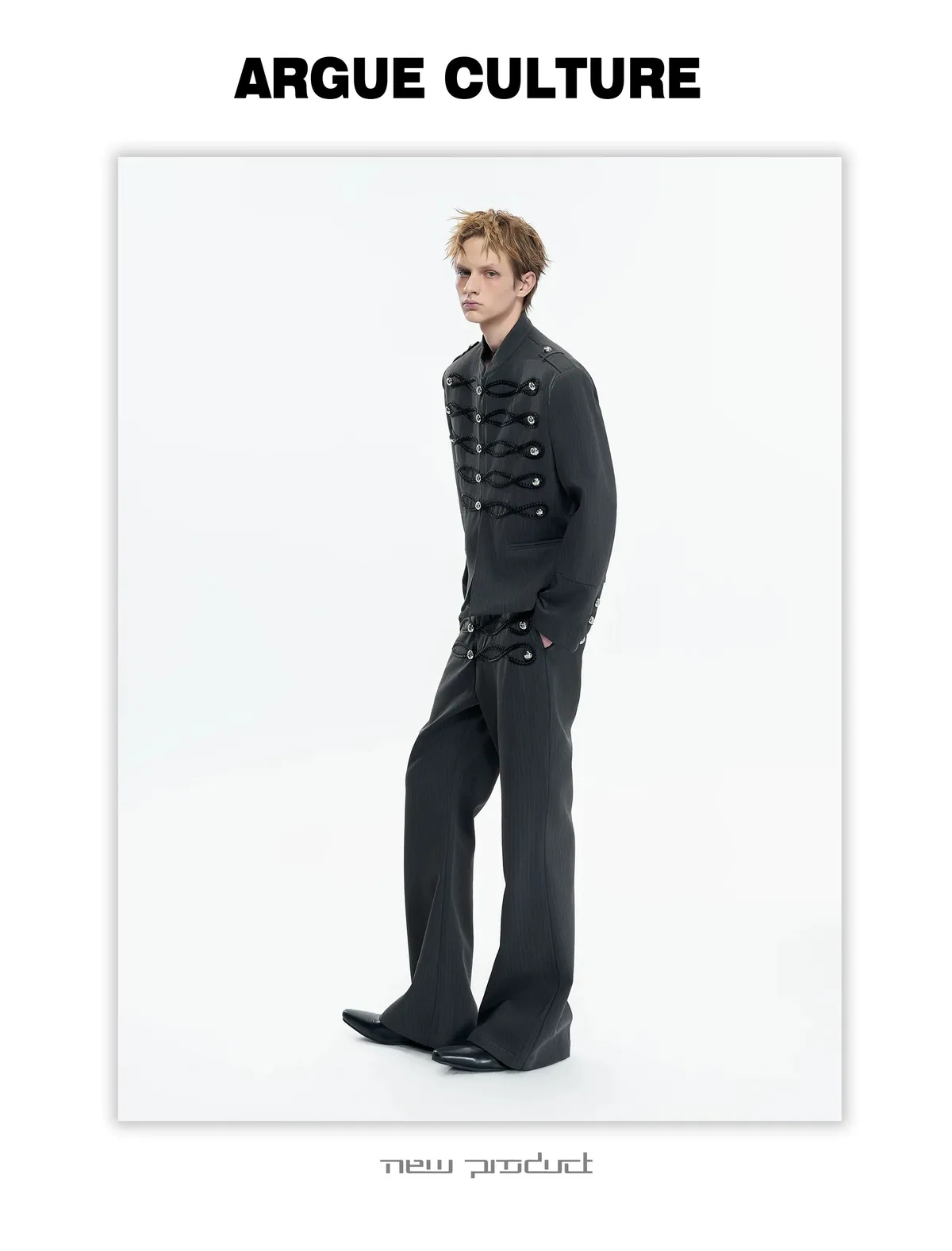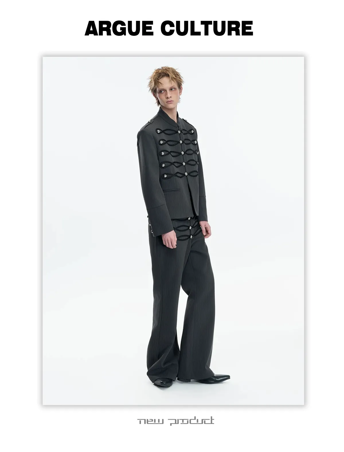 ARGUE 拿破崙編織皮 微喇叭 西裝褲(灰色)
