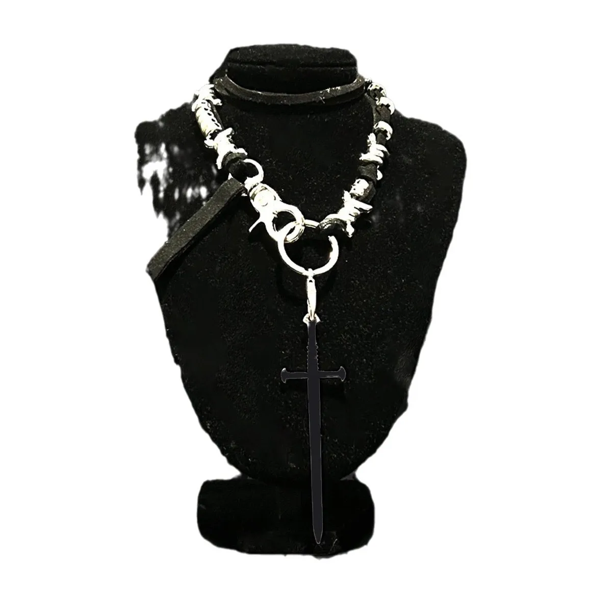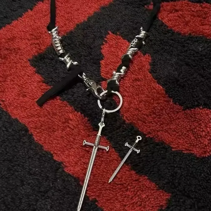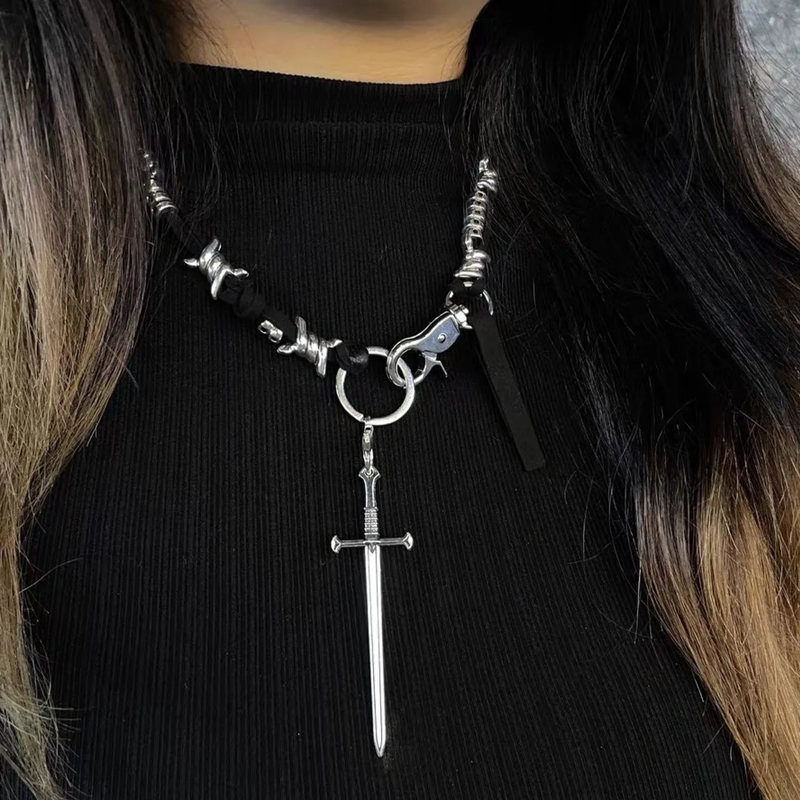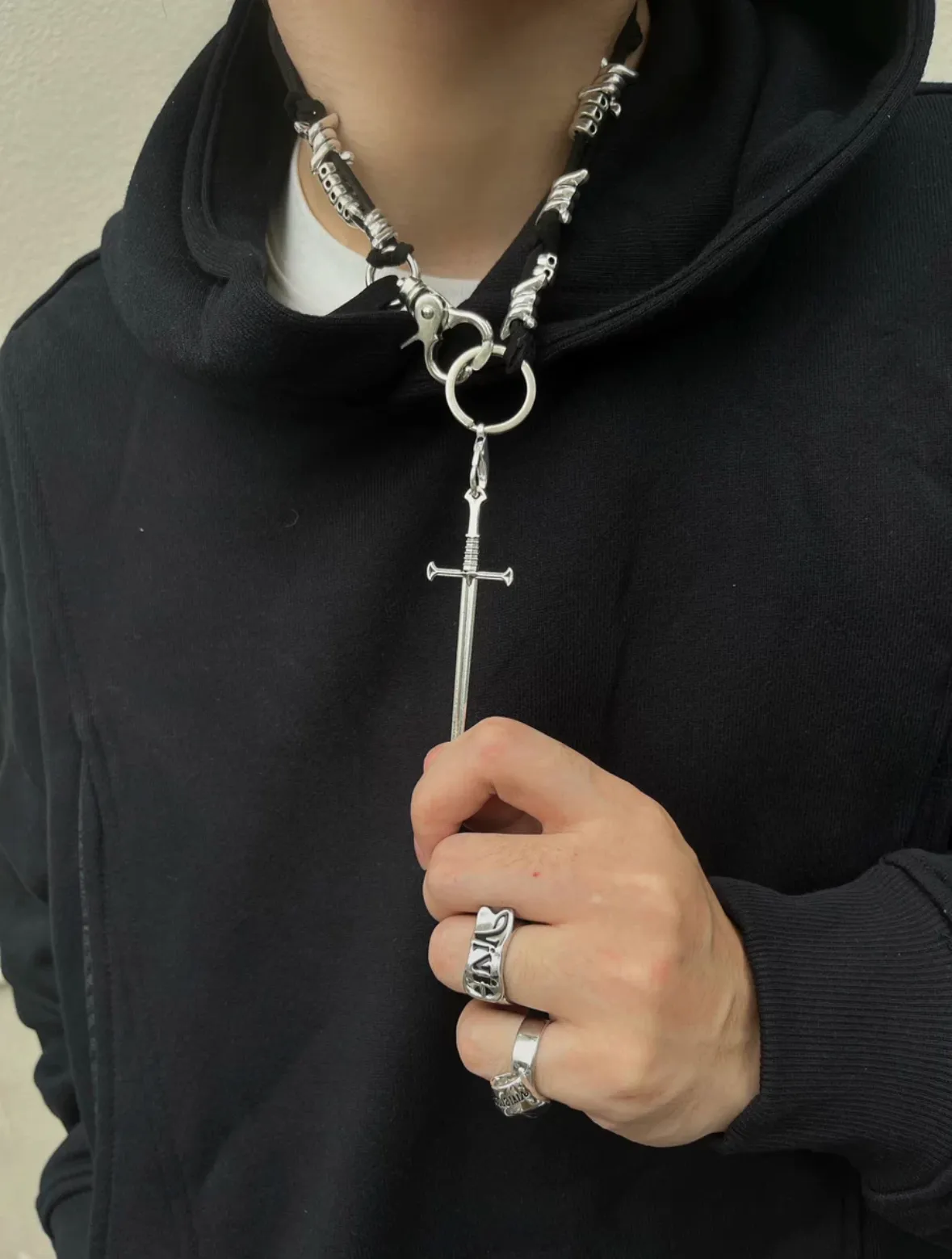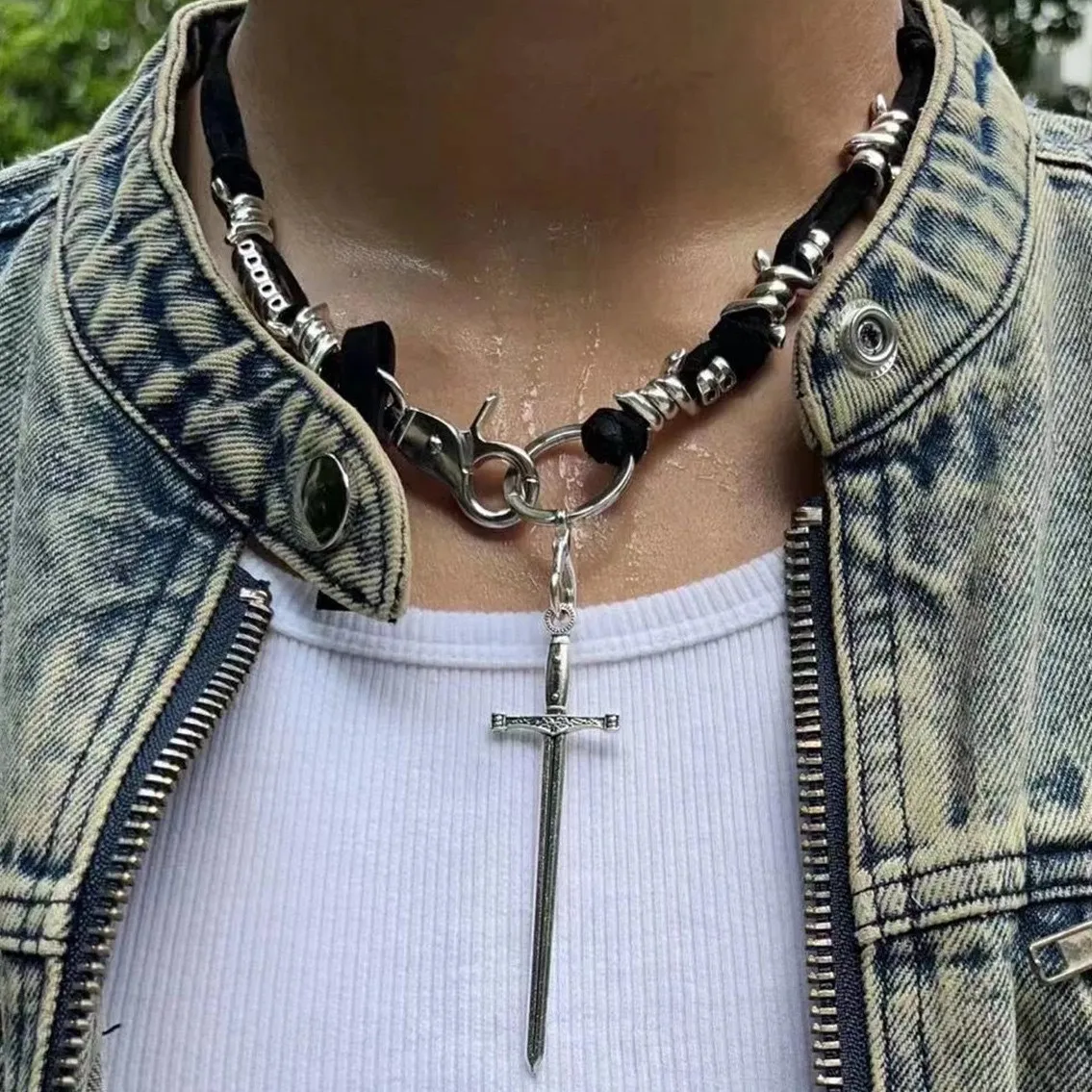鈦鋼 寶劍 牛皮繩編織 項鍊