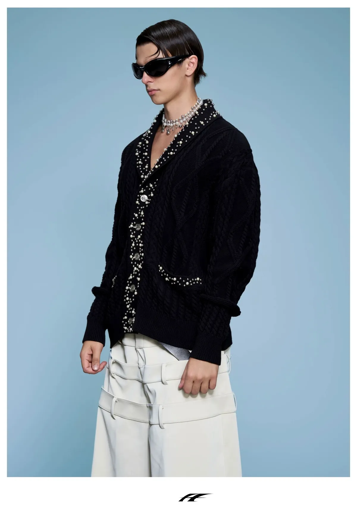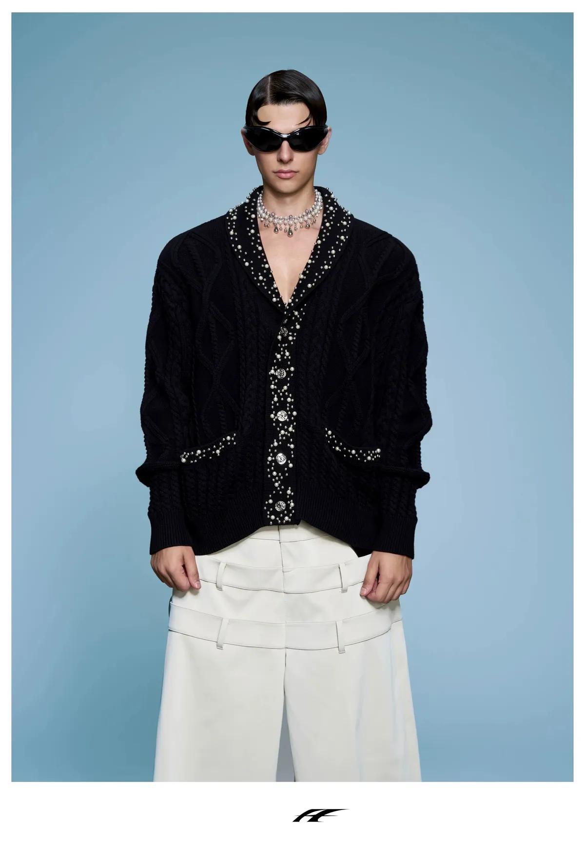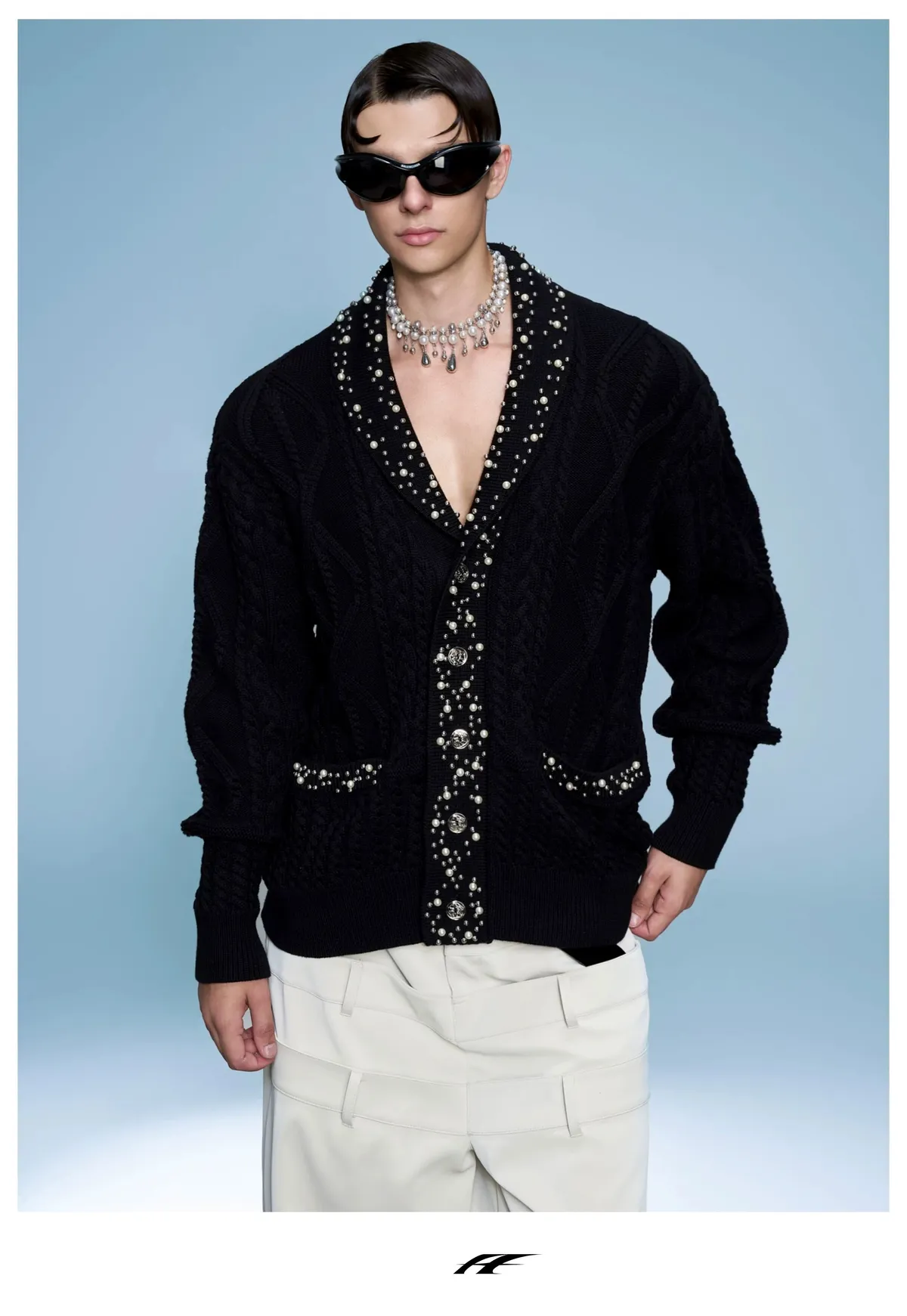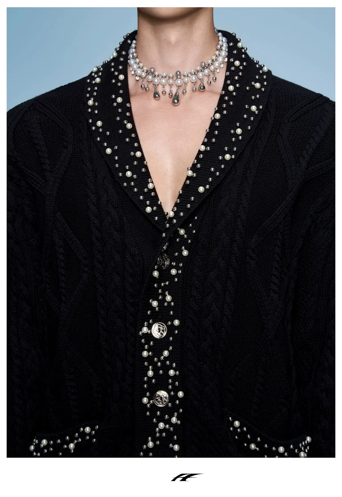 ARGUE 高訂 小香風 珍珠 針織V領 外套(黑/白)