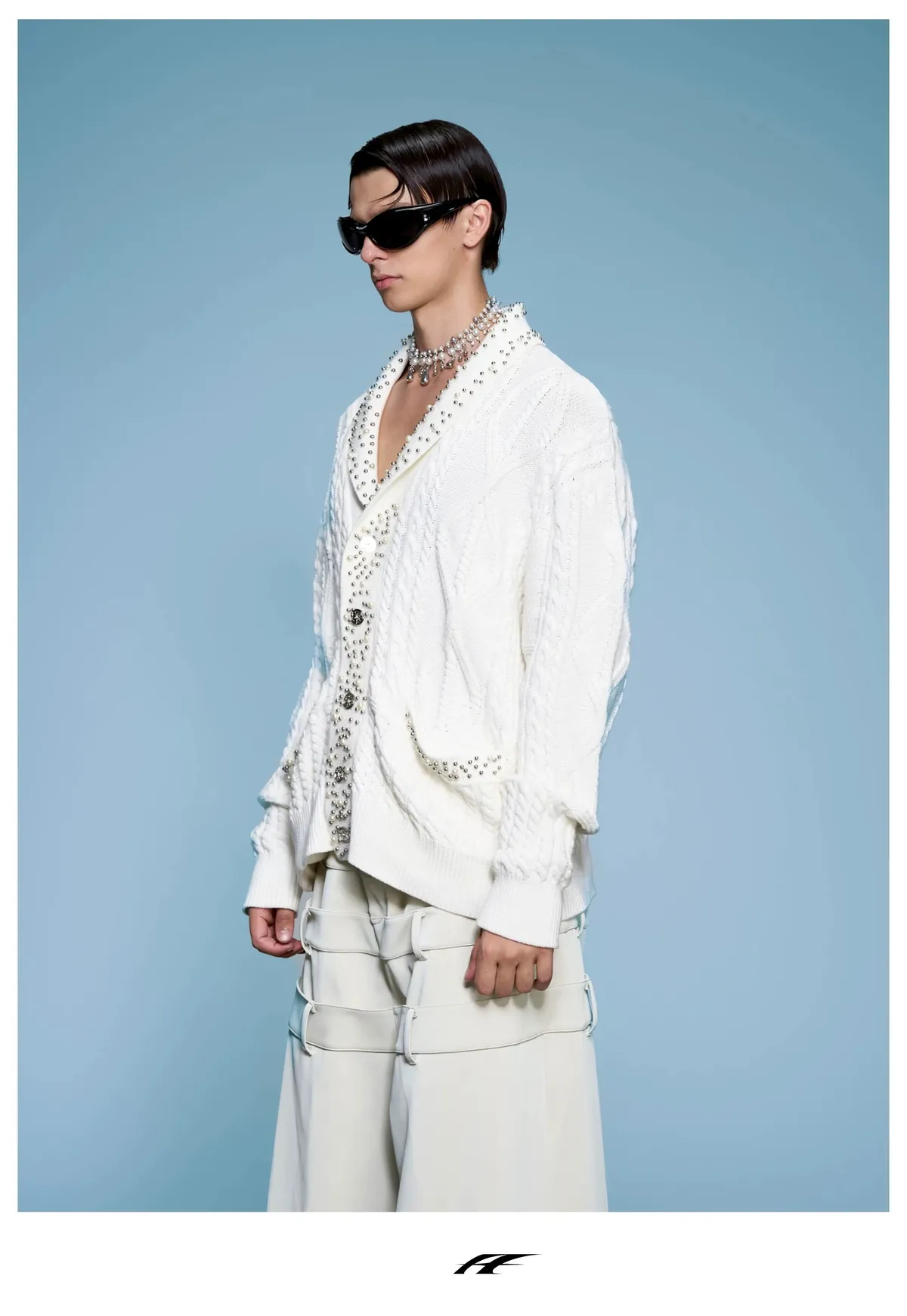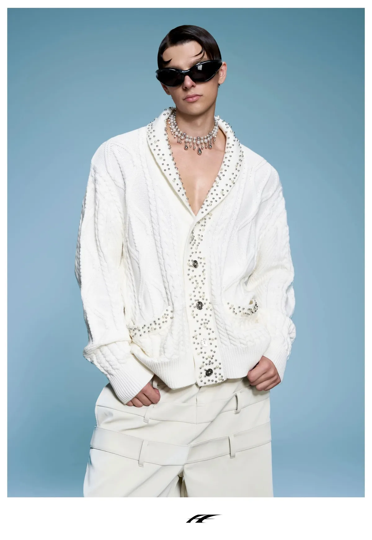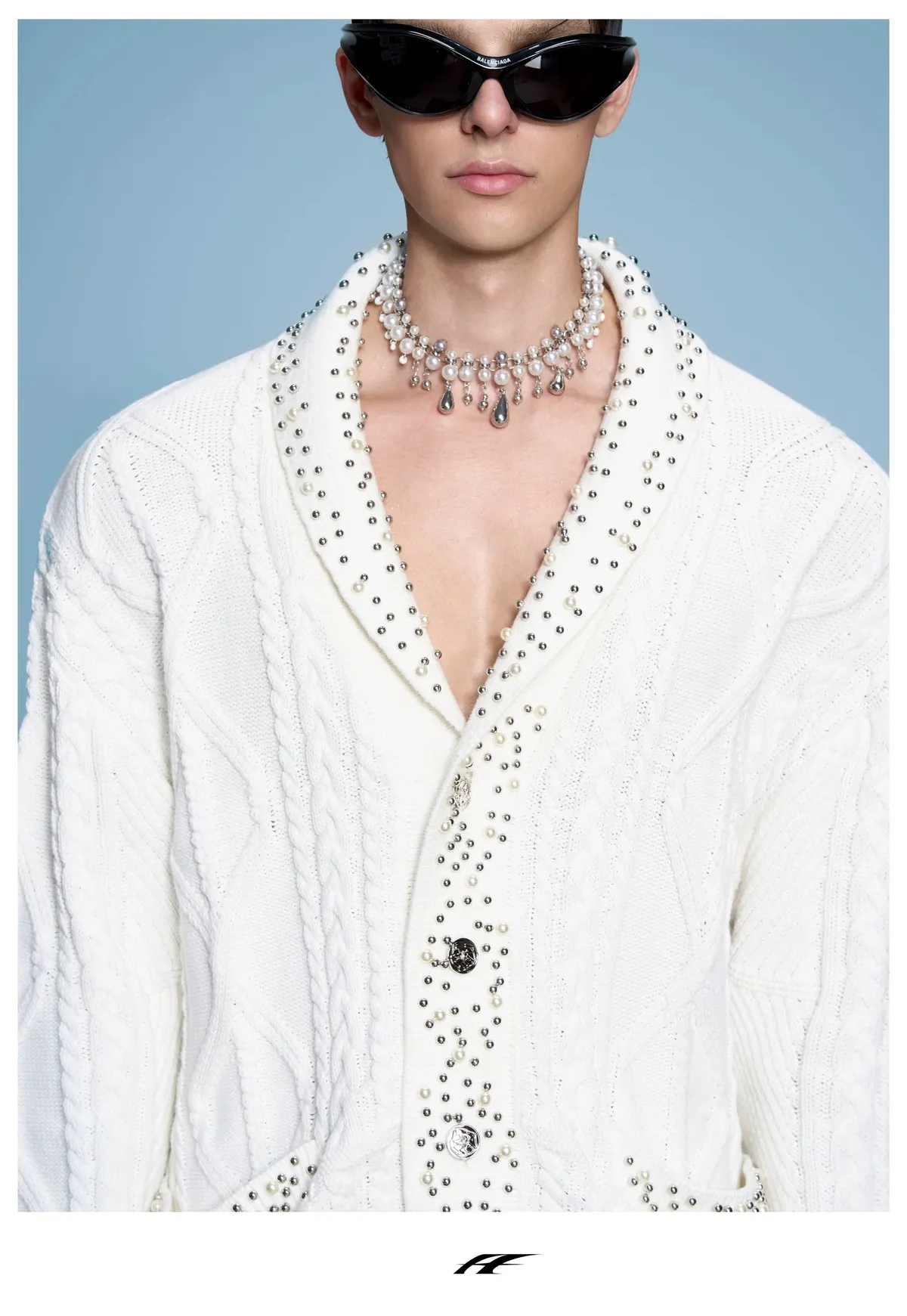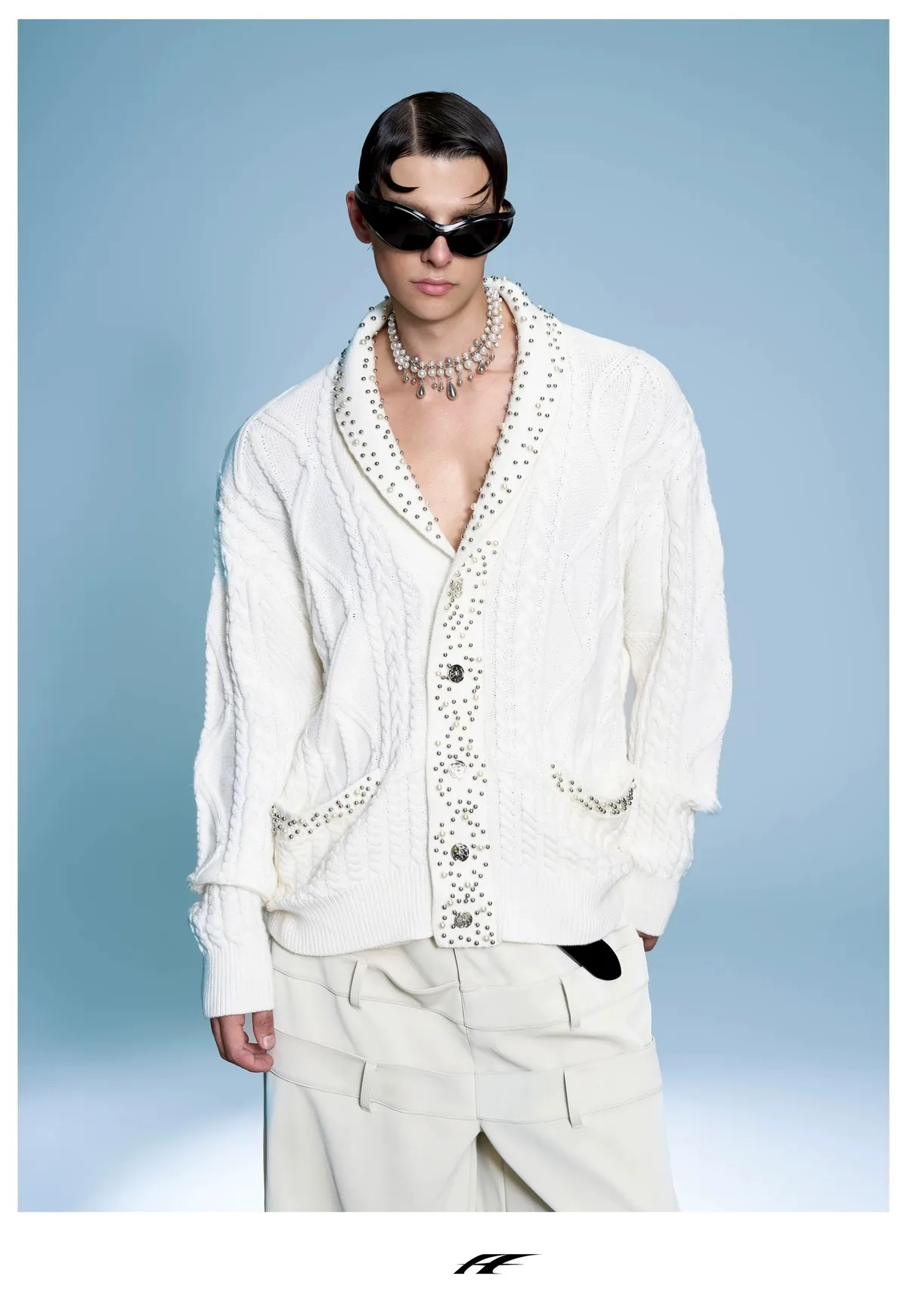 ARGUE 高訂 小香風 珍珠 針織V領 外套(黑/白)