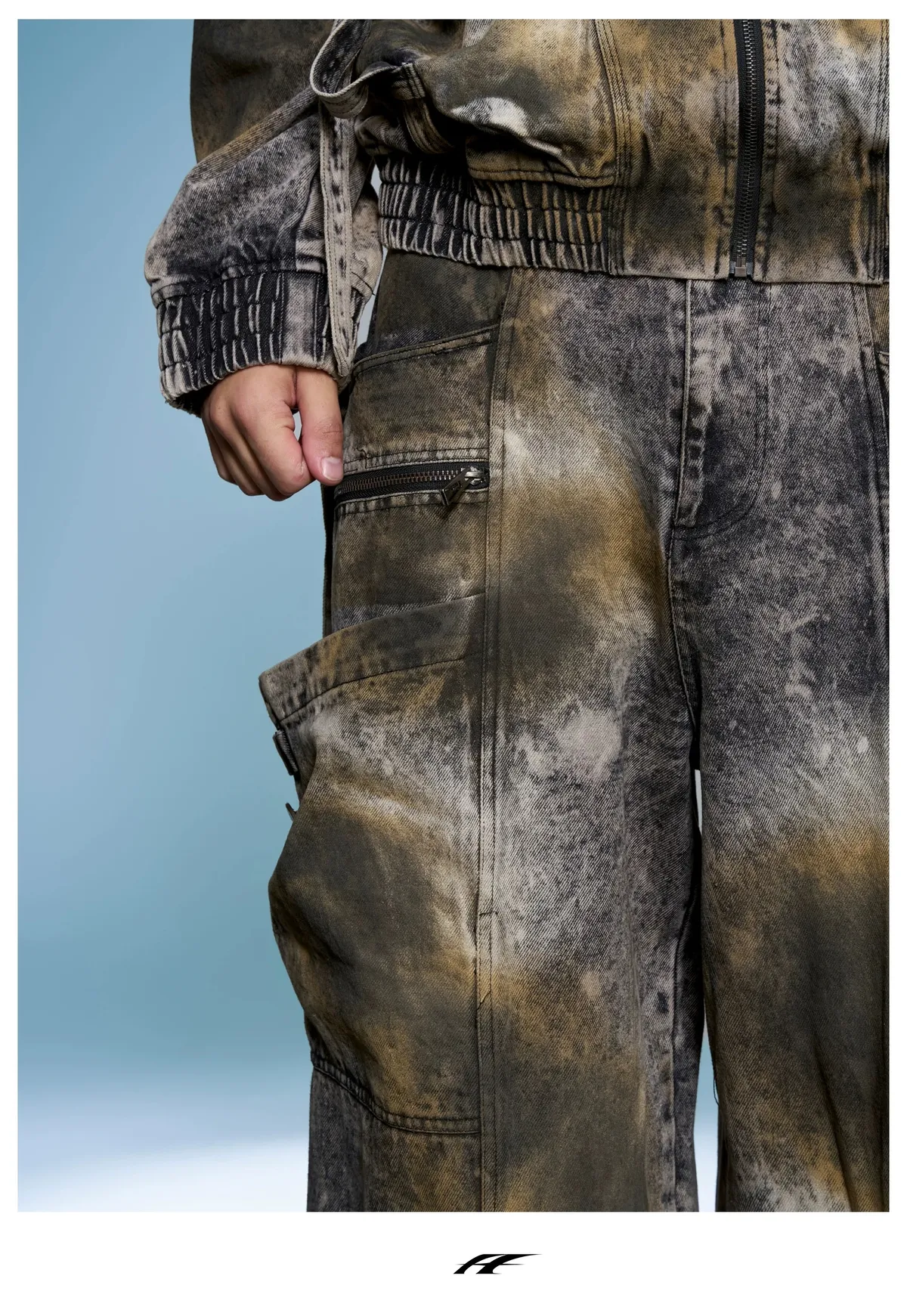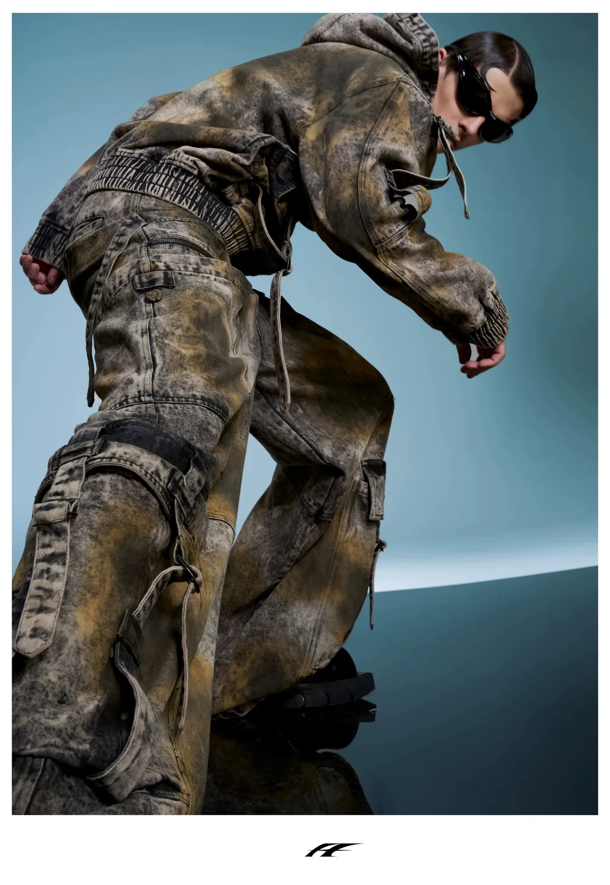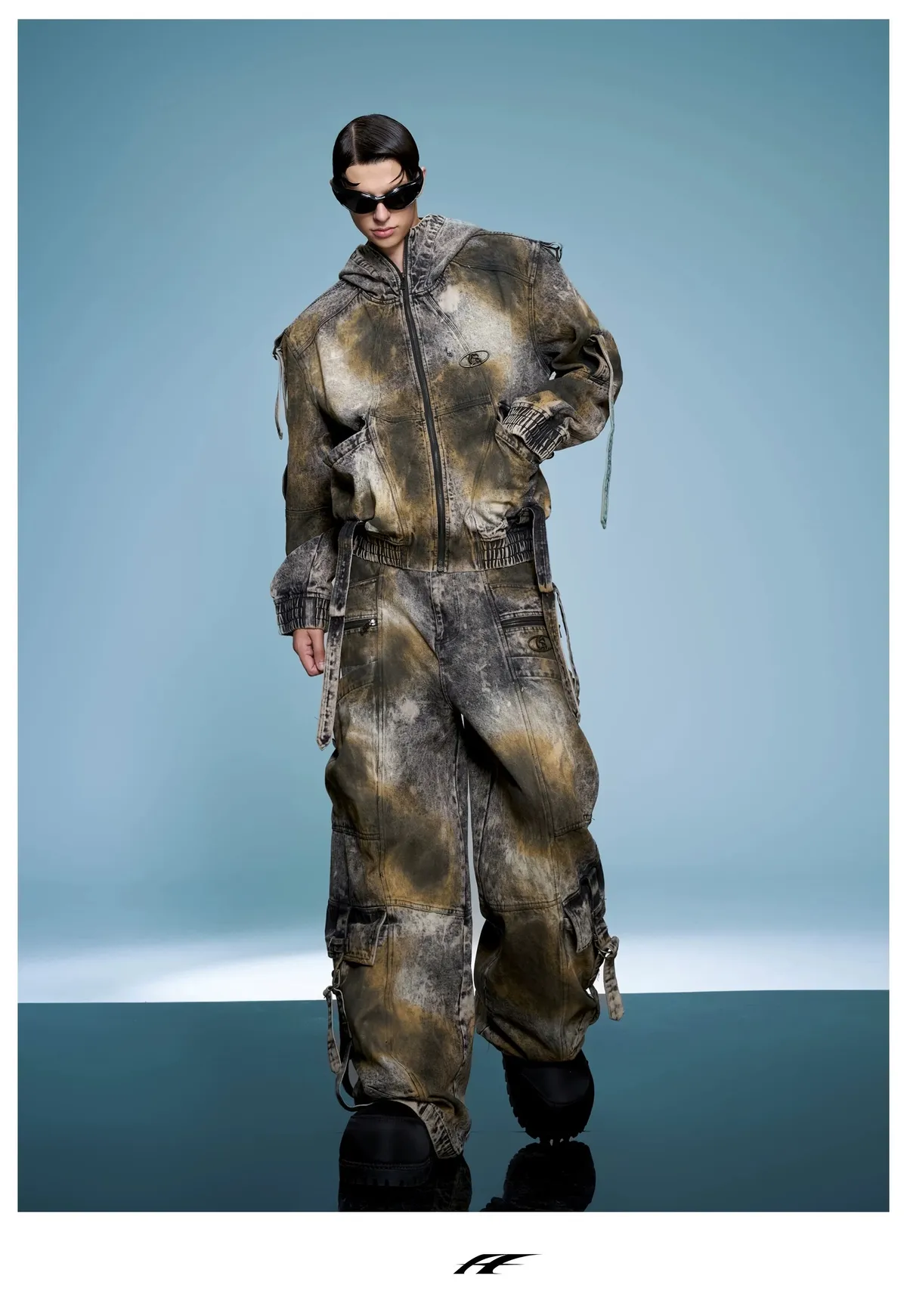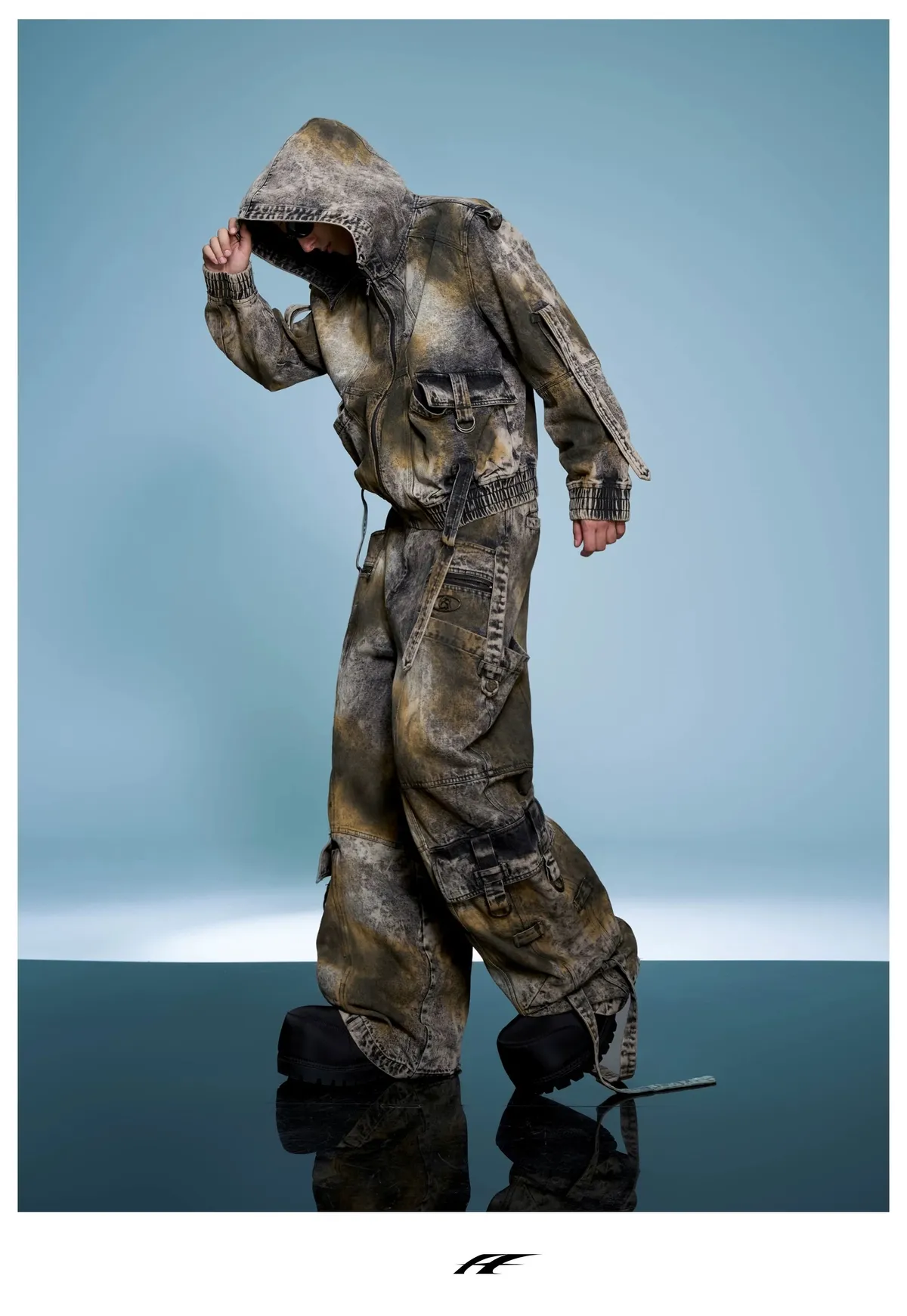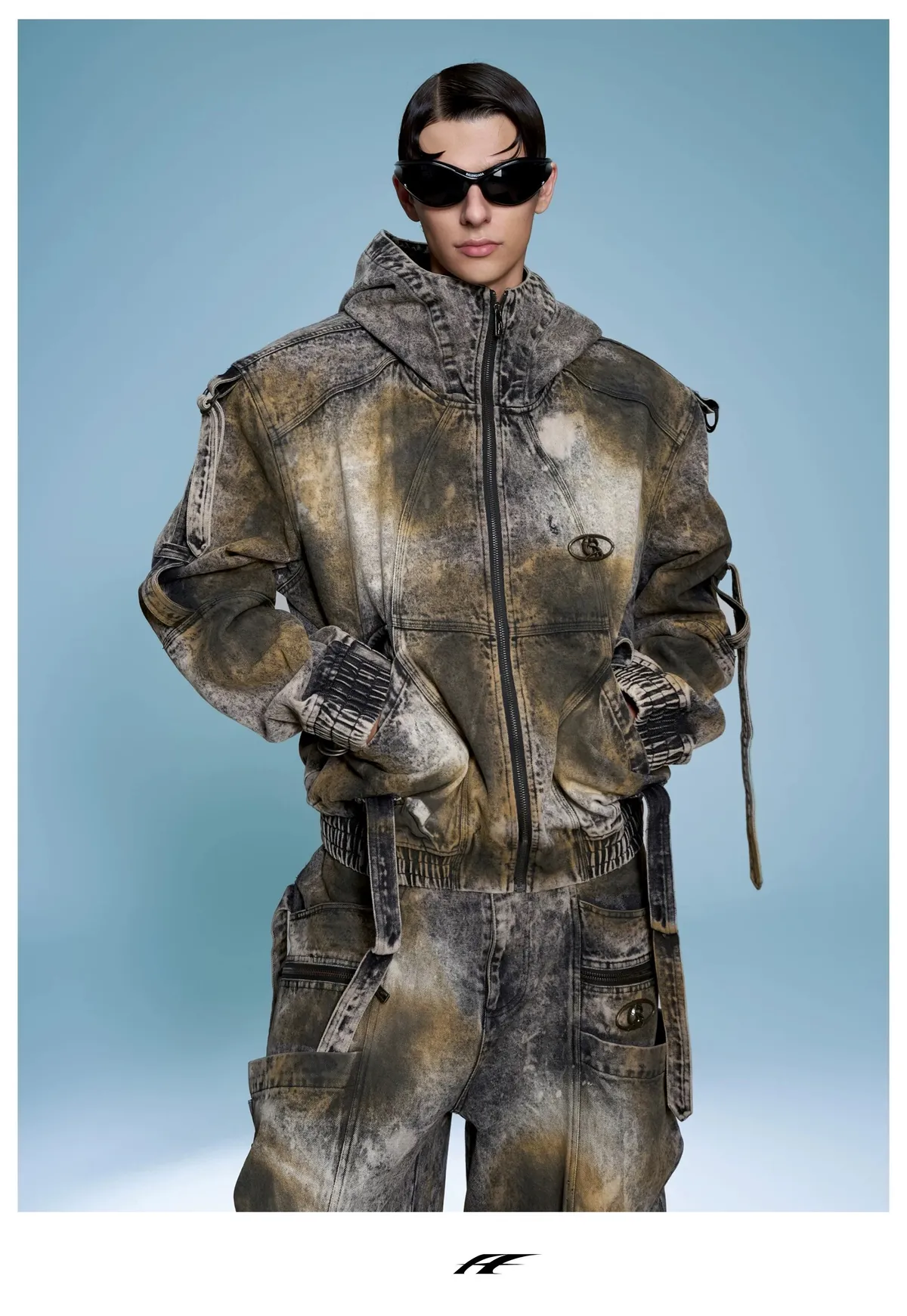 ARGUE 高訂 斑駁做舊 廢土 牛仔外套 牛仔褲 套裝(灰色)
