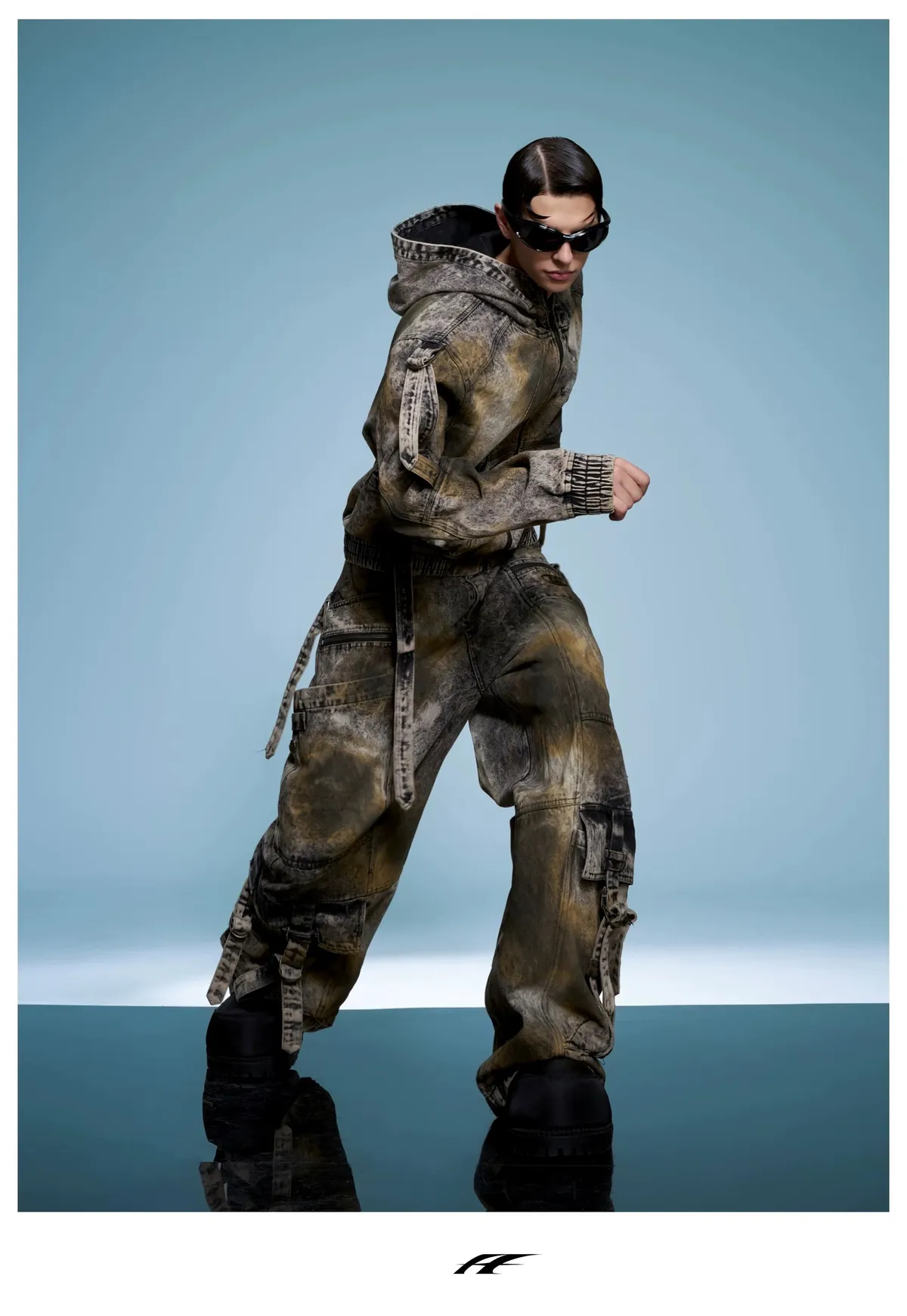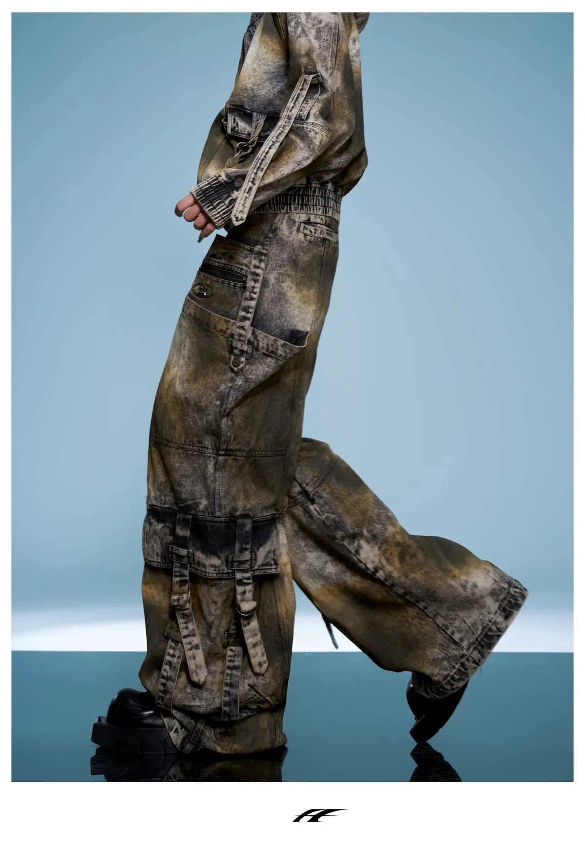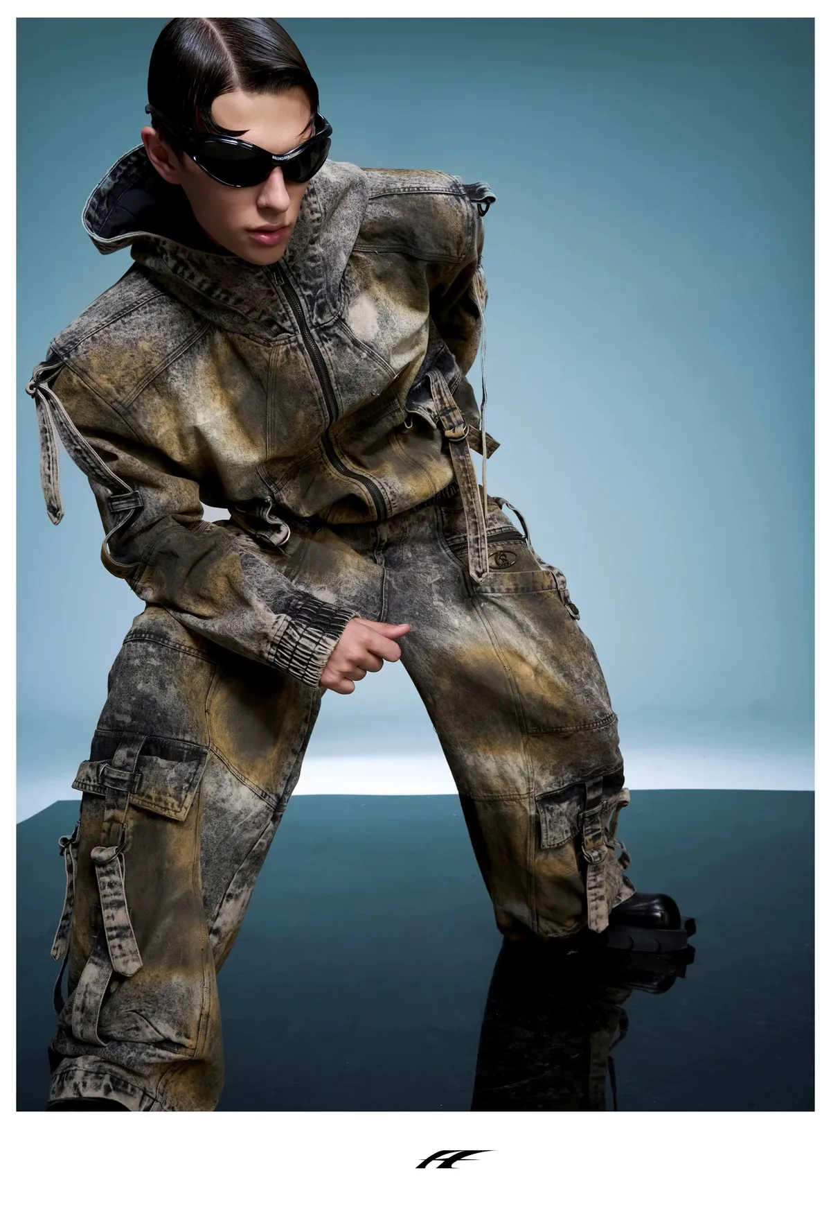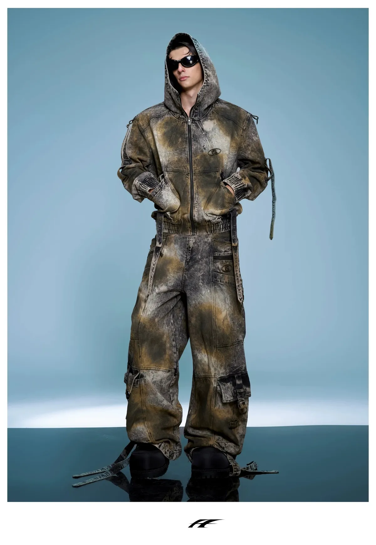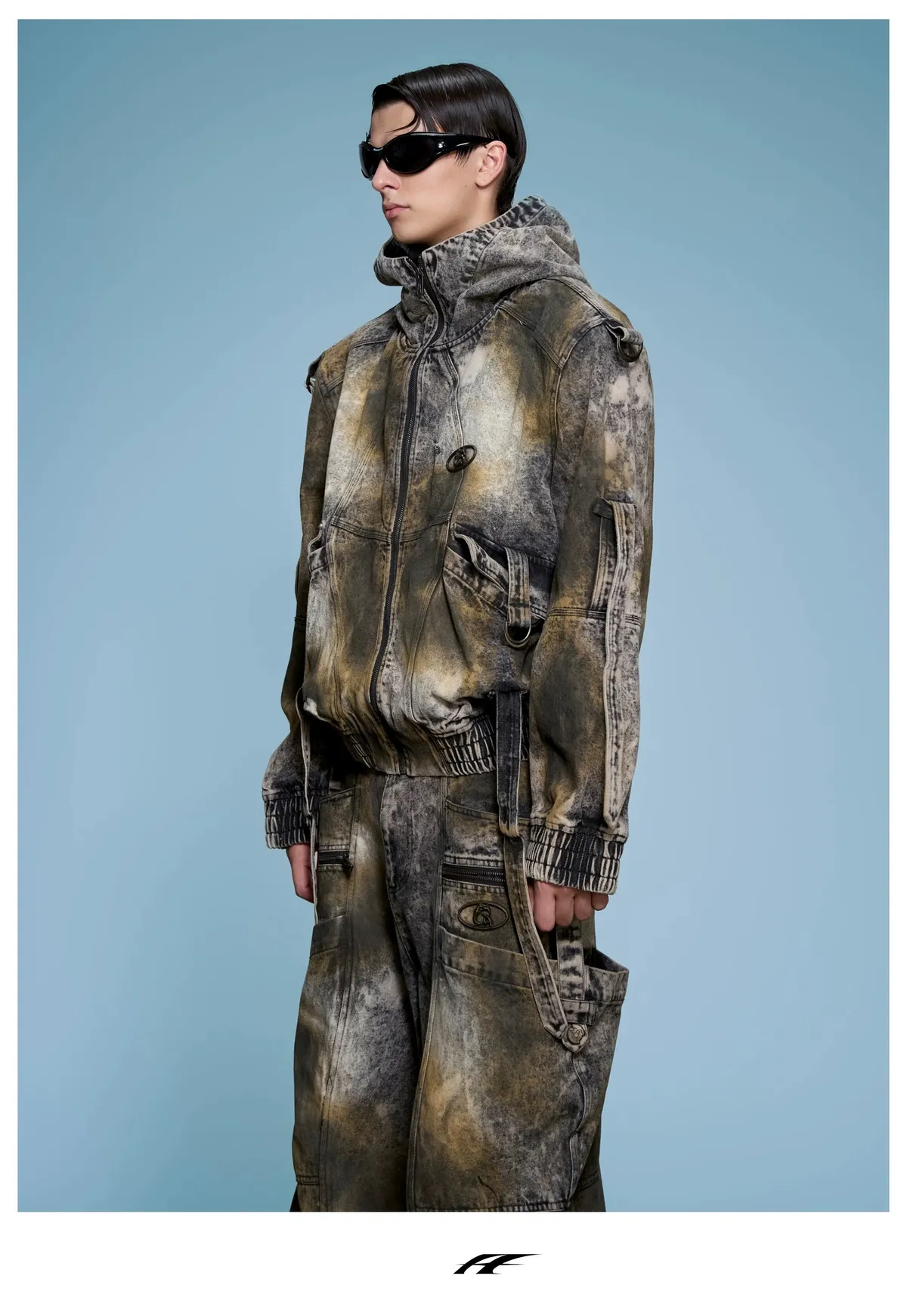 ARGUE 高訂 斑駁做舊 廢土 牛仔外套 牛仔褲 套裝(灰色)