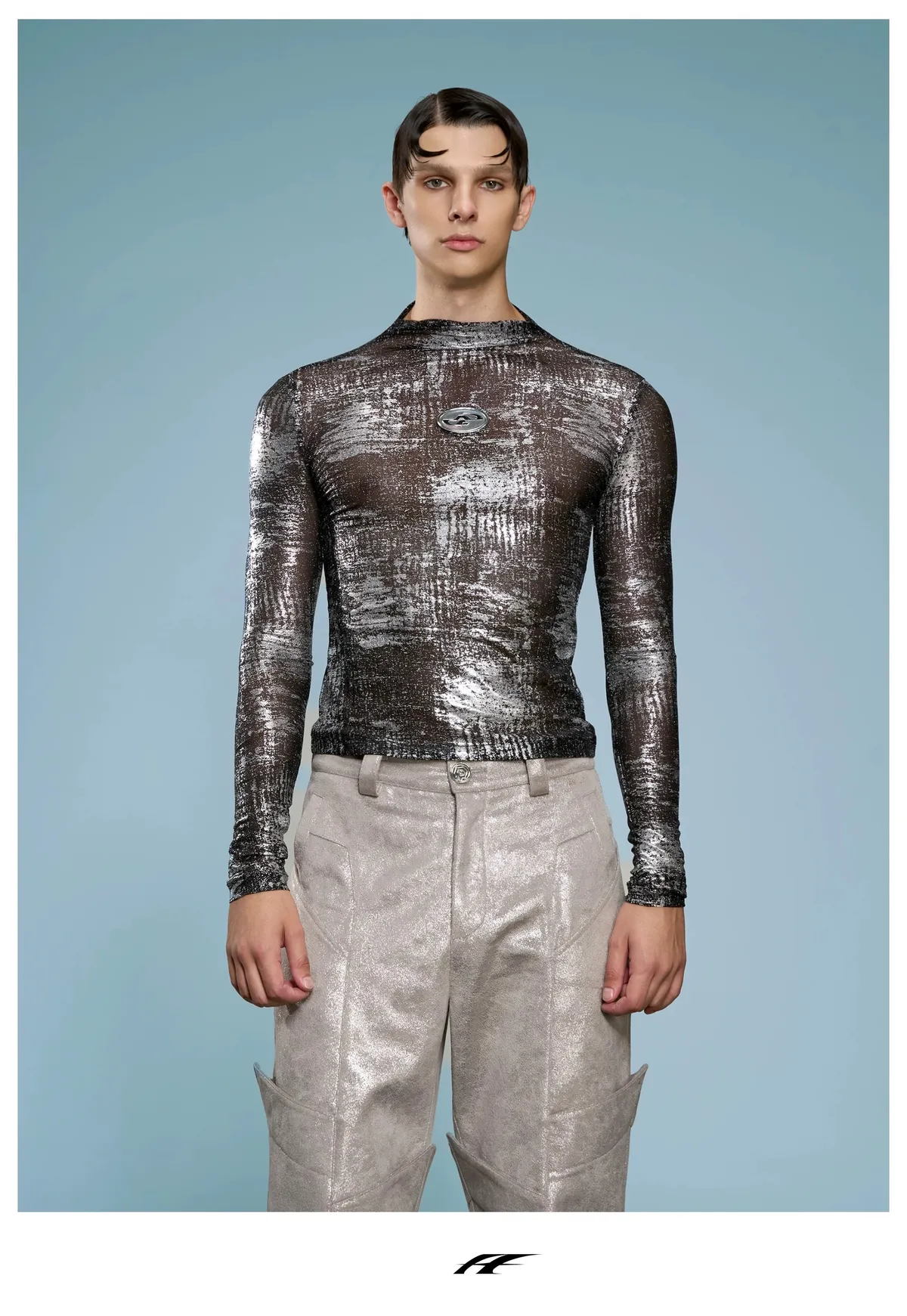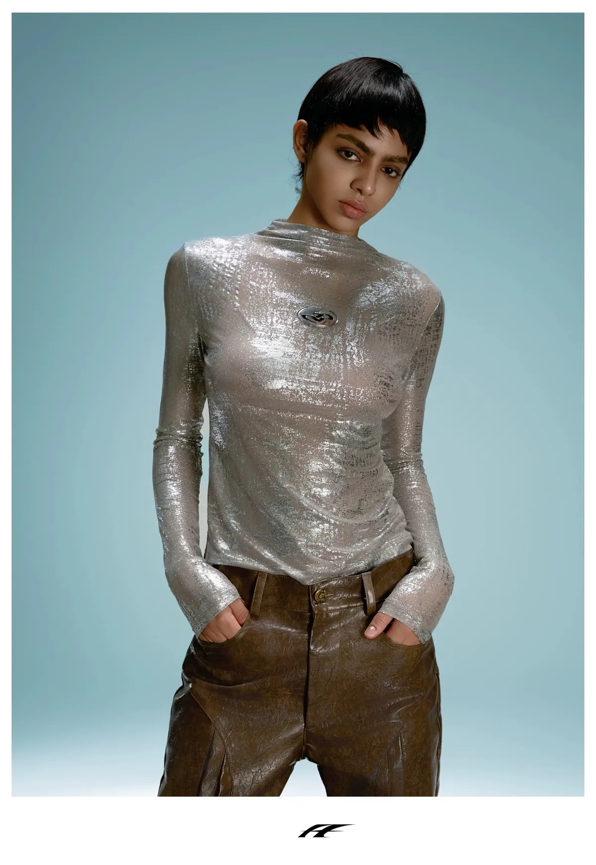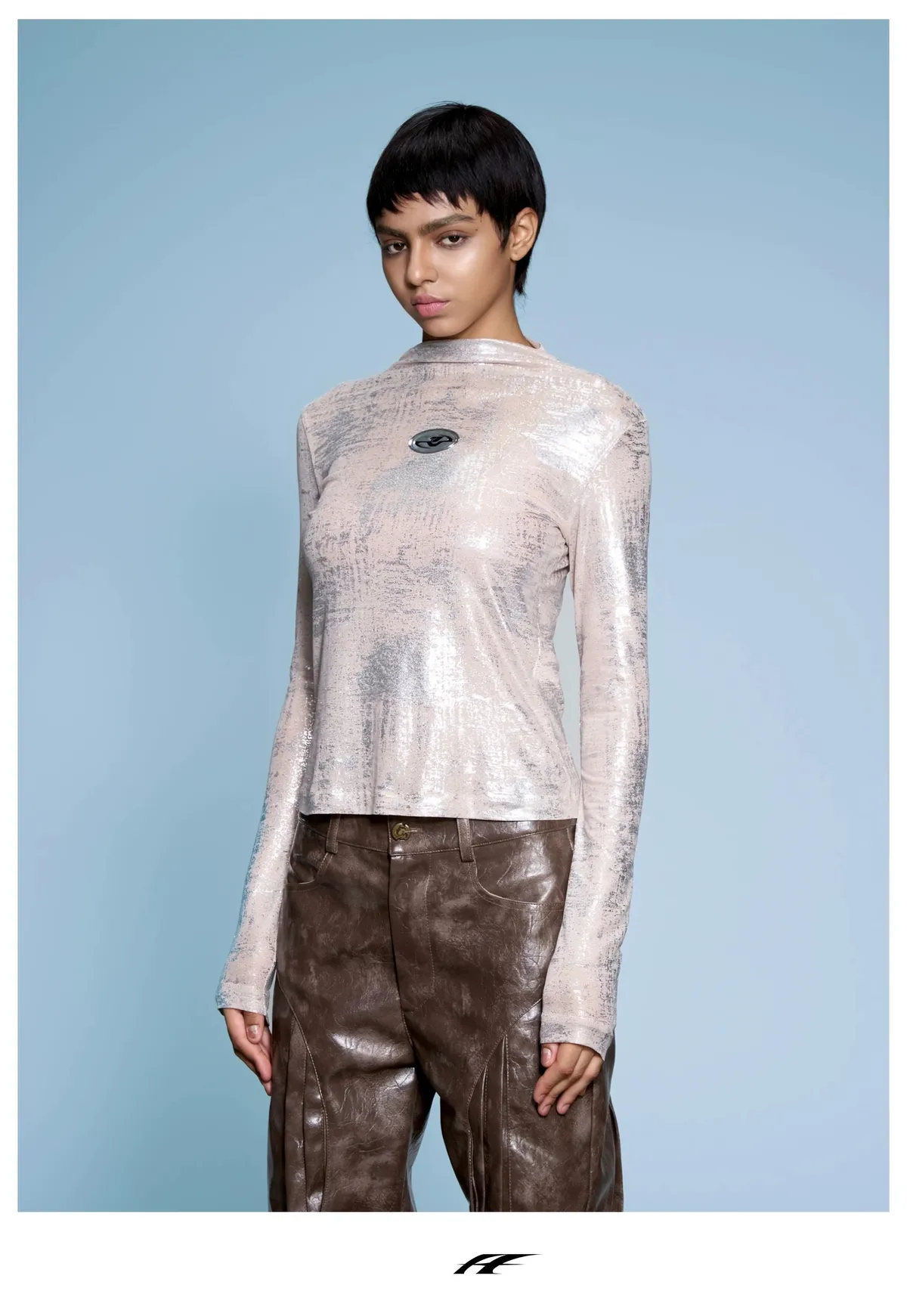ARGUE 高訂 廢土金屬 亮面 內搭 長袖(黑/白)