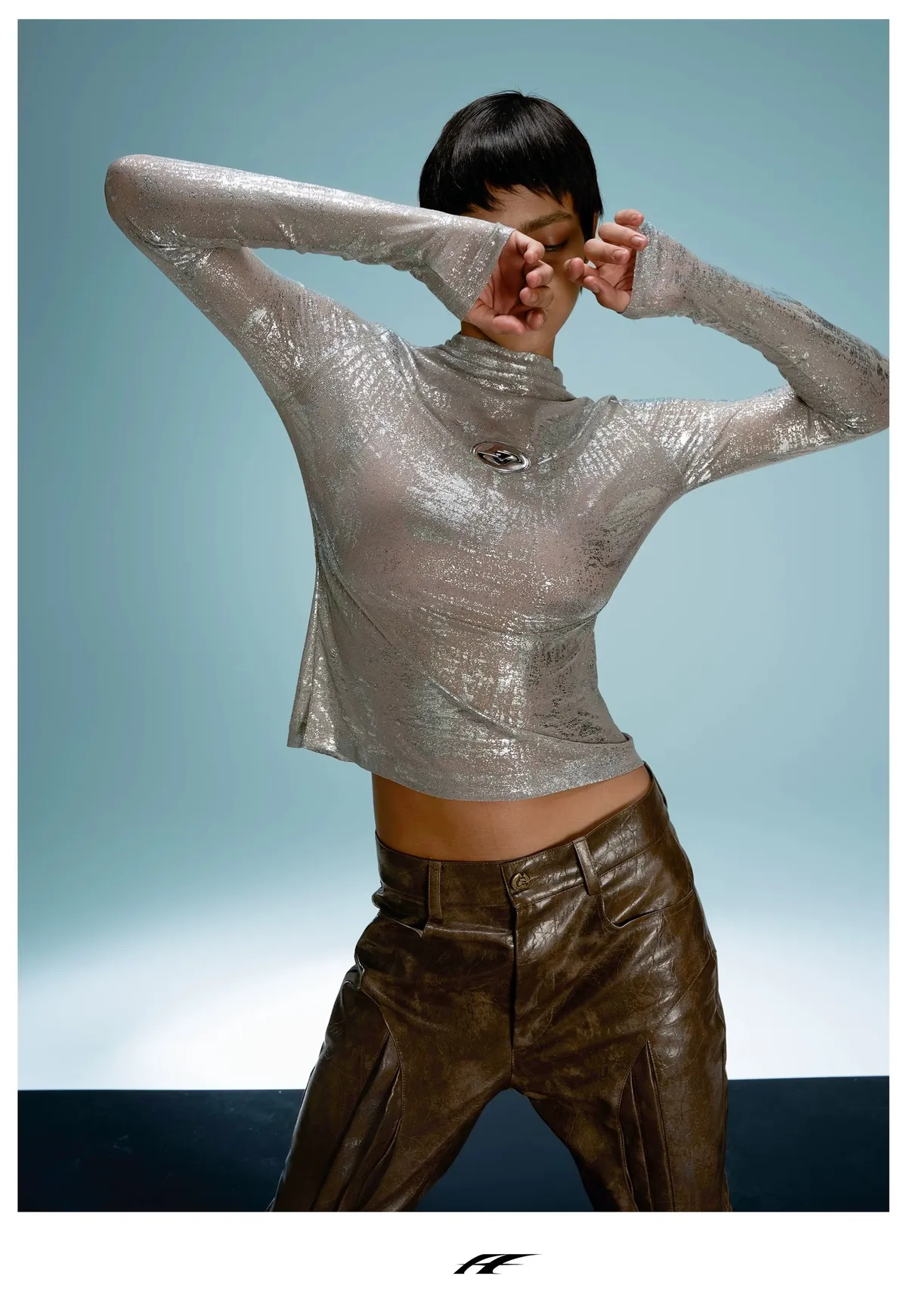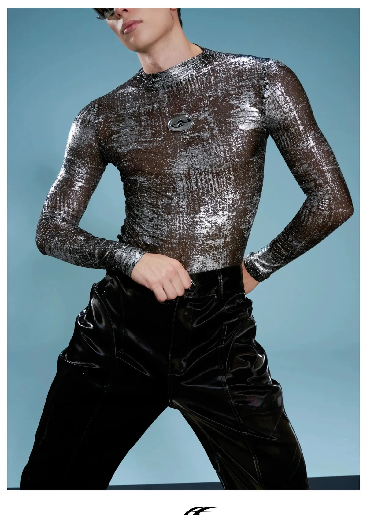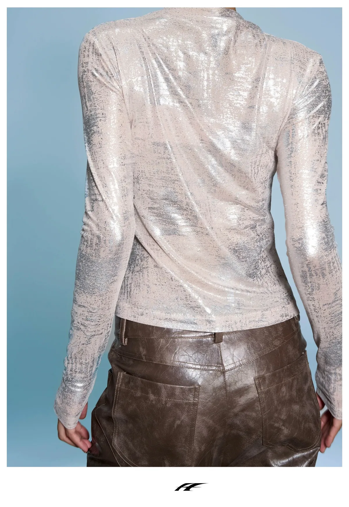 ARGUE 高訂 廢土金屬 亮面 內搭 長袖(黑/白)