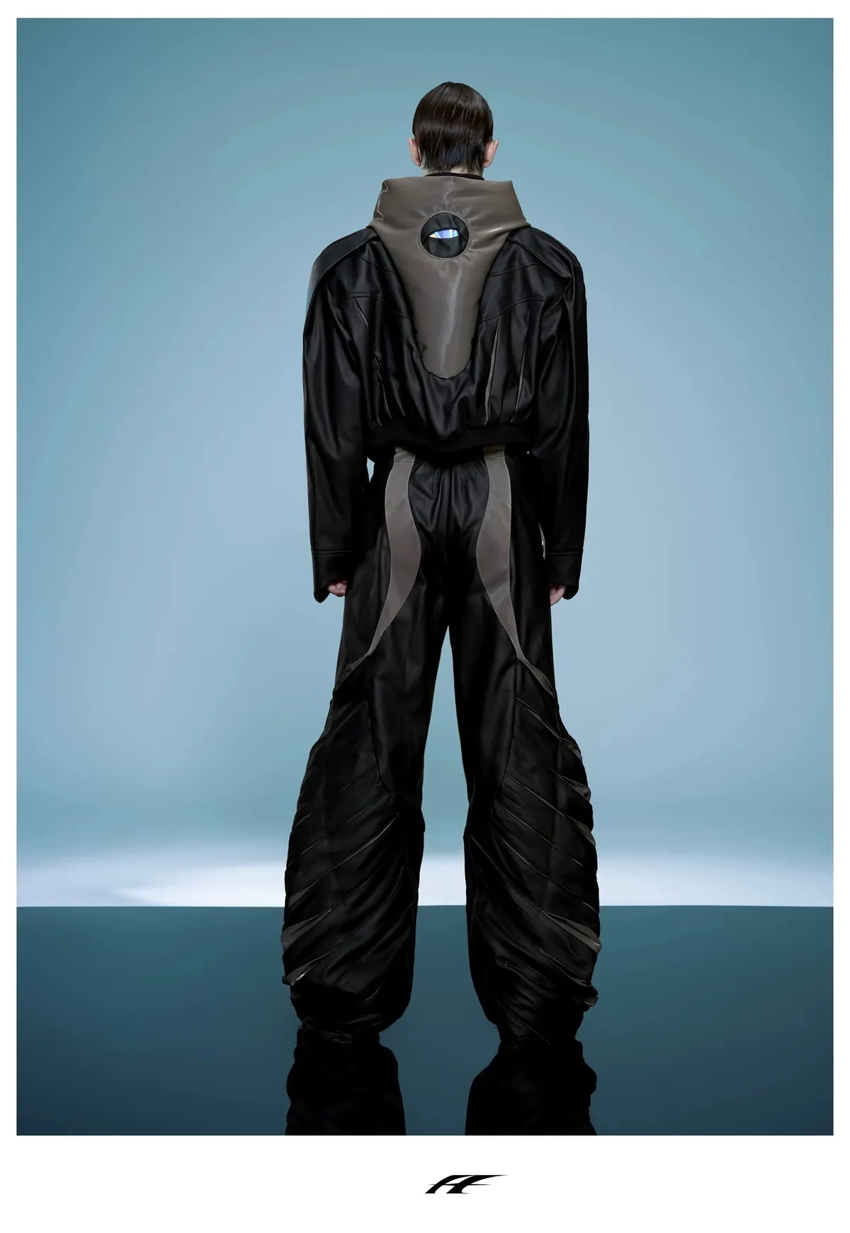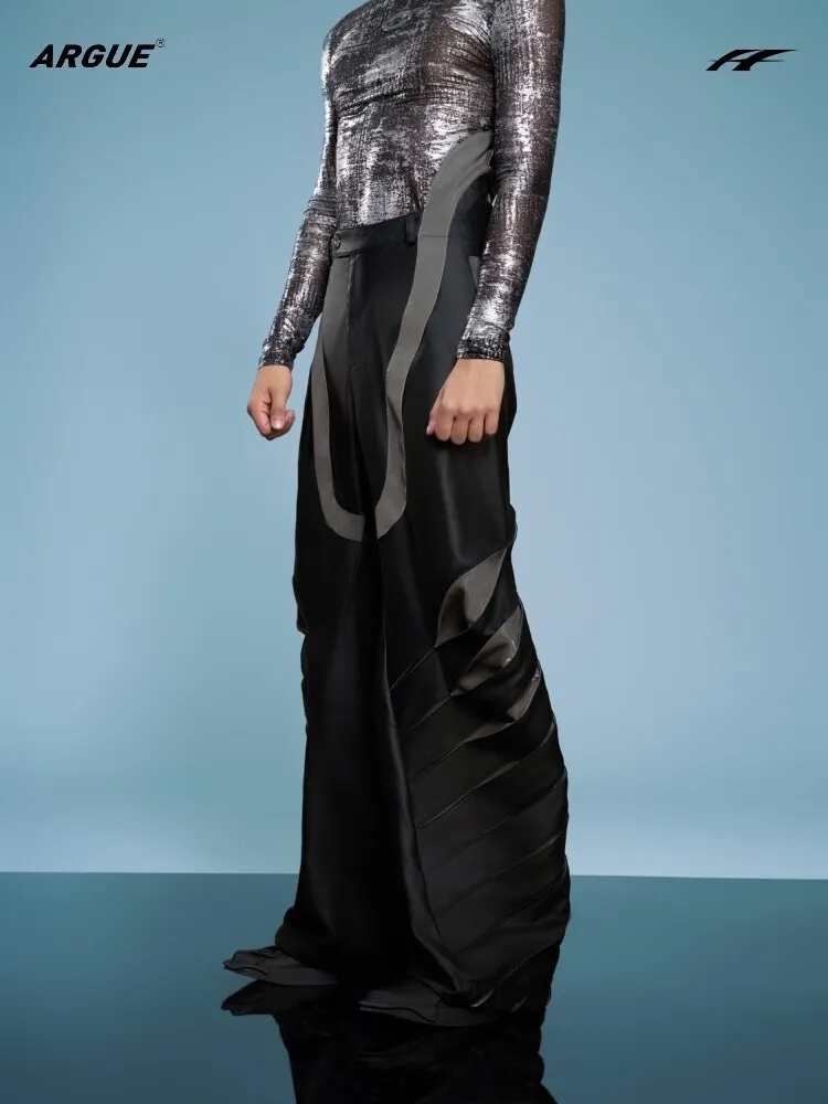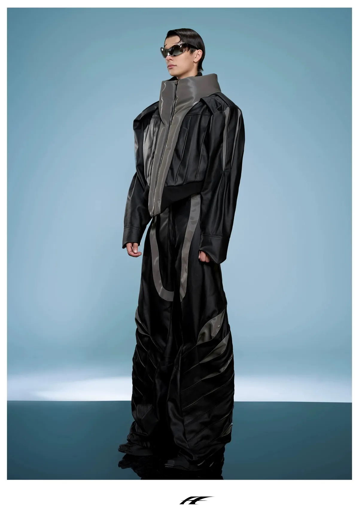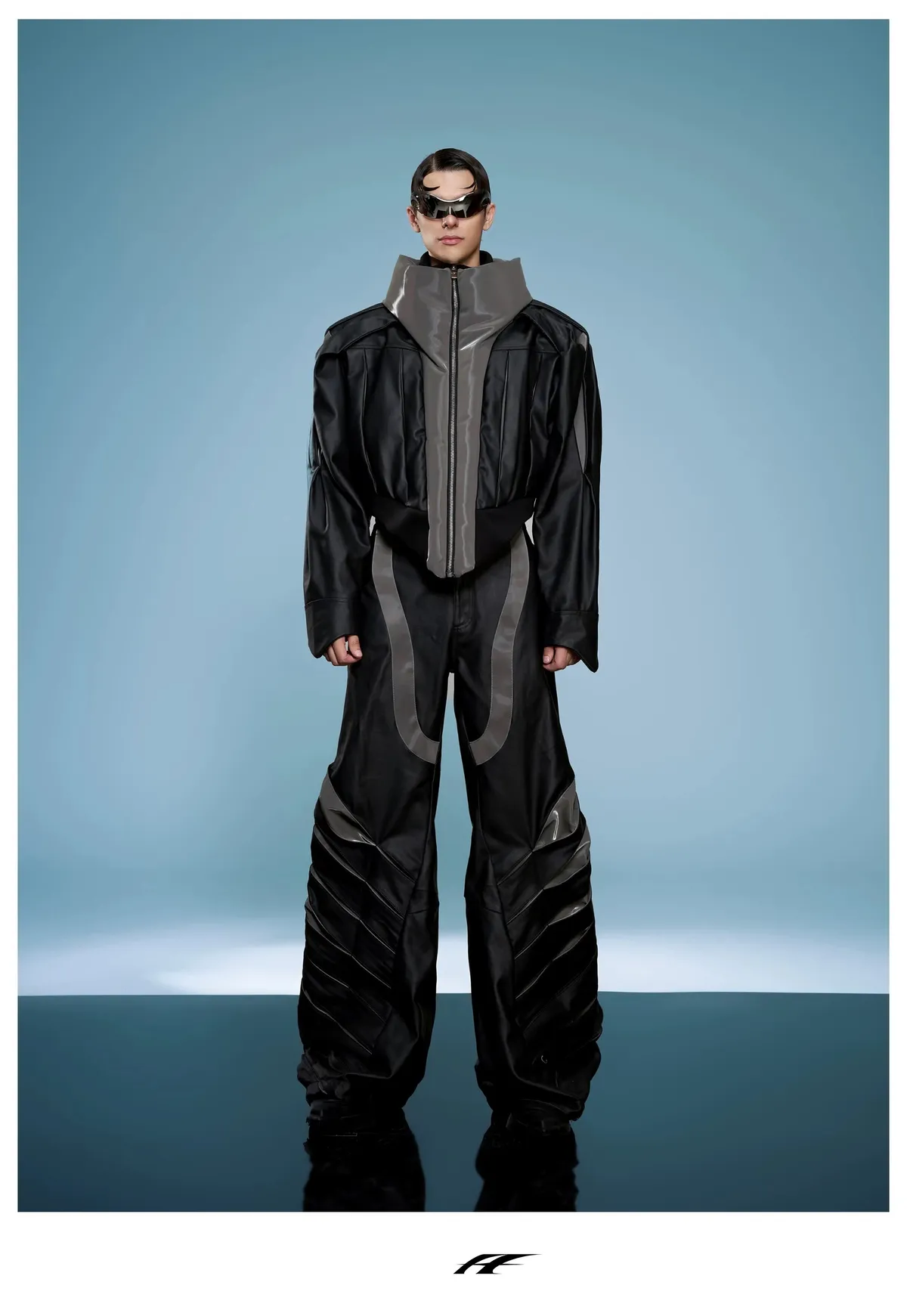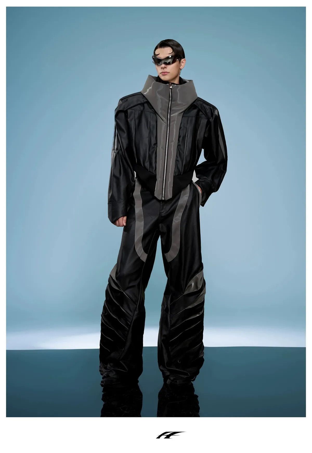 ARGUE 高訂 液態光澤 複合材質 機甲 外套 長褲 套裝(黑色)