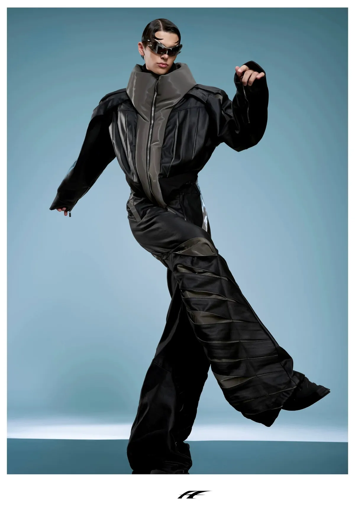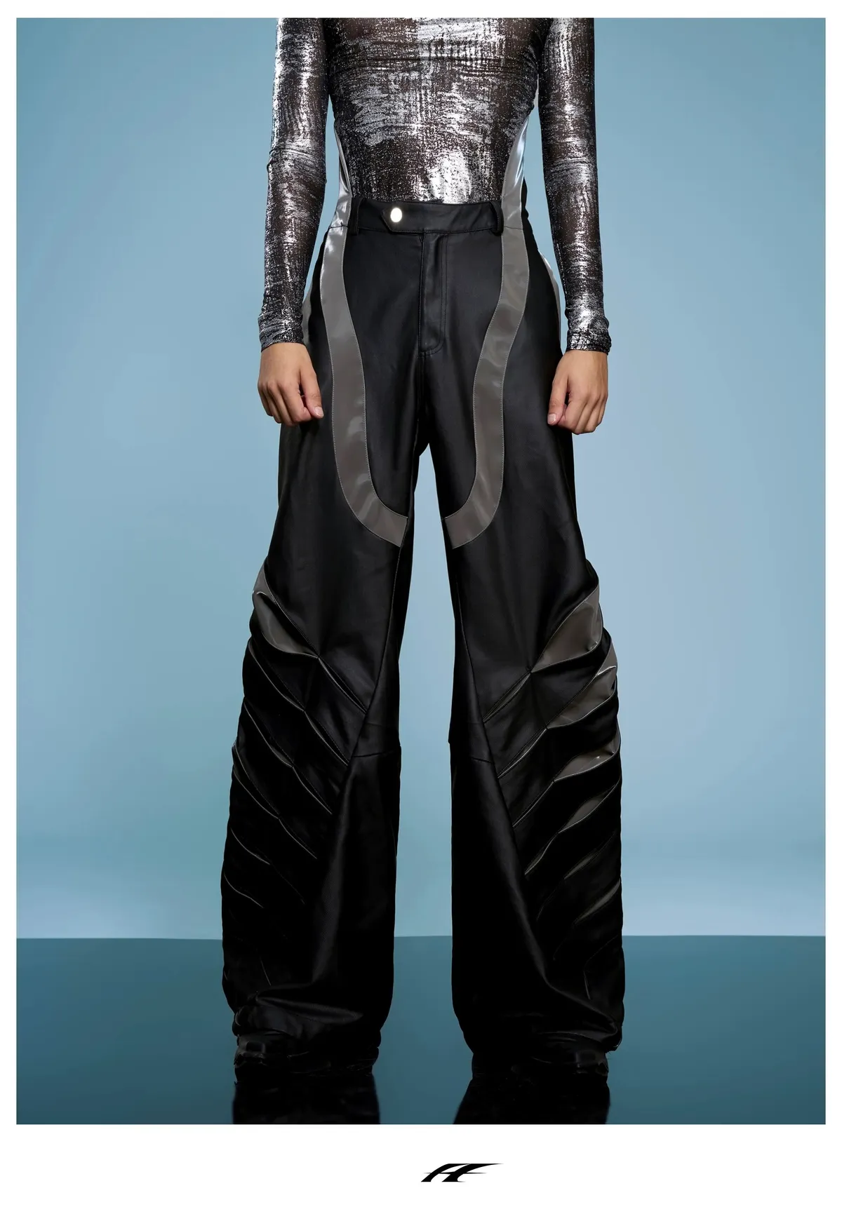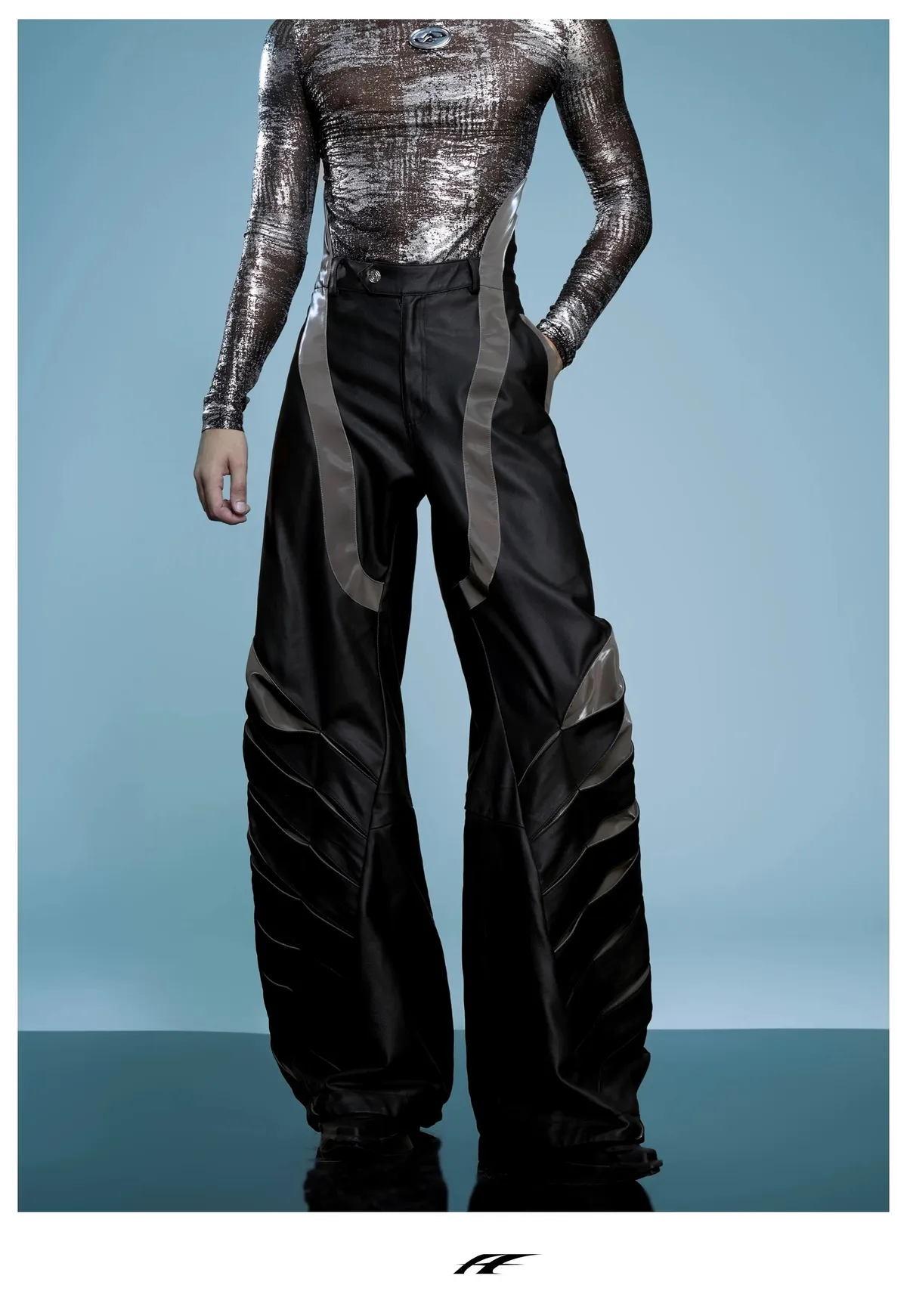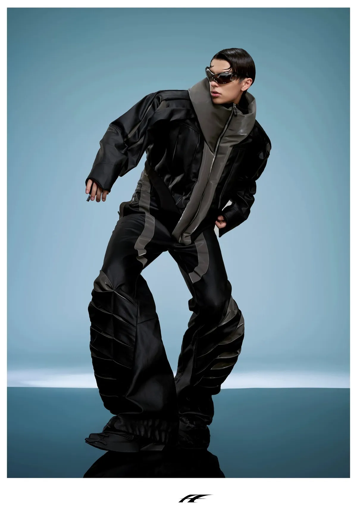 ARGUE 高訂 液態光澤 複合材質 機甲 外套 長褲 套裝(黑色)