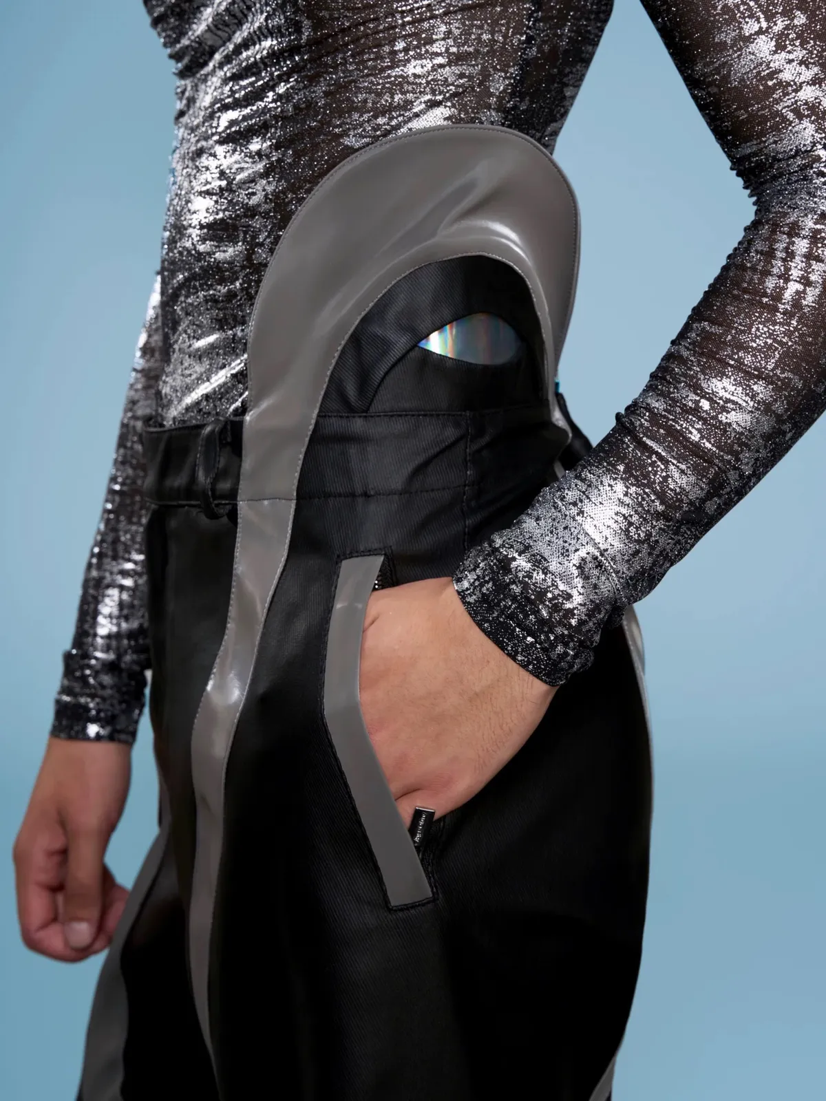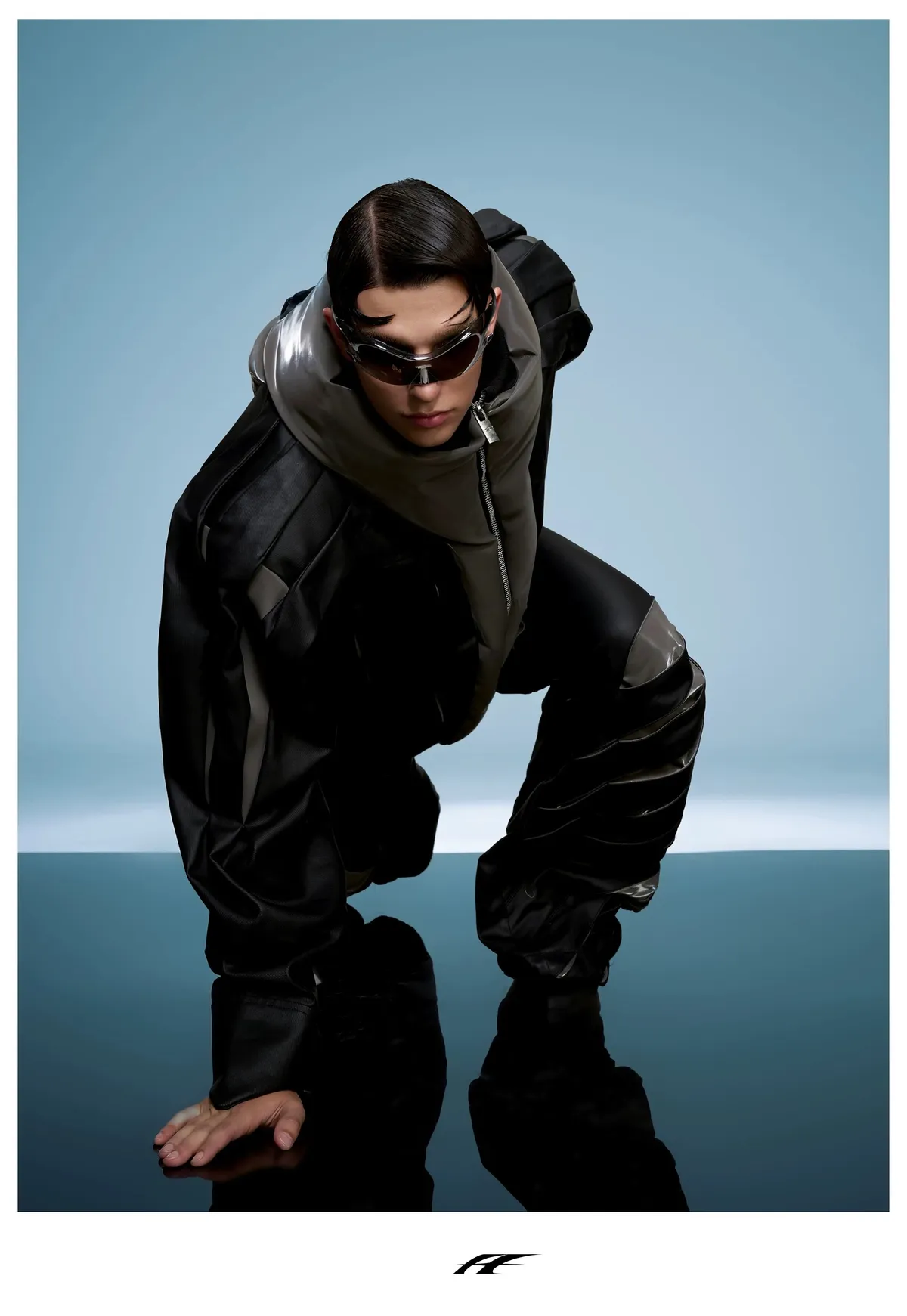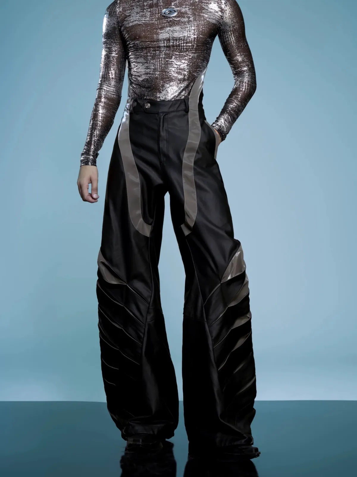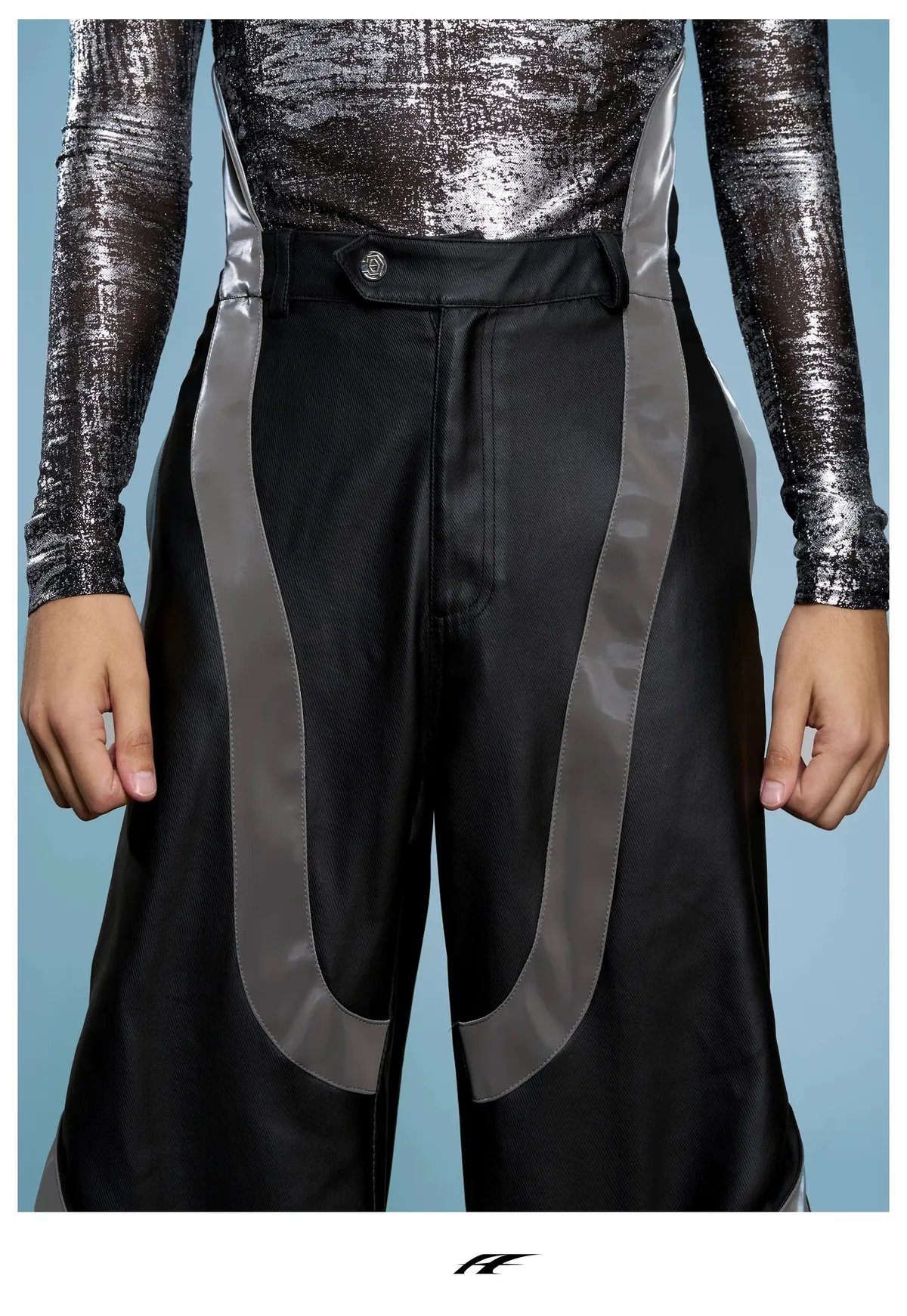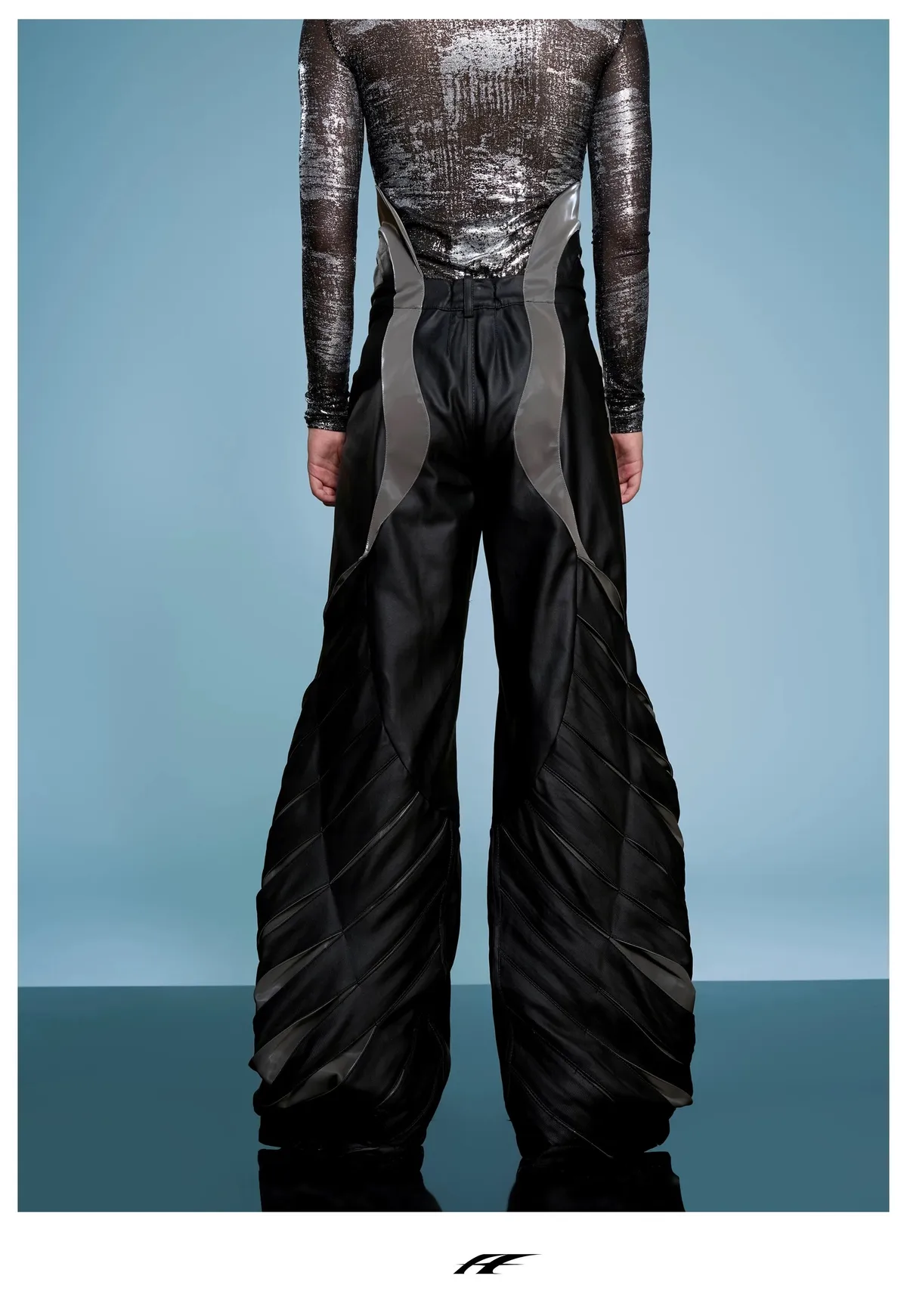 ARGUE 高訂 液態光澤 複合材質 機甲 外套 長褲 套裝(黑色)