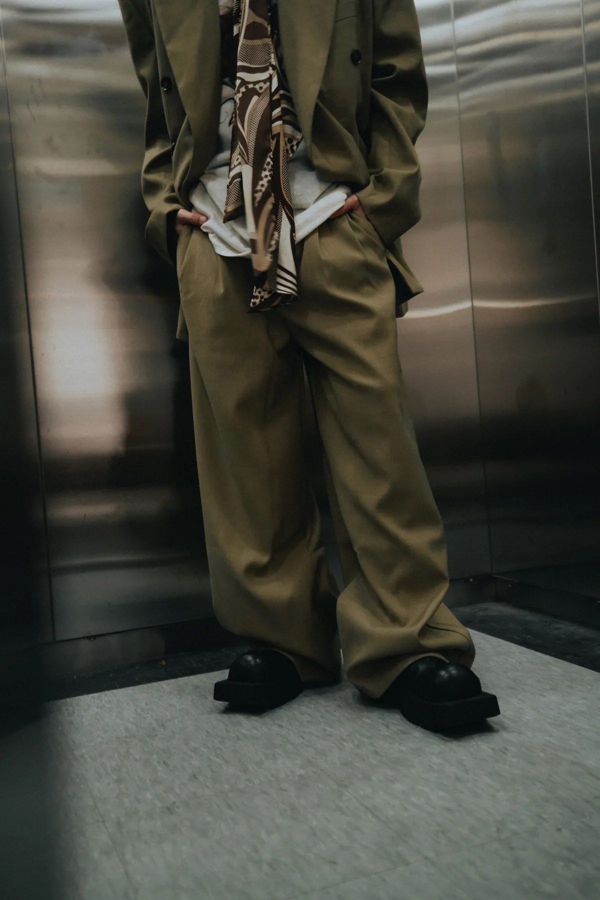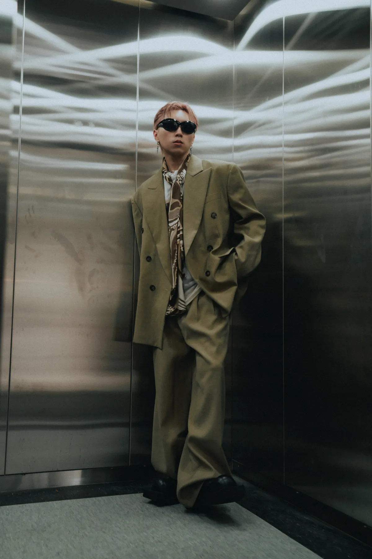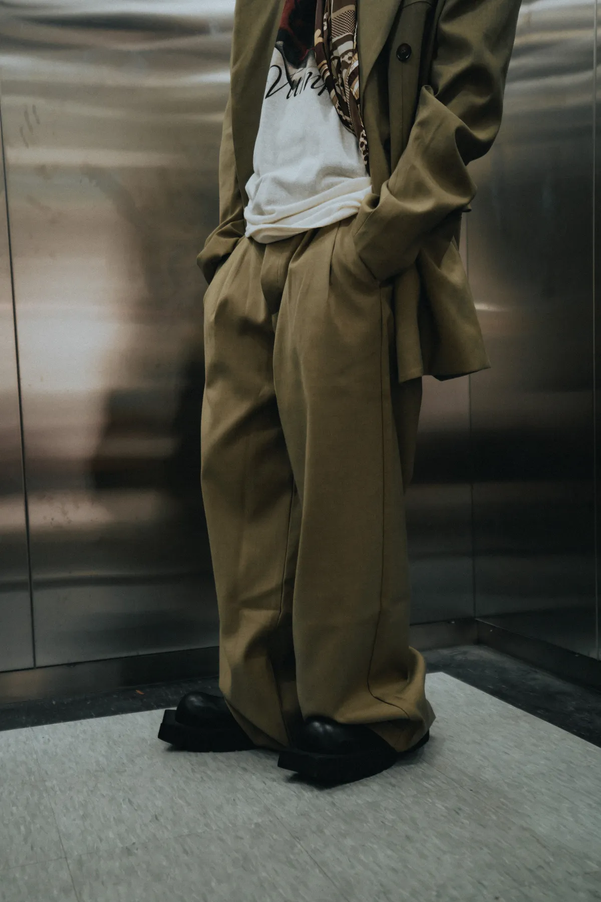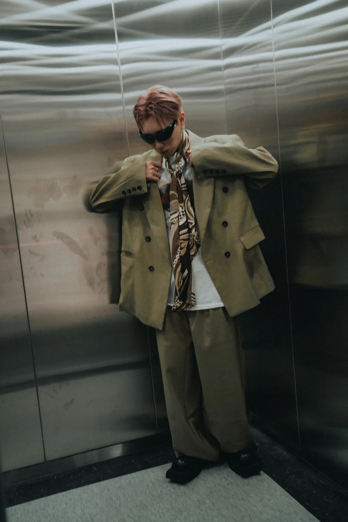 高級感 雙排扣 西裝外套 闊腿 西裝褲 套裝(琥珀綠)
