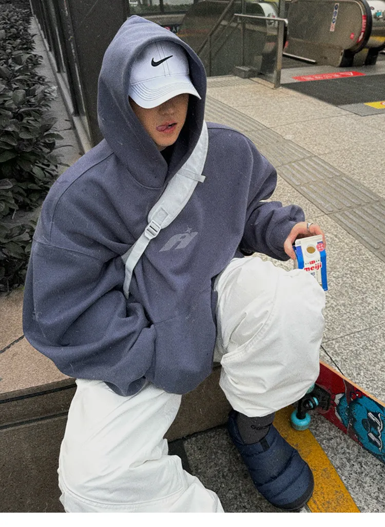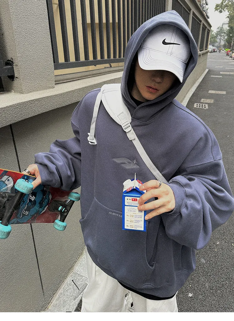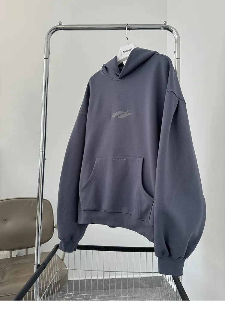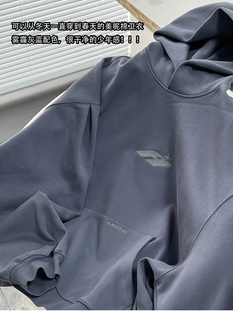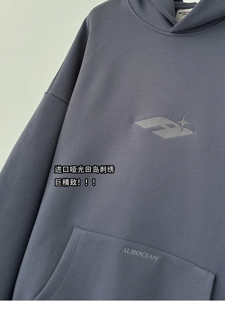 AUROCEAN 刺繡LOGO 加絨 廓形 帽踢(灰藍)