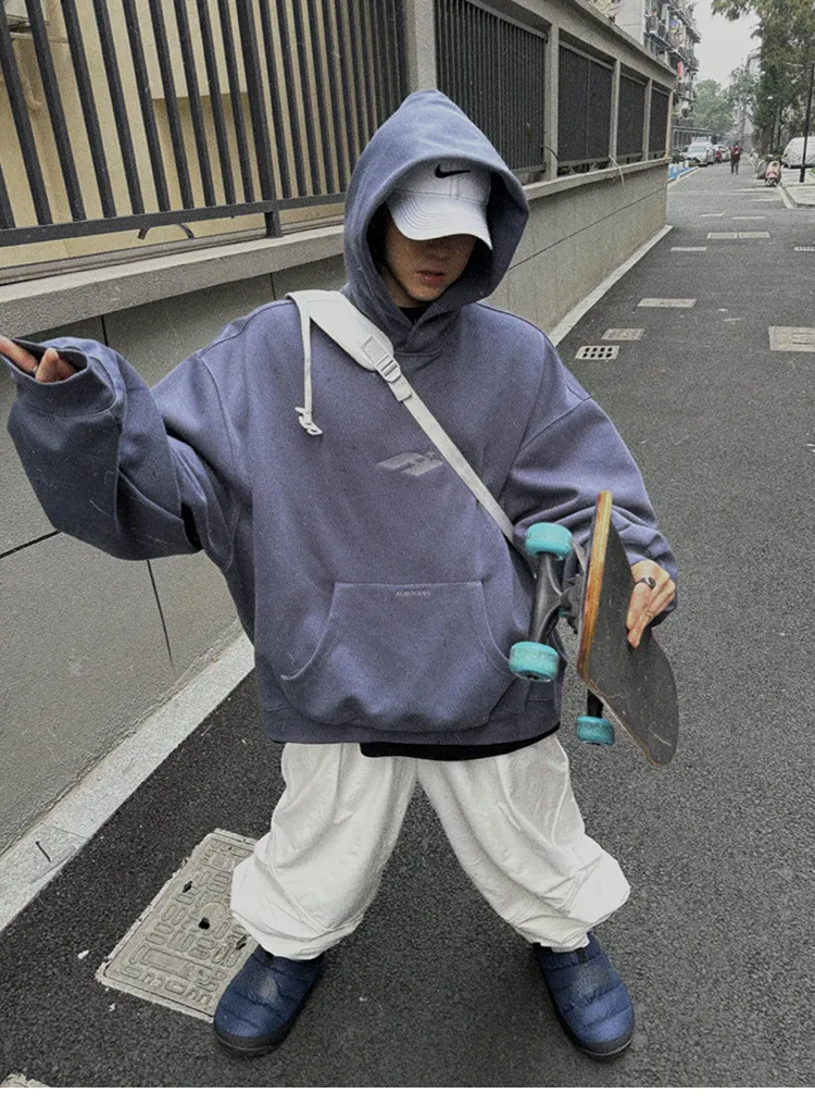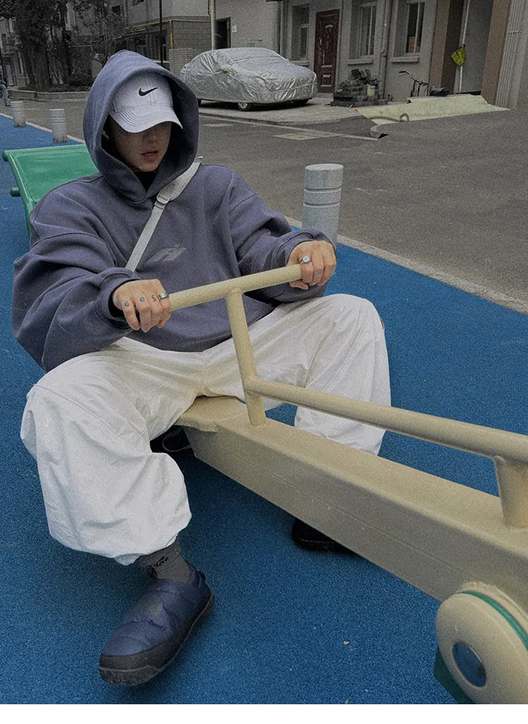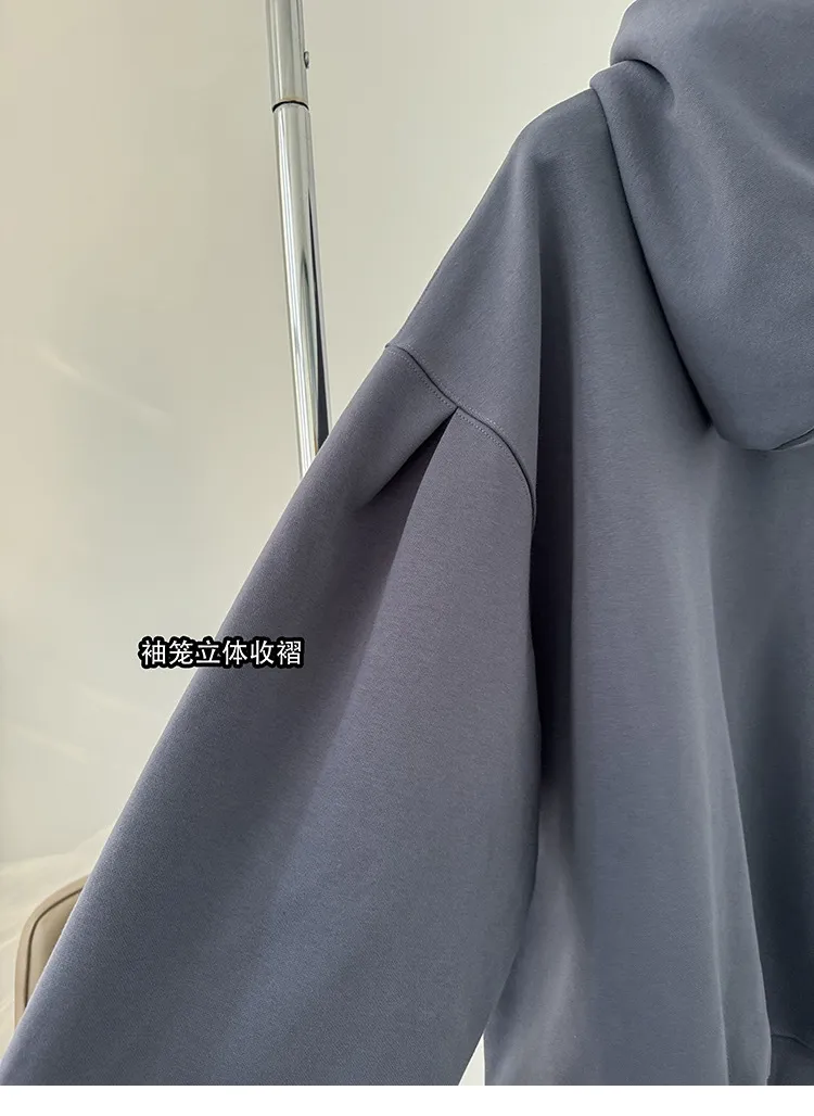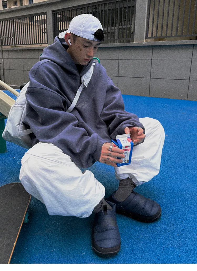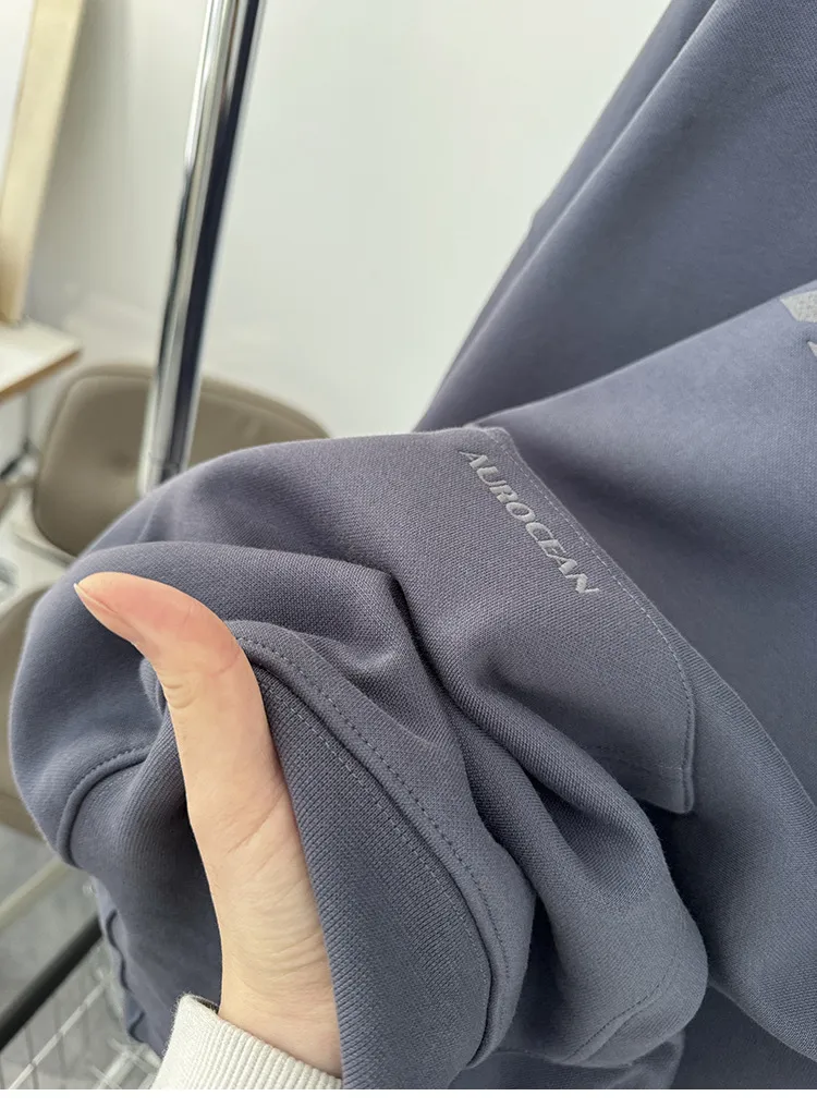 AUROCEAN 刺繡LOGO 加絨 廓形 帽踢(灰藍)
