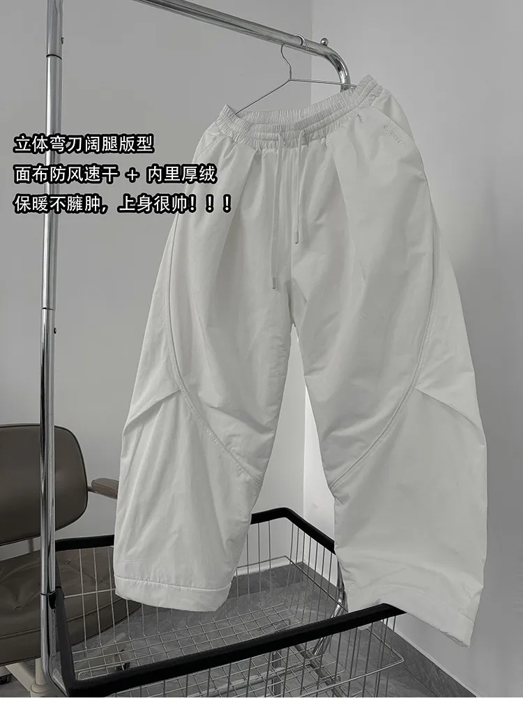 AUROCEAN 厚絨 速乾防風 彎刀褲 長褲(白色)