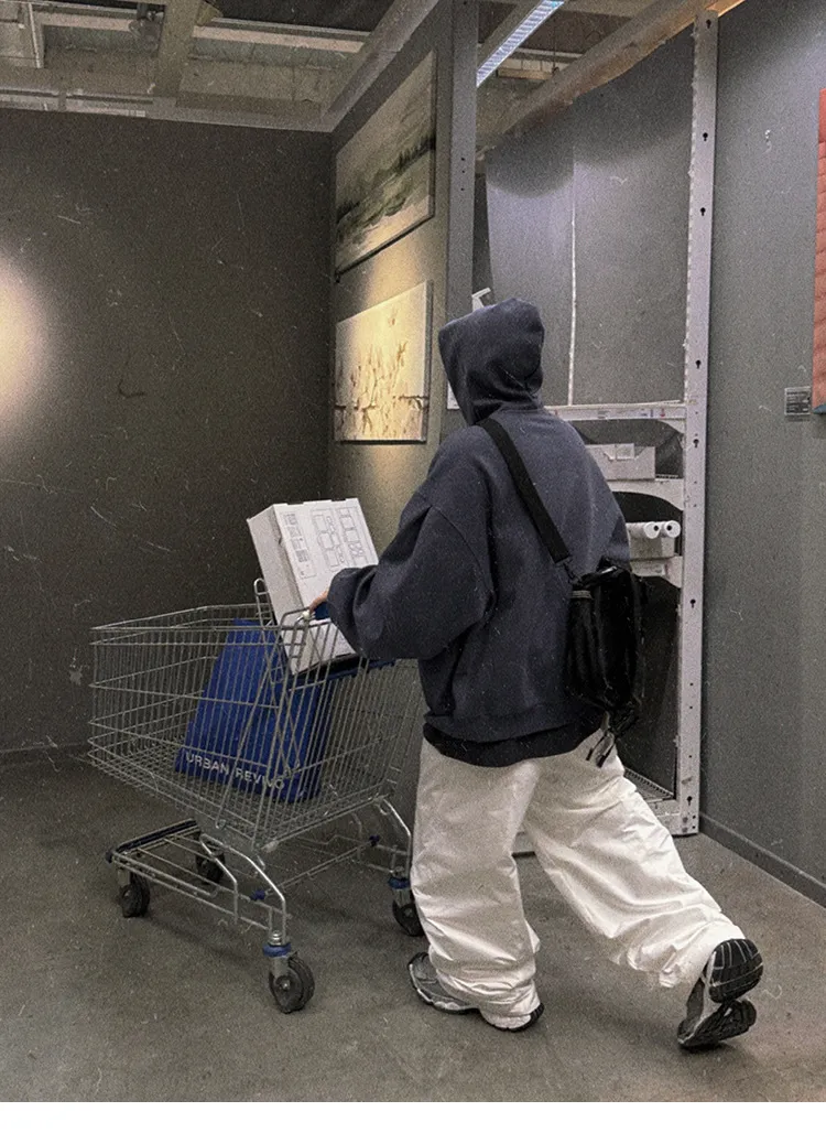 AUROCEAN 寬短 連帽 重磅 外套(灰白)