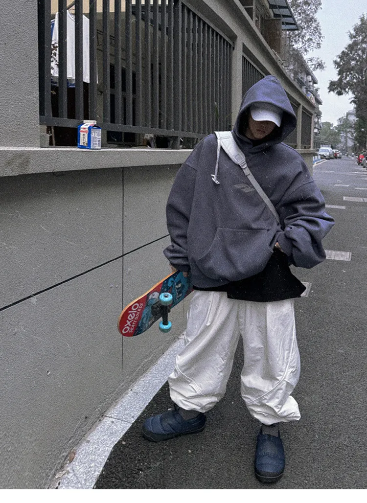 AUROCEAN 刺繡LOGO 加絨 廓形 帽踢(水洗灰)