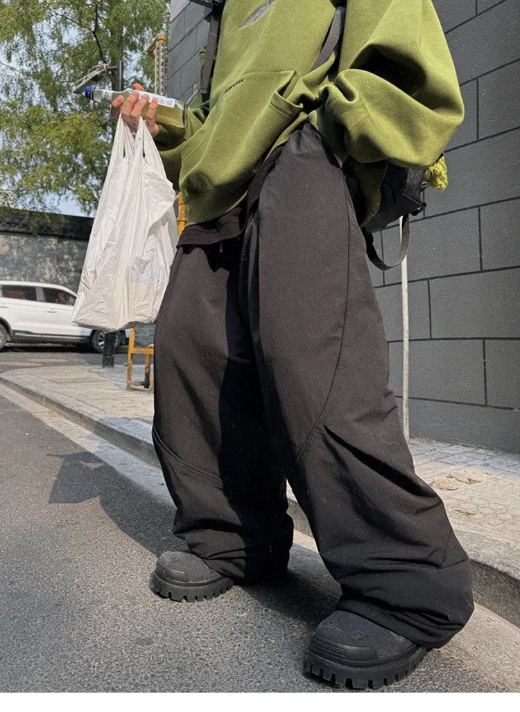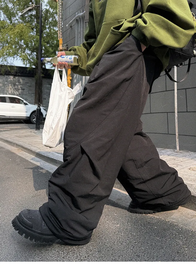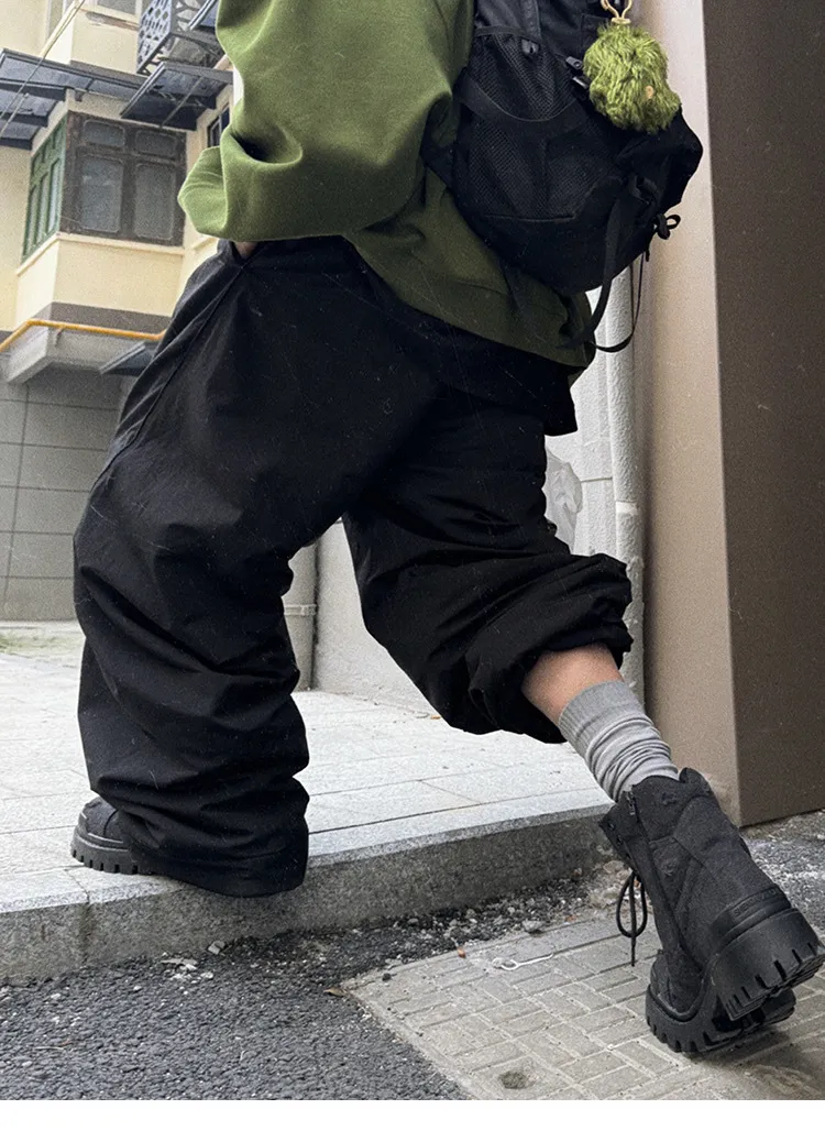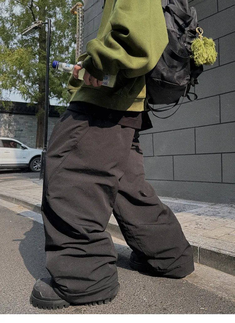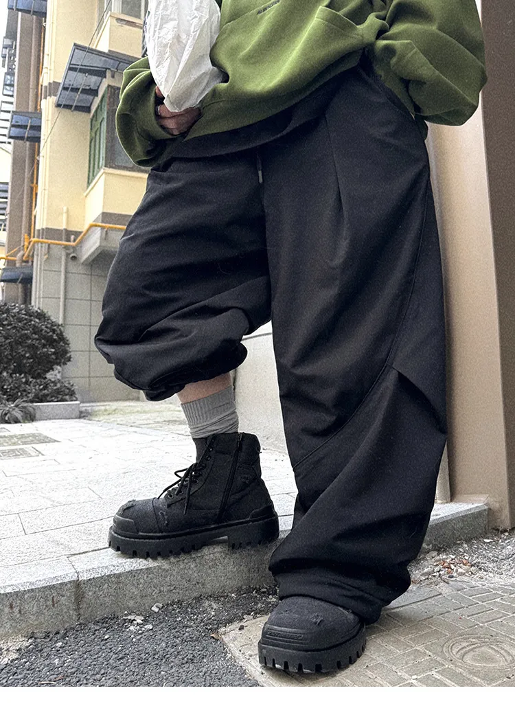 AUROCEAN 加厚磨毛 學院 收褶堆疊 西裝褲 (深灰)
