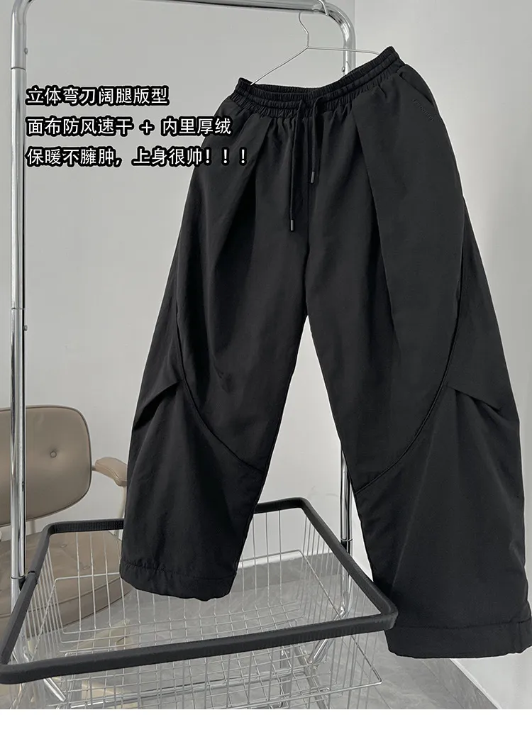 AUROCEAN 厚絨 速乾防風 彎刀褲 長褲(黑色)