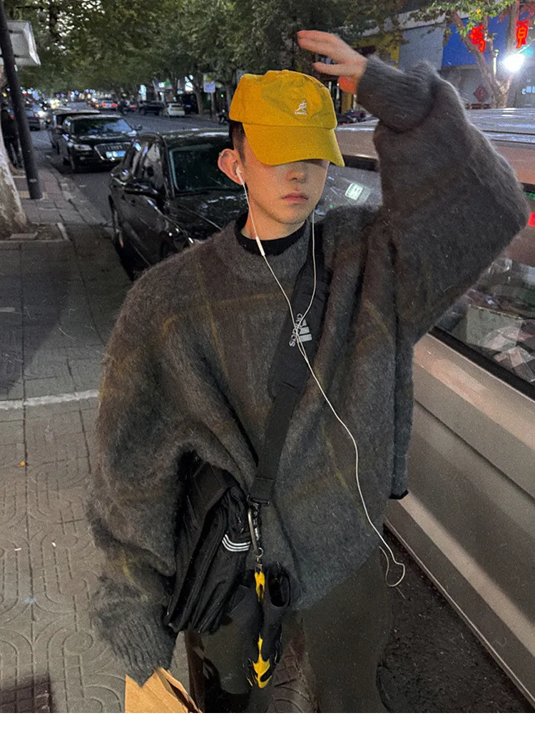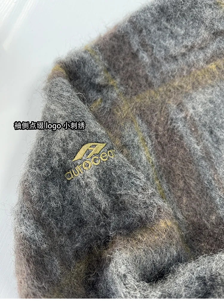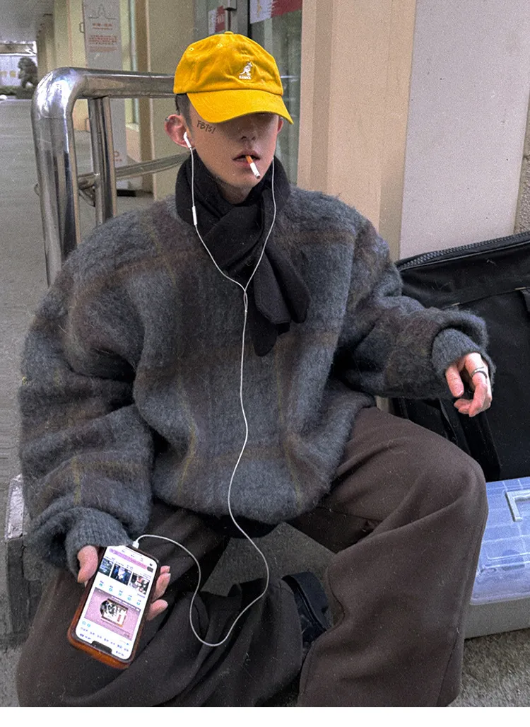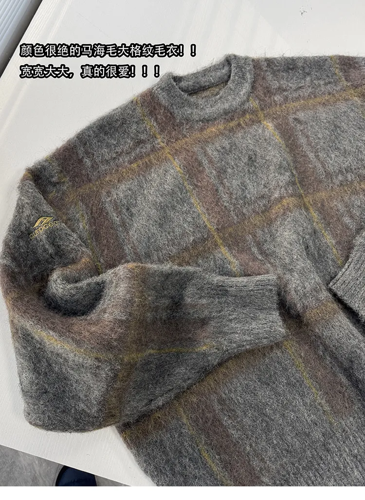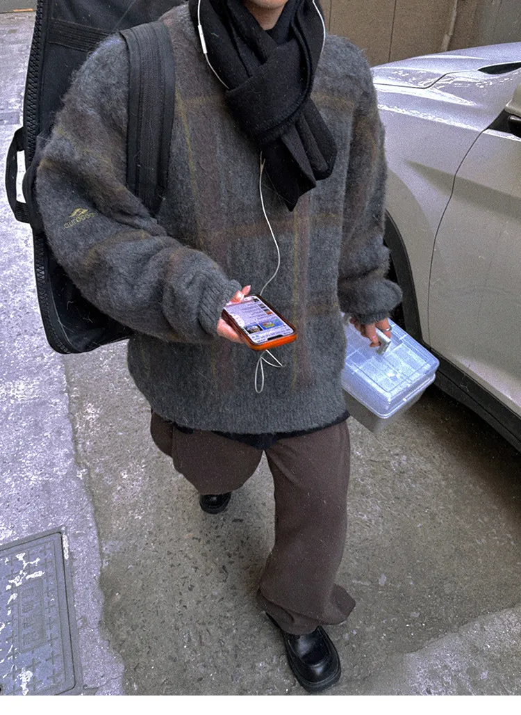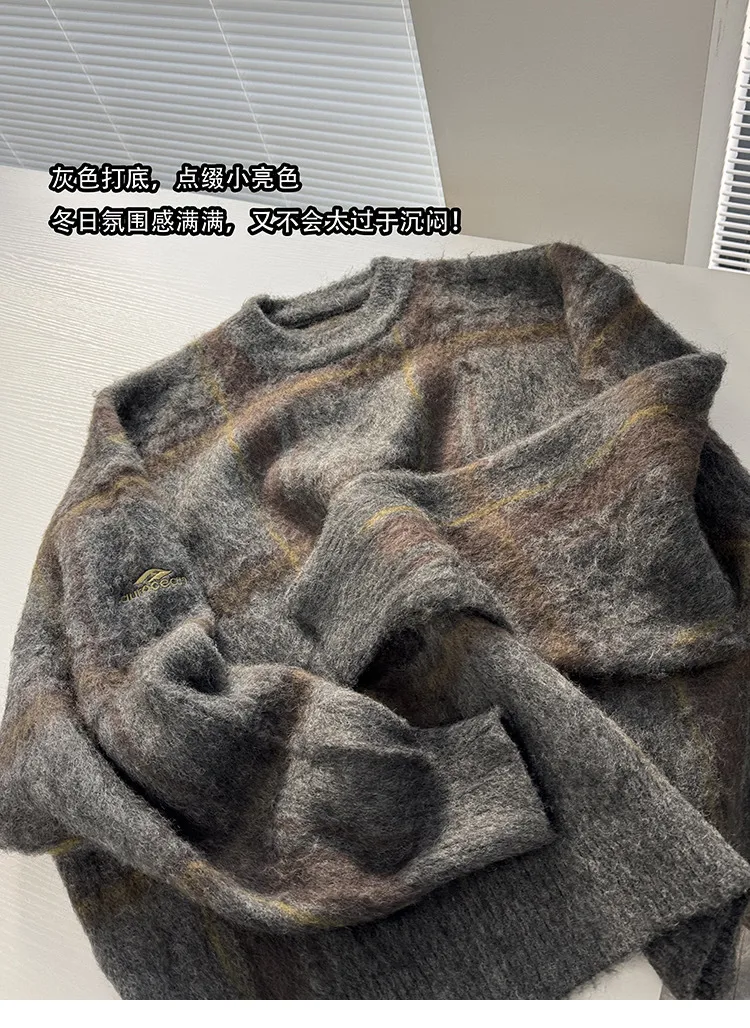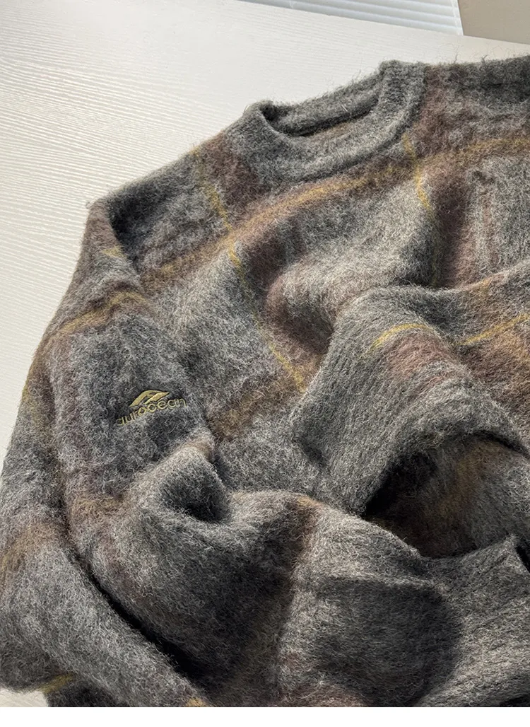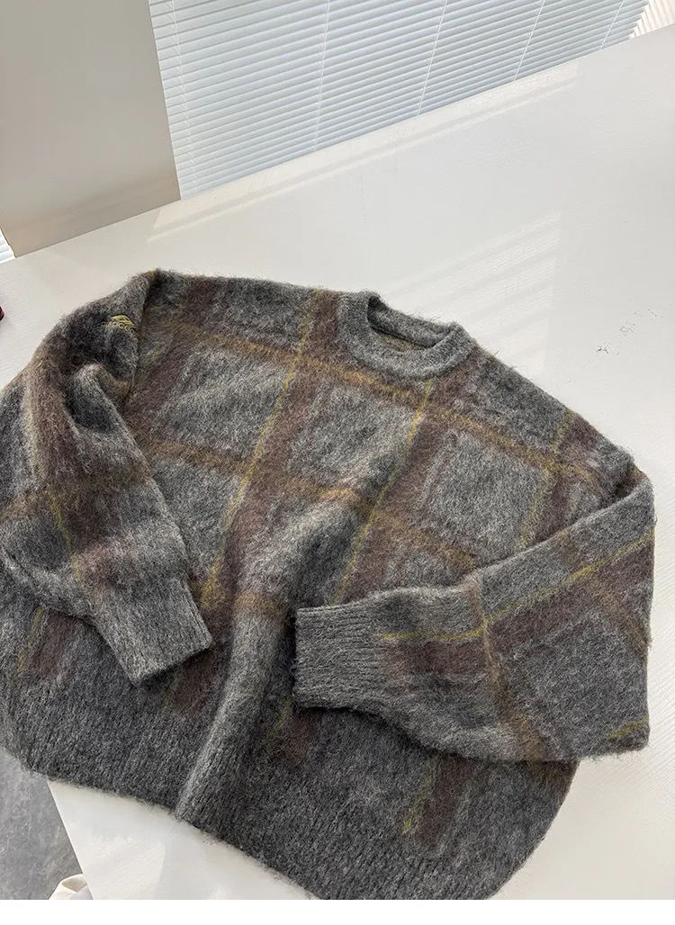 AUROCEAN 馬海毛 格紋 毛衣(灰咖色)